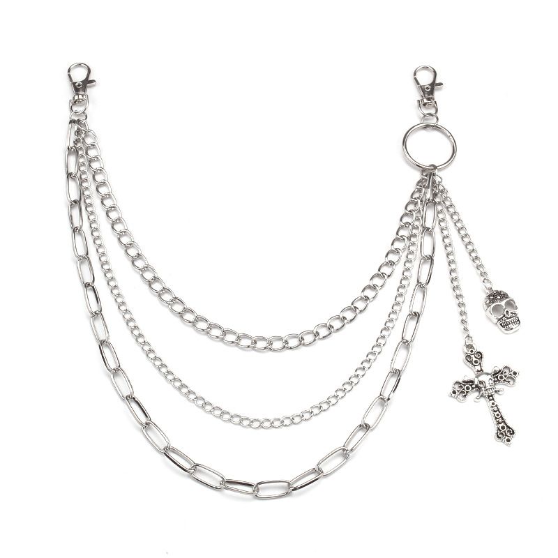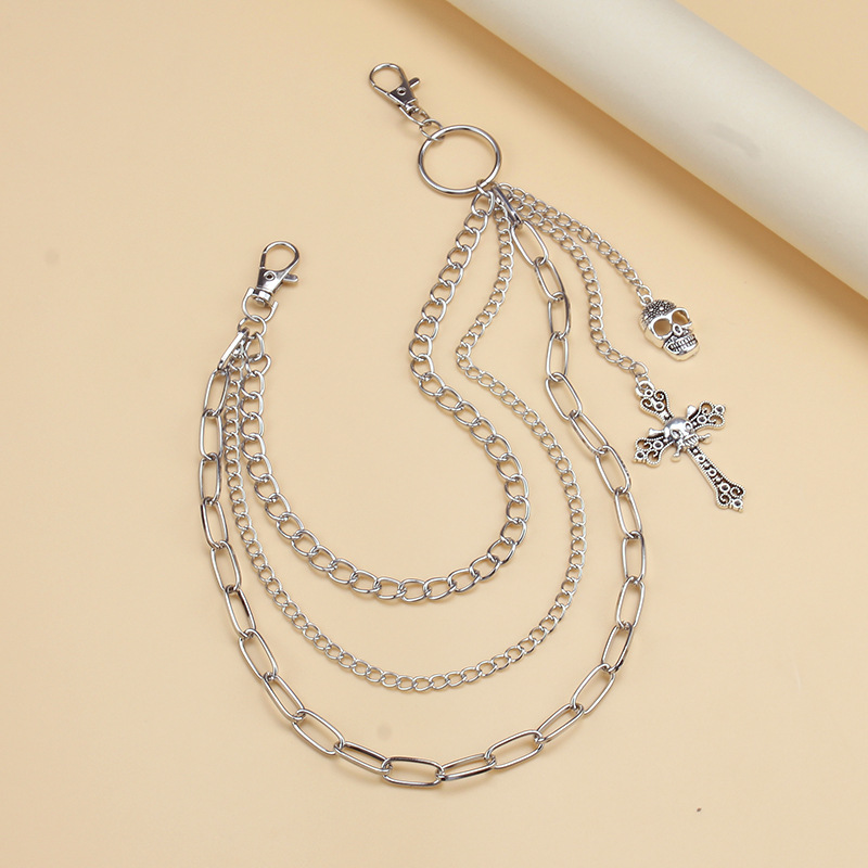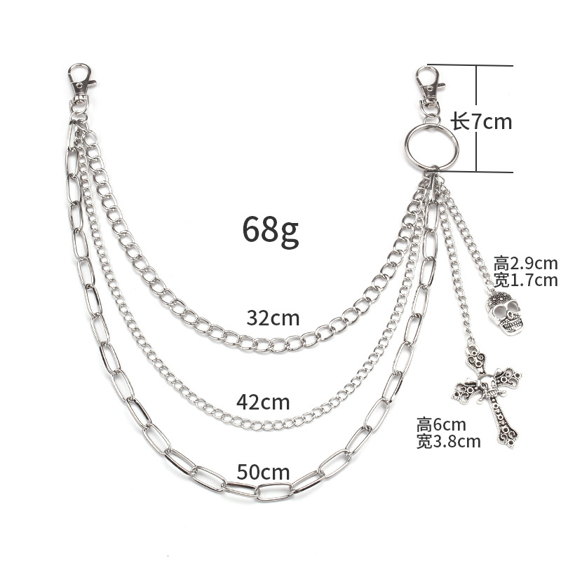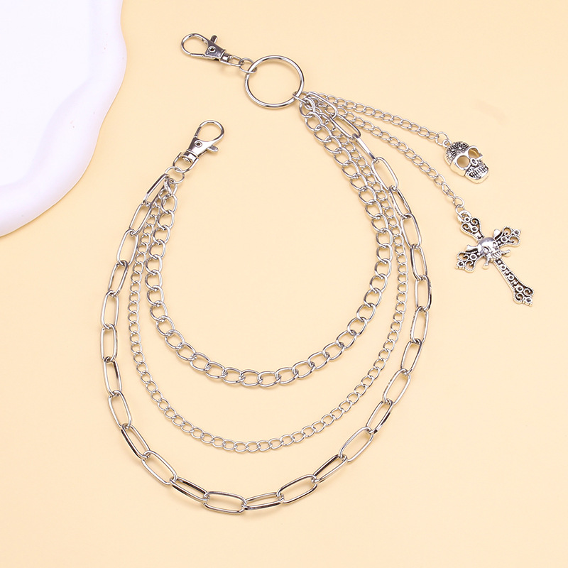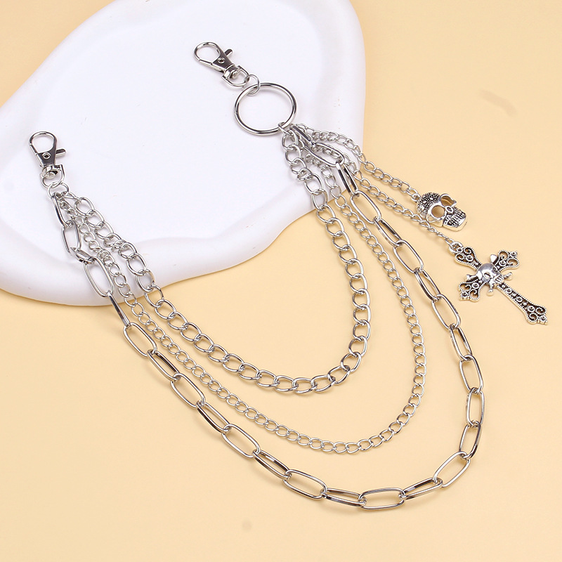 Европейские и американские трансграничные украшения, многослойная цепочка в стиле панк на Хэллоуин, череп, крест, брючная цепочка, универсальная подвеска, украшение