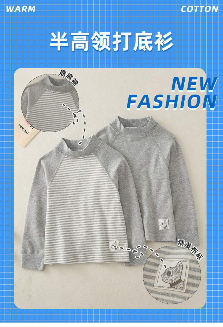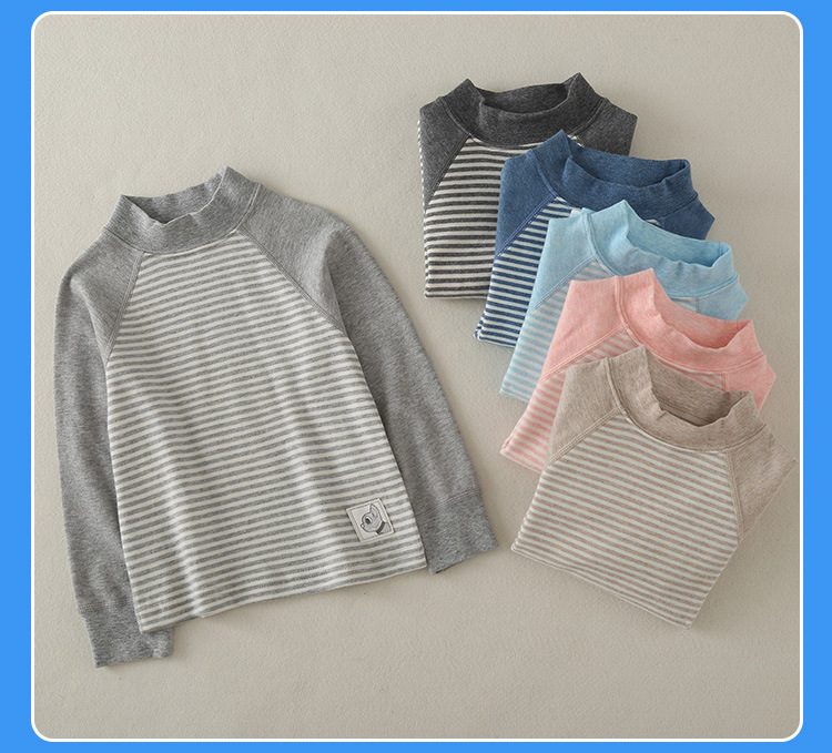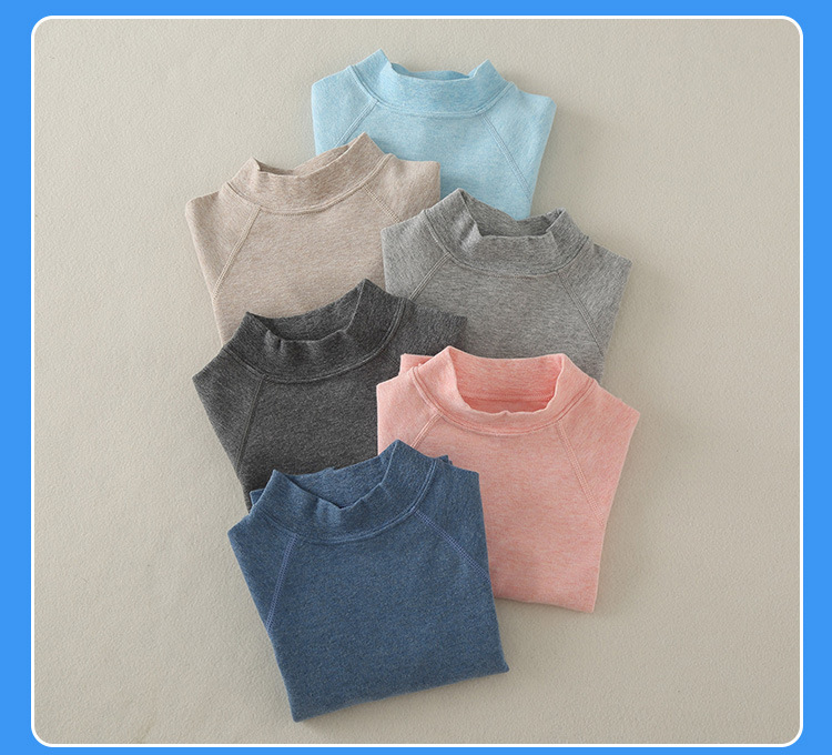 Нижняя рубашка для мальчиков и девочек, весенне-Осенняя детская футболка с длинным рукавом, теплый топ, Детская осенняя одежда с полувысоким воротником, нижнее белье с рукавами реглан