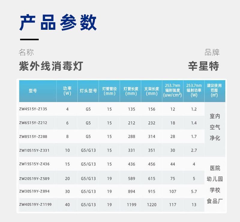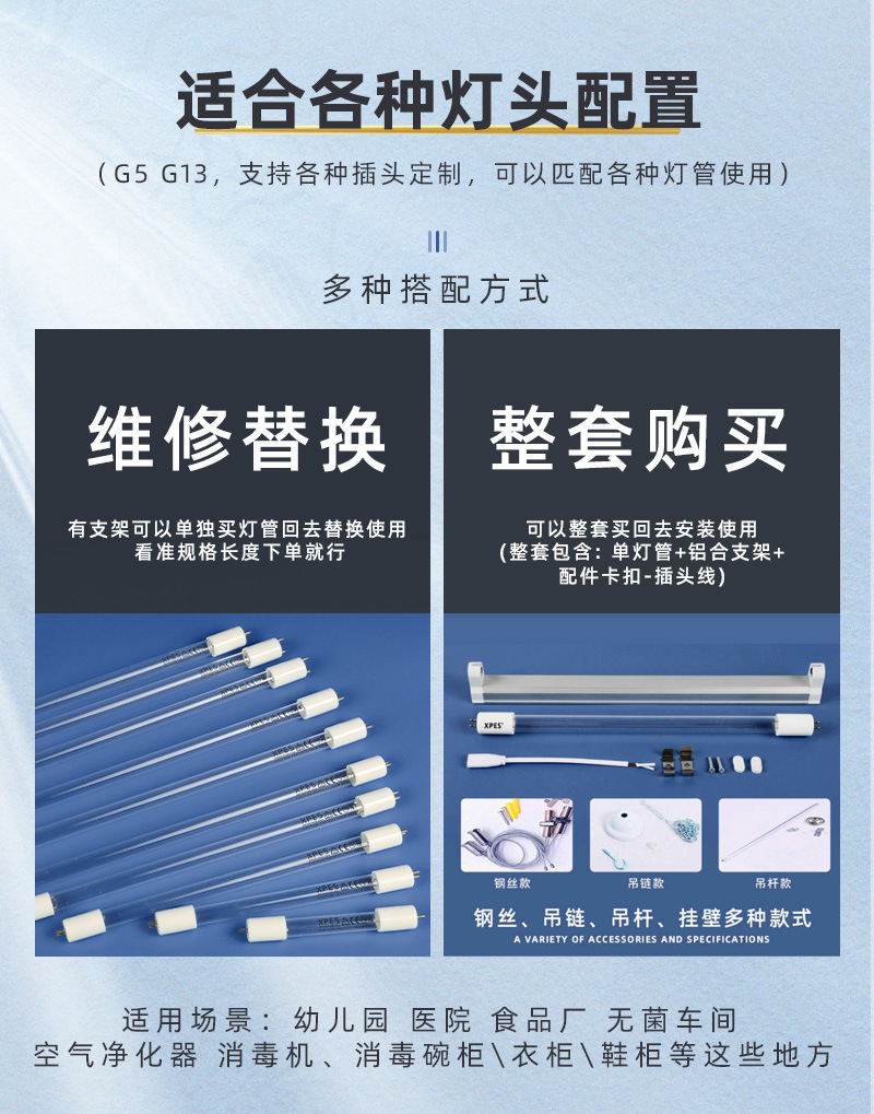 UV40W-S1199mm (длиной 1,2 метра) Одиночная труба; UV30W-S894mm(90 см) Одиночная лампа Детская больница Продовольственная фабрика Покупка; UV20W-S589mm(60 см) Одиночная лампа Детская больница Продовольственная фабрика Покупка; УФ-лампа UV15W-S436mm с одной трубкой для приобретения в стоматологической больнице или клинике; UV10W-S331mm однотрубный небольшой очиститель воздуха для покупки; UV8W-S287mm однотрубный шкаф шкаф для обуви; UV6W-S212mm однотрубный шкаф шкаф для обуви; UV4W-S135mm однотрубный шкаф шкаф для обуви; Лампа UV30W-S894мм (90см) + кронштейн; Лампа UV40W-S1199mm ( 1.2m ) + кронштейн; 40W-S1199мм (диаметр трубки 25 мм) одиночная лампа-трубка