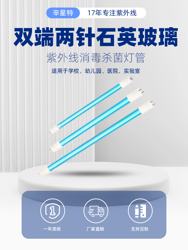 Ультрафиолетовая лампа для дезинфекции, двухсторонняя, двухконтактная, прямая трубка, для дезинфекционных шкафов в детских садах, кварцевая лампа для стерилизации