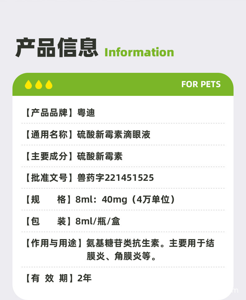 Yuedi Xinyinxin сульфатные глаза для домашних животных, конъюнктивит собаки, кератит, капли кошачьих глаз