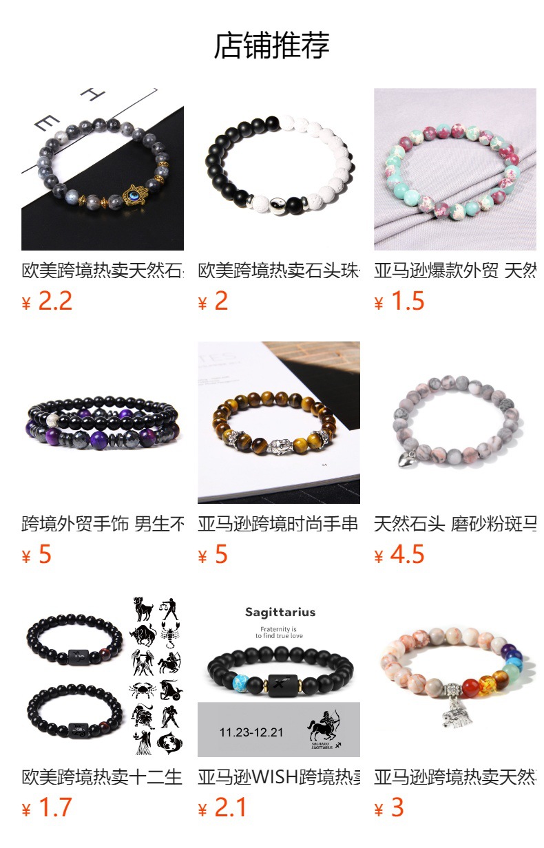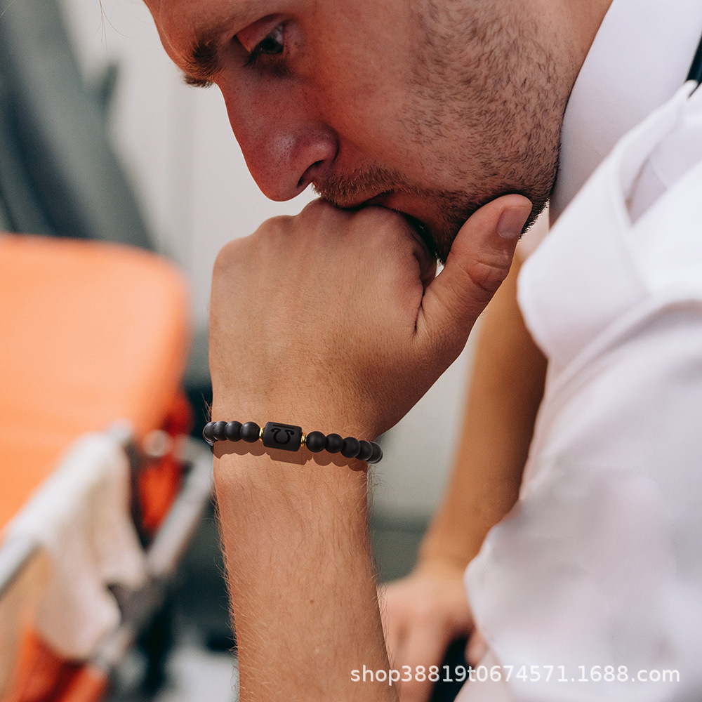 2023 Amazon трансграничные украшения мужской браслет из матового черного стекла мужской браслет из двенадцати созвездий из бисера мужской и женский браслет