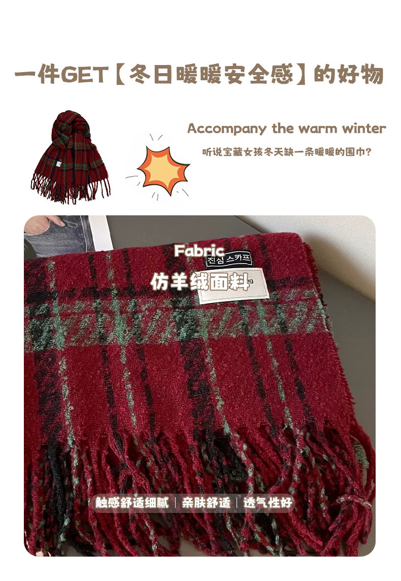 Винтажный клетчатый шарф, женские осенне-зимние булавки, универсальные утолщенные теплая длинная шаль, универсальный студенческий шарф двойного назначения