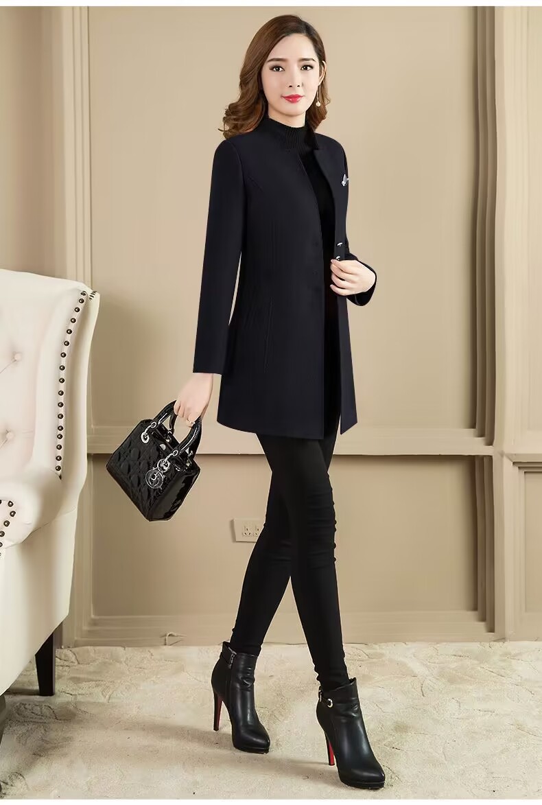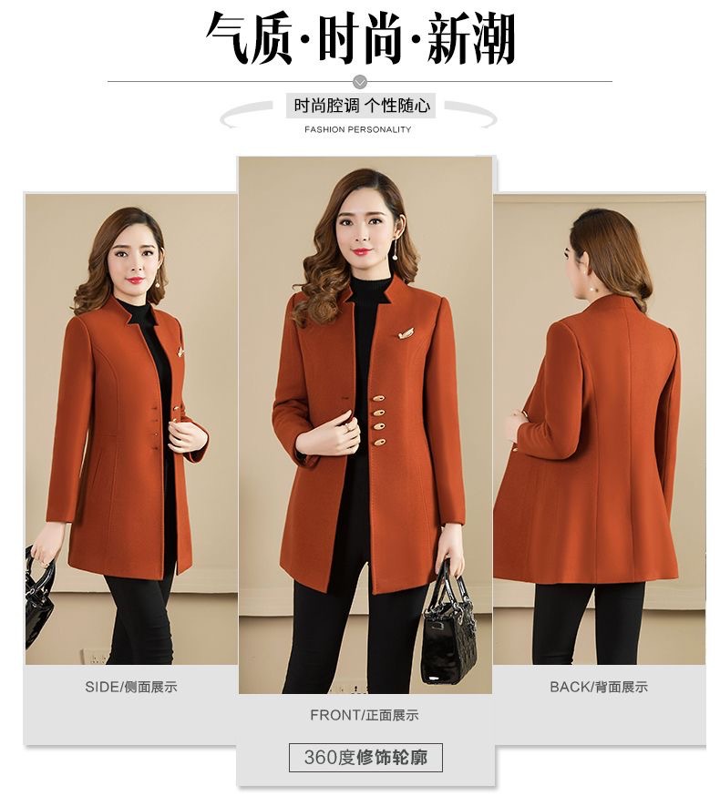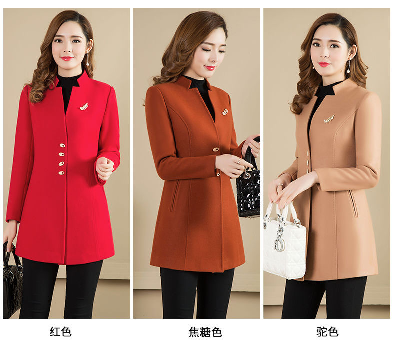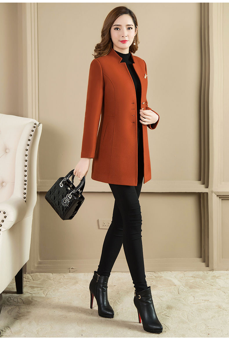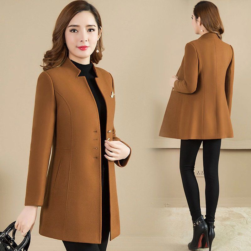 Женское осенне-зимнее сезонное шерстяное пальто средней длины, новое шерстяное пальто, женское приталенное с коротким воротником-стойкой