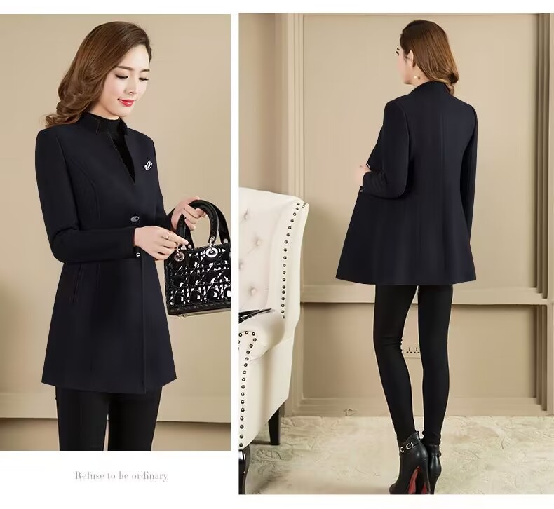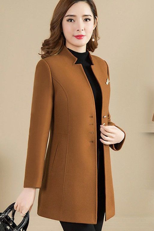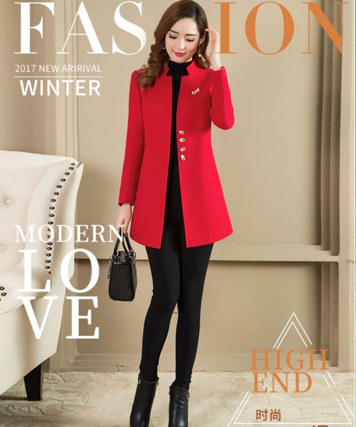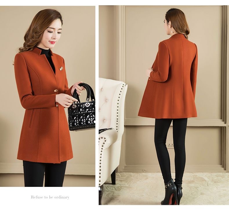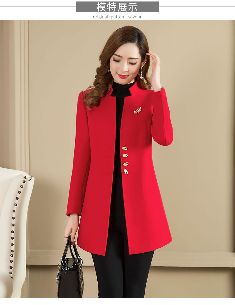 Женское осенне-зимнее сезонное шерстяное пальто средней длины, новое шерстяное пальто, женское приталенное с коротким воротником-стойкой