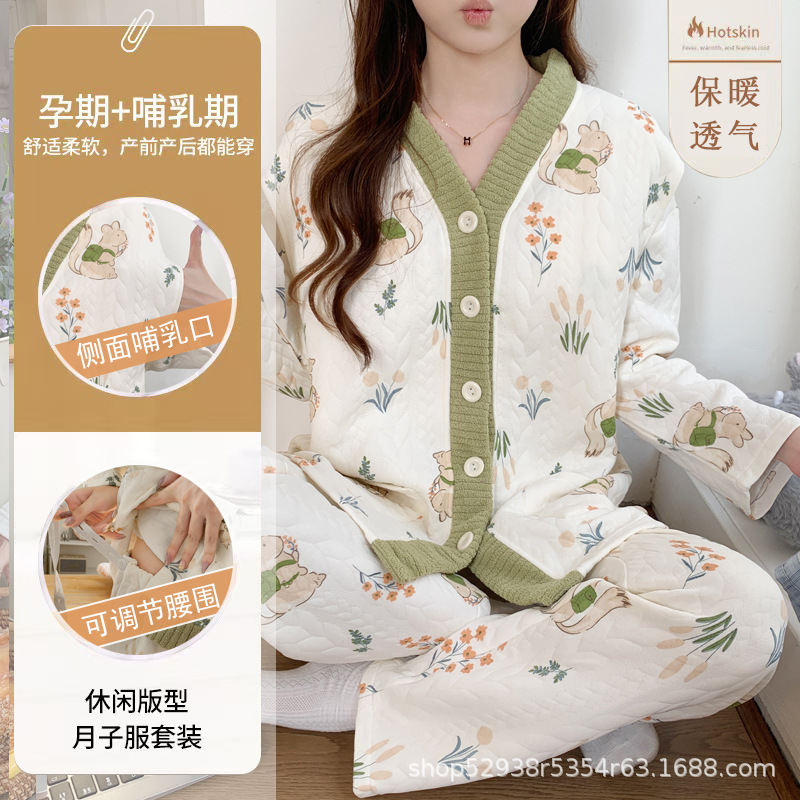 Воздушный хлопок месячная одежда весна и осень хлопок послеродовой сидячий месяц октябрь-декабрь осень и зима беременные женщины пижамы для кормления