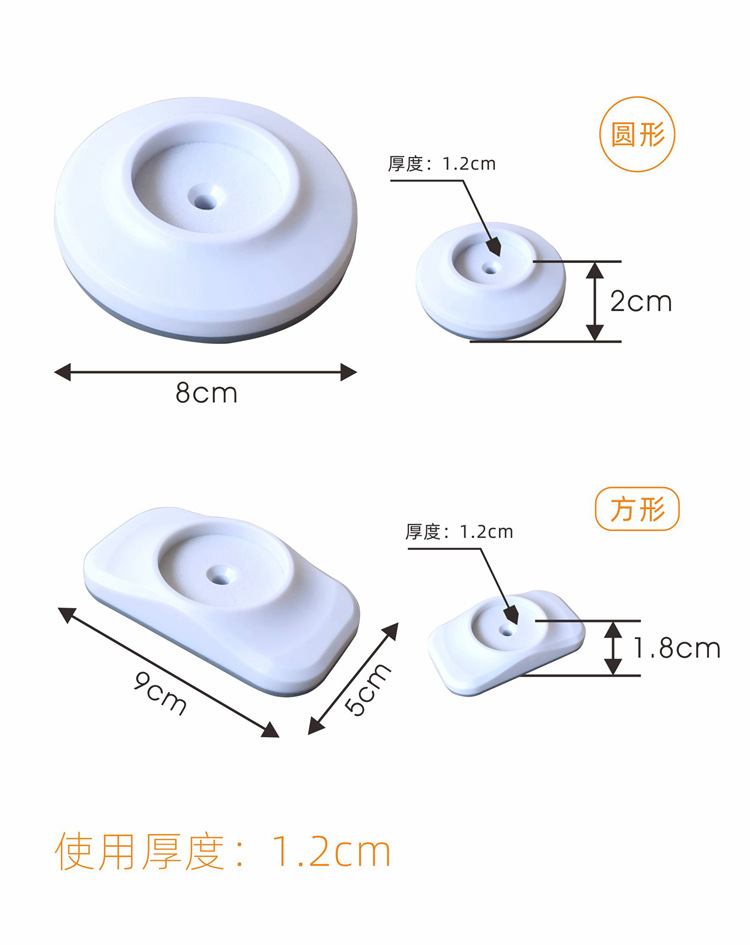 Круглый (диаметр 8 см); Квадрат (диаметр 9 × 5 см)