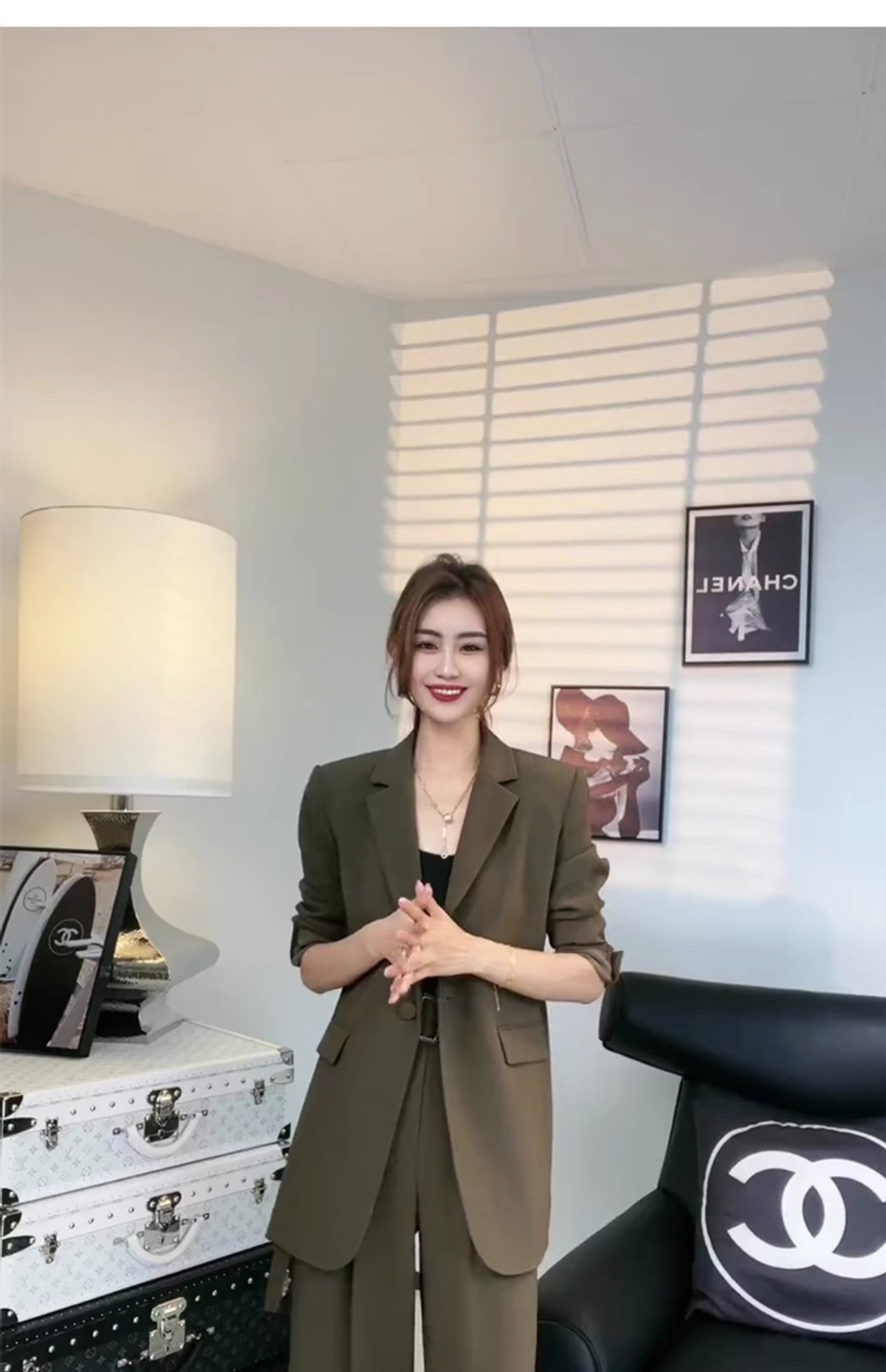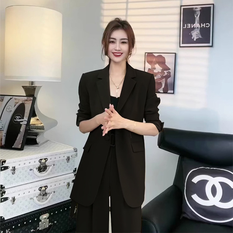 2623 осенний женский костюм больших размеров для работы, Женский Высокий костюм для пухленьких девочек, пальто, широкие брюки, комплект из двух предметов