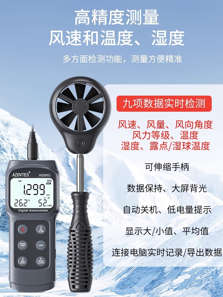 Все инструменты AE8901 Анемометр Многофункциональный измеритель ветра портативный измеритель уровня ветра с рабочим колесом тестер направления ветра