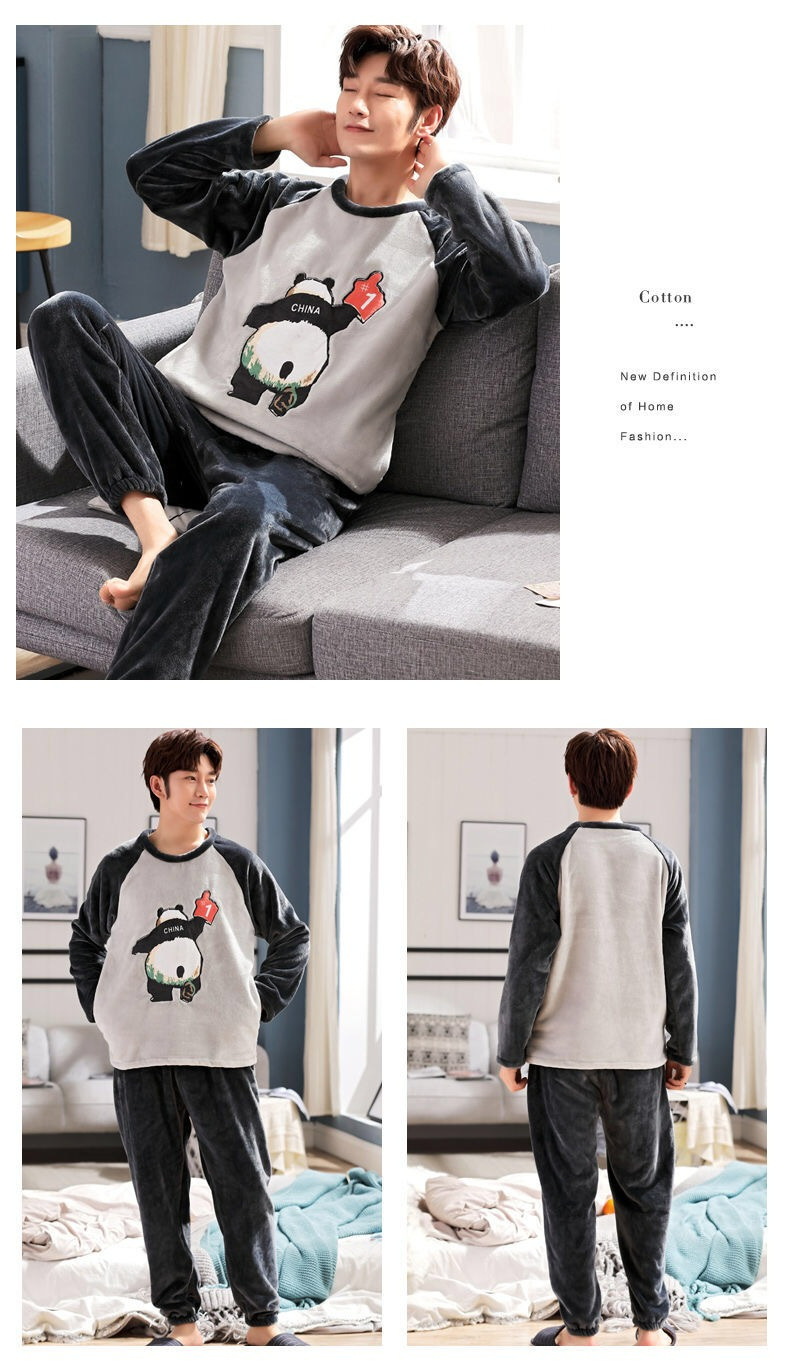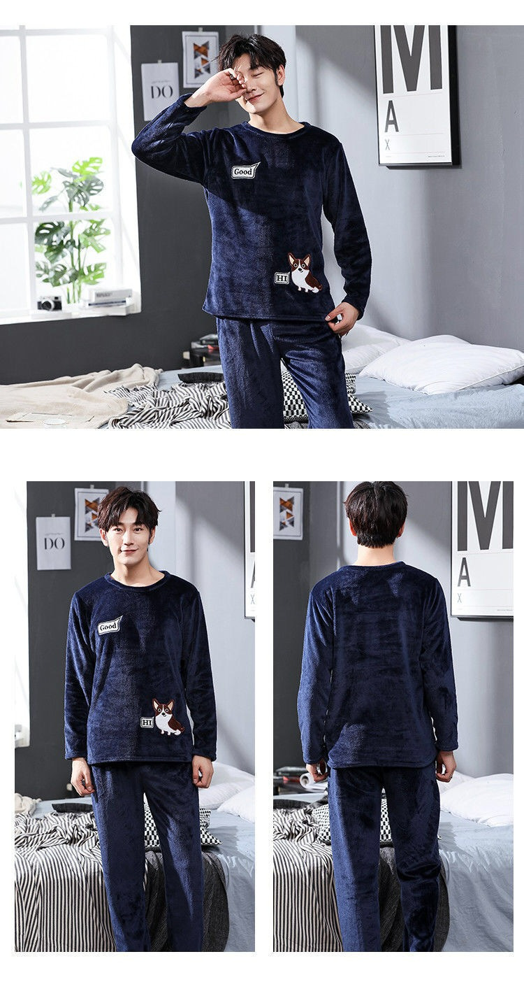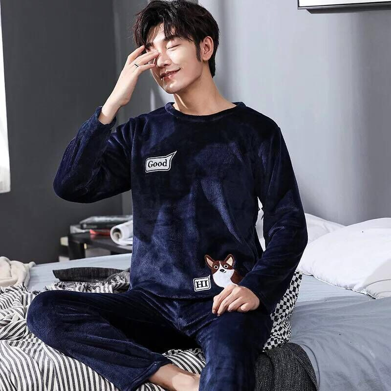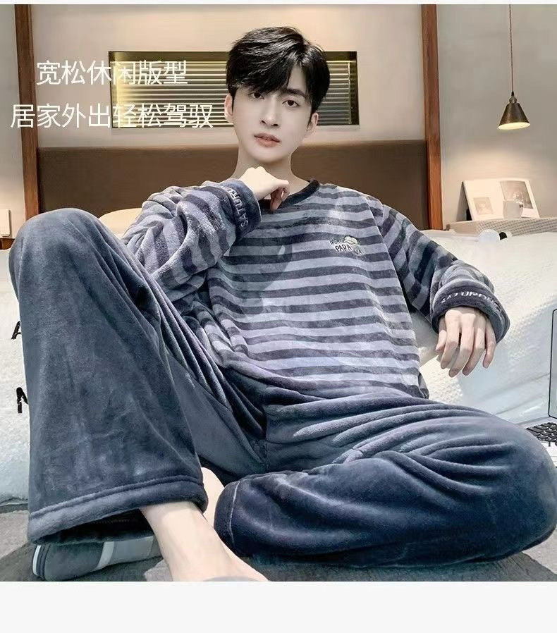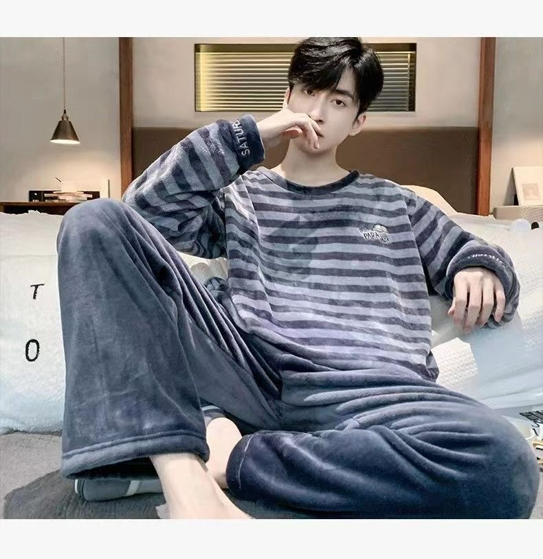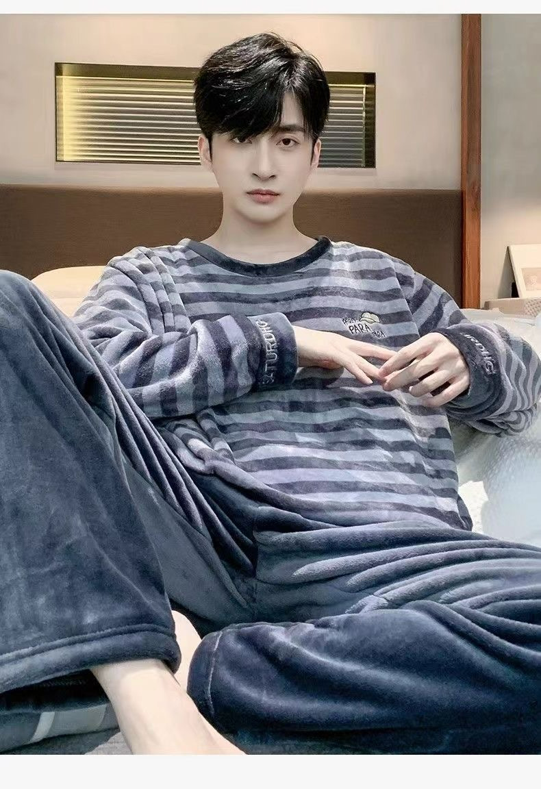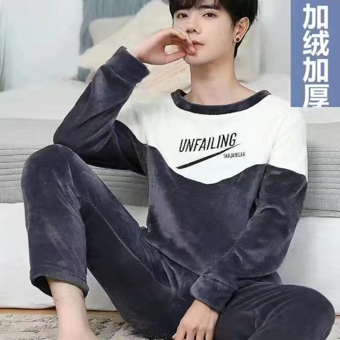 Пижама из кораллового флиса, Мужская зимняя утолщенная на флисовой подкладке, мужская осенне-зимняя одежда для подростков, костюм для верхней домашней одежды