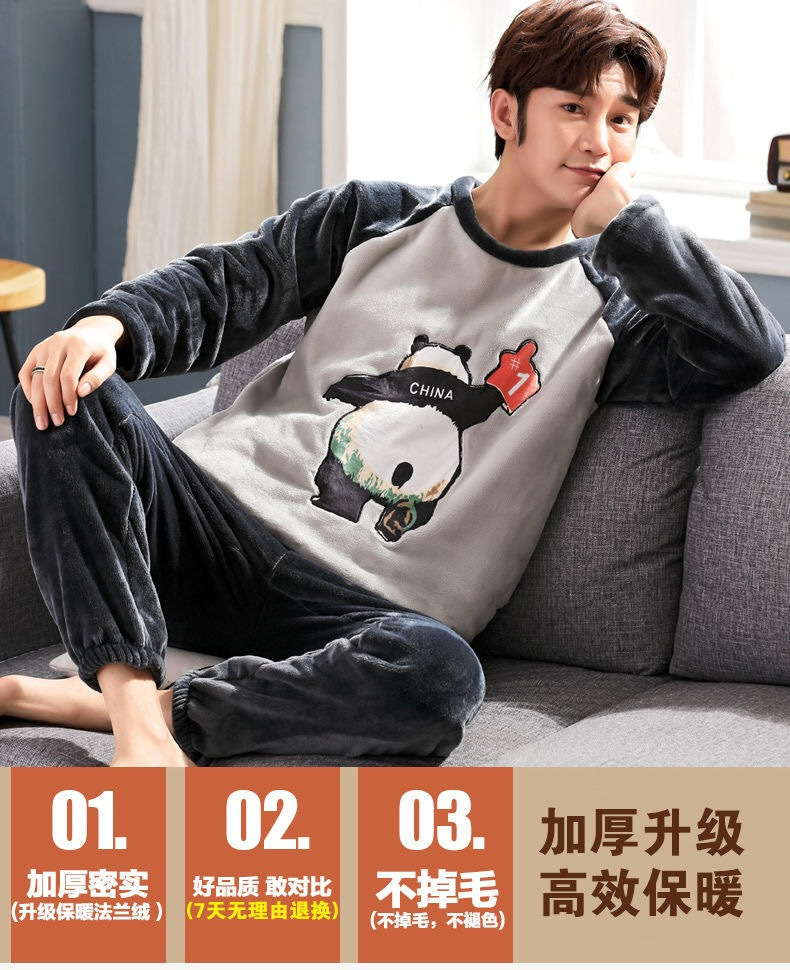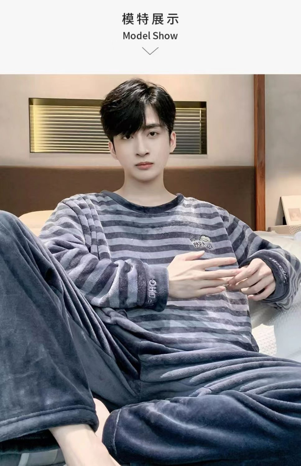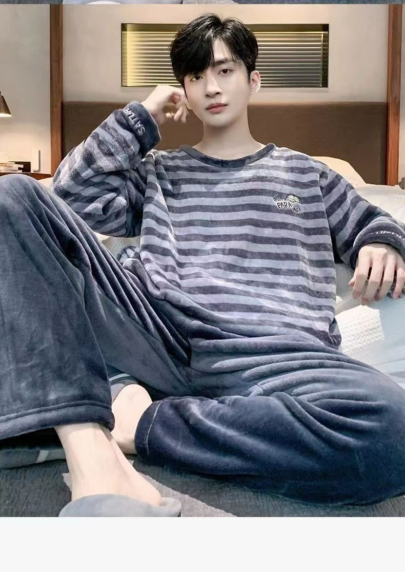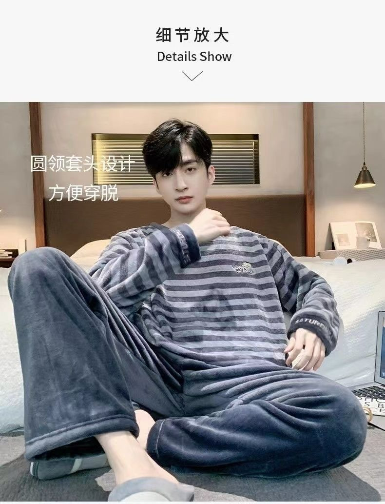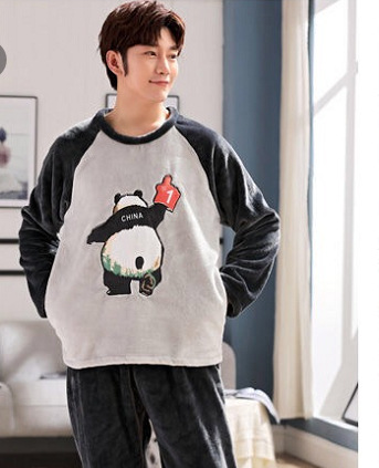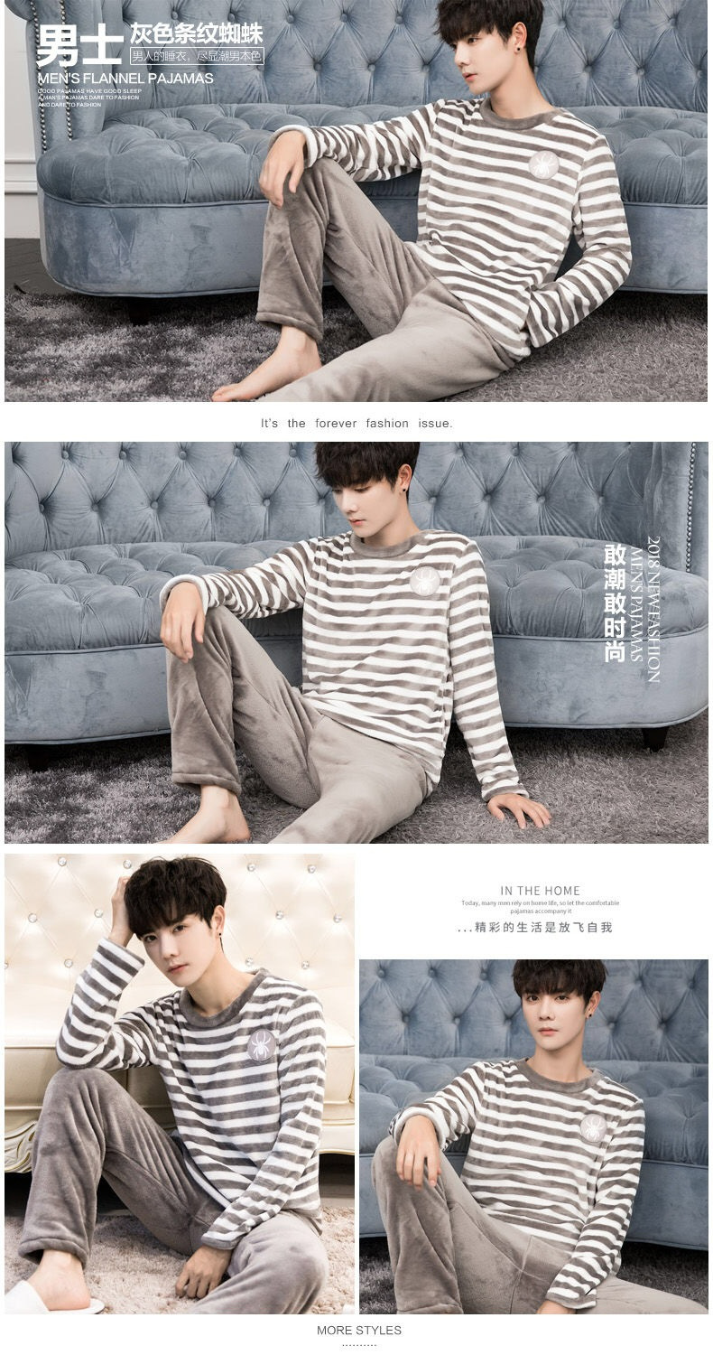 Пижама из кораллового флиса, Мужская зимняя утолщенная на флисовой подкладке, мужская осенне-зимняя одежда для подростков, костюм для верхней домашней одежды