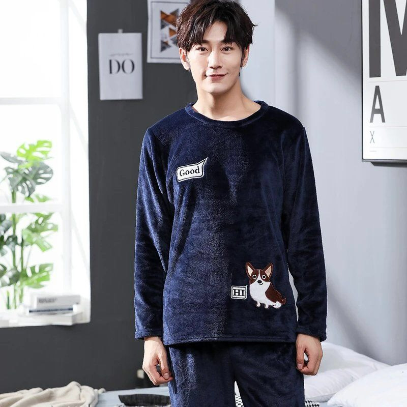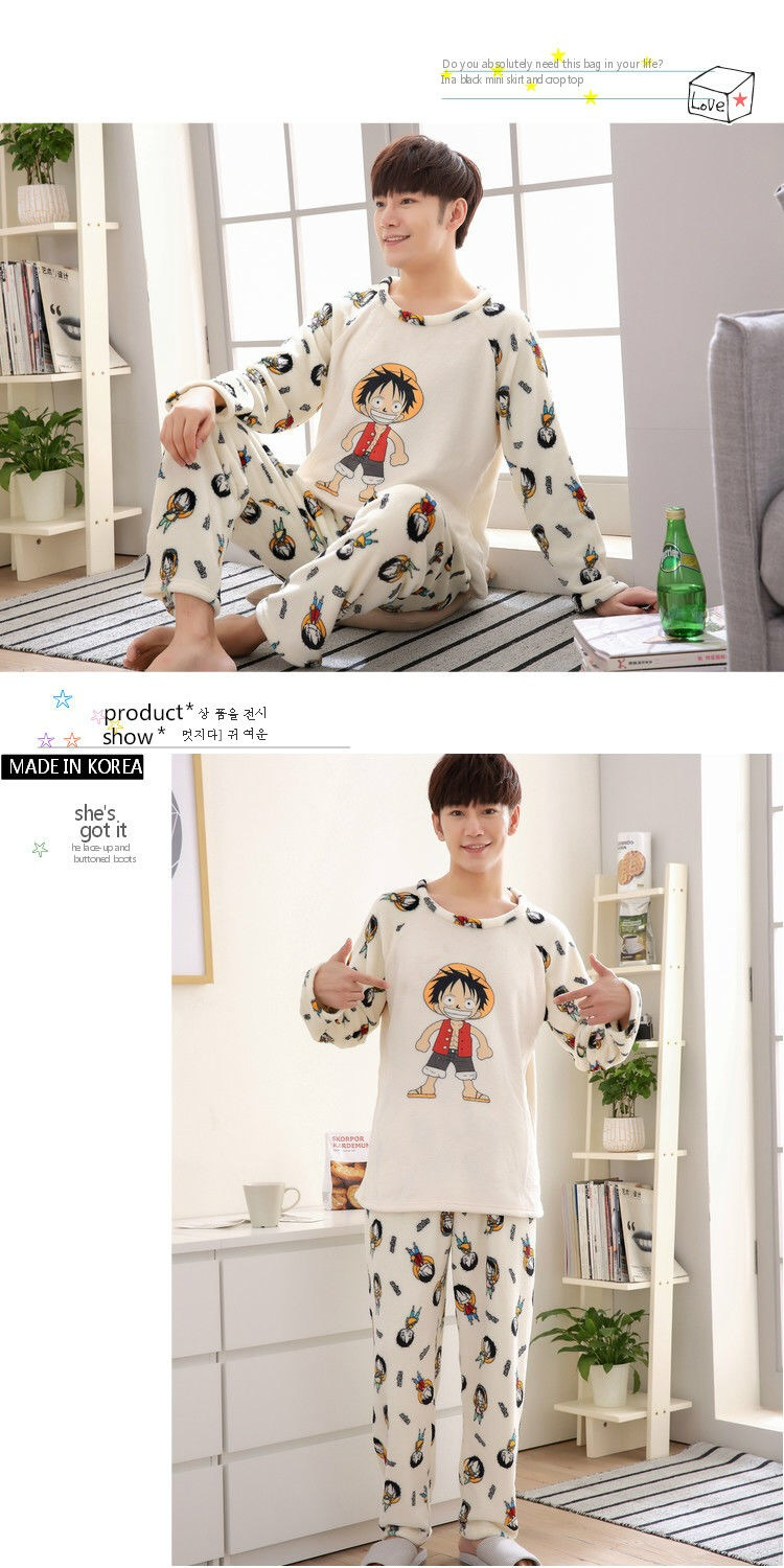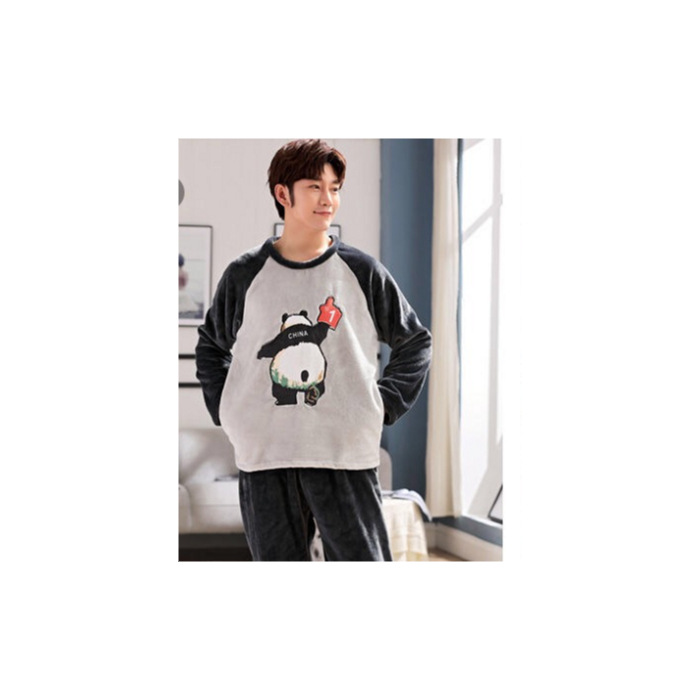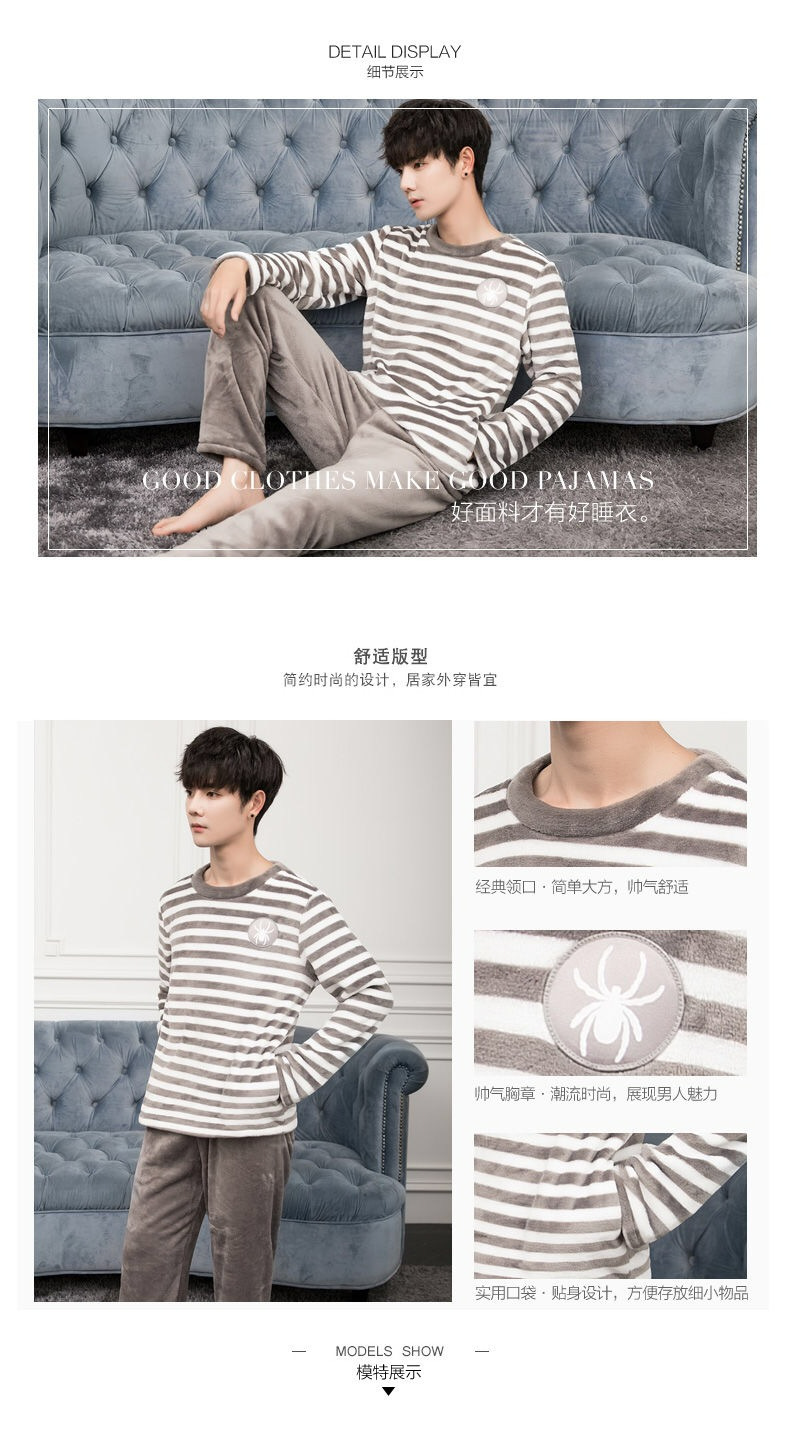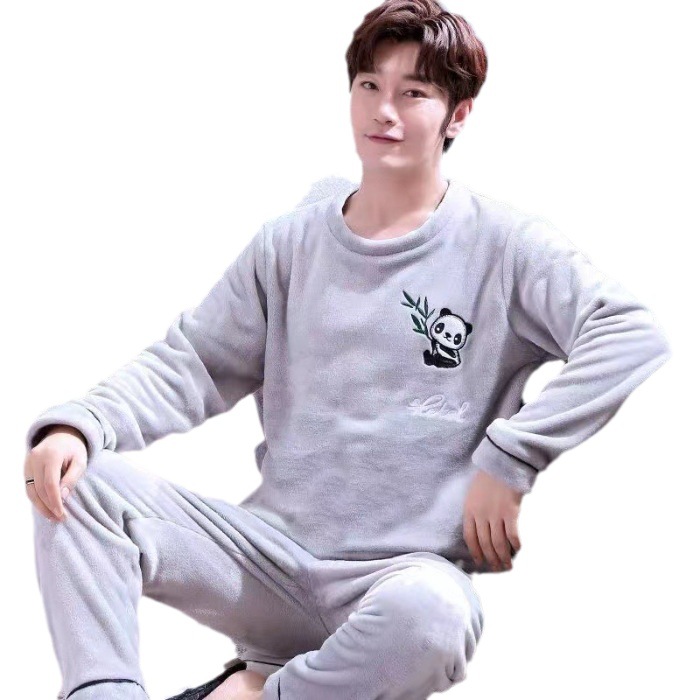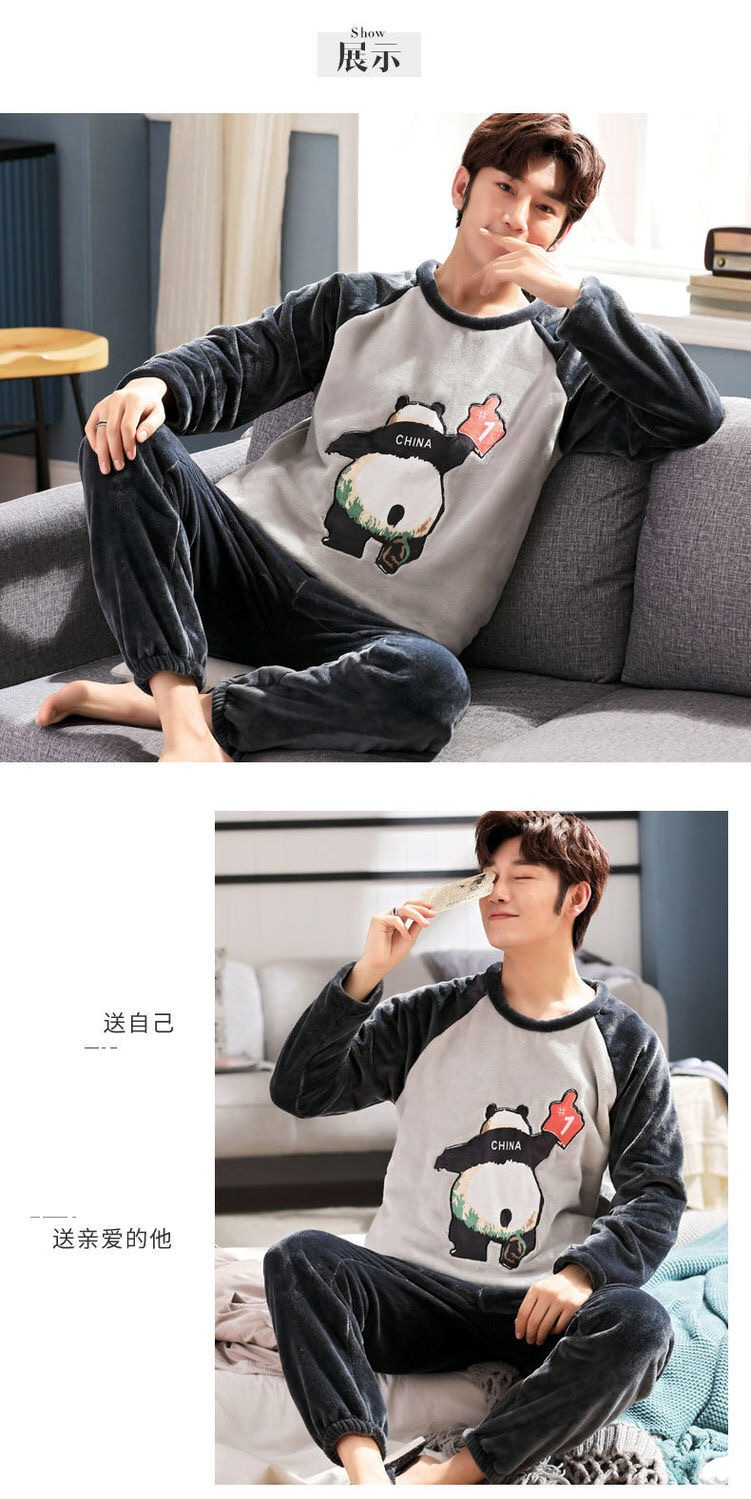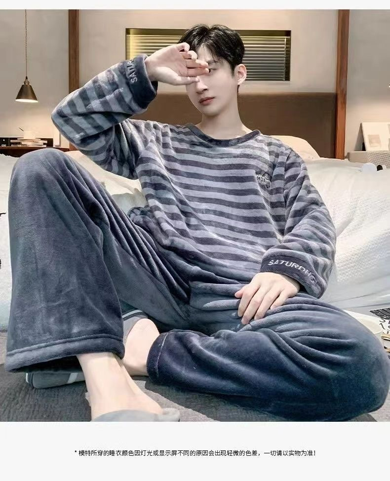 Пижама из кораллового флиса, Мужская зимняя утолщенная на флисовой подкладке, мужская осенне-зимняя одежда для подростков, костюм для верхней домашней одежды