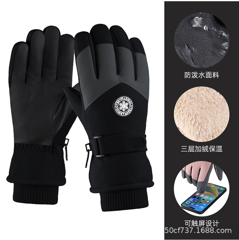 Новые зимние нескользящие, ветрозащитные, водонепроницаемые, теплые и морозостойкие уличные утолщенные бархатные лыжные водоотталкивающие перчатки плюс бархатные перчатки.