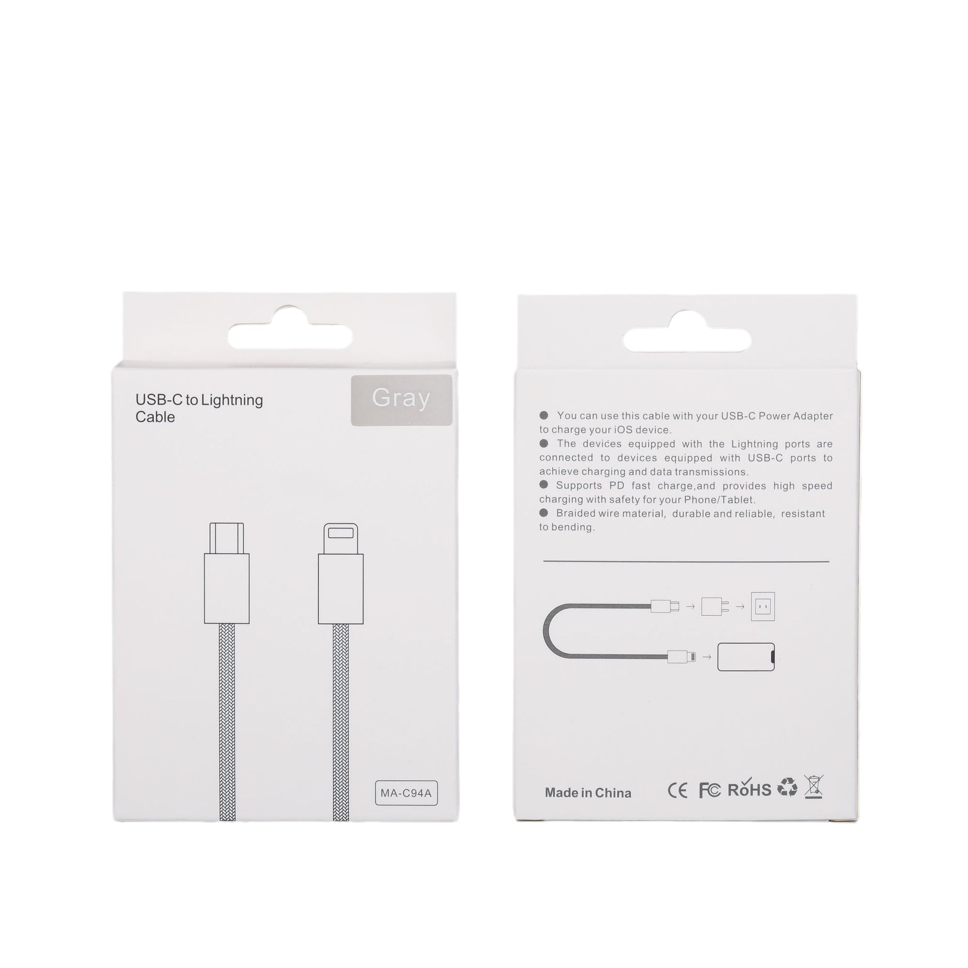 PD Быстрая зарядка двойной кабель для передачи данных C упаковка Подготовка провода зарядка провода упаковочная коробка маленькая белая коробка Нейтральный Универсальный в наличии оптом