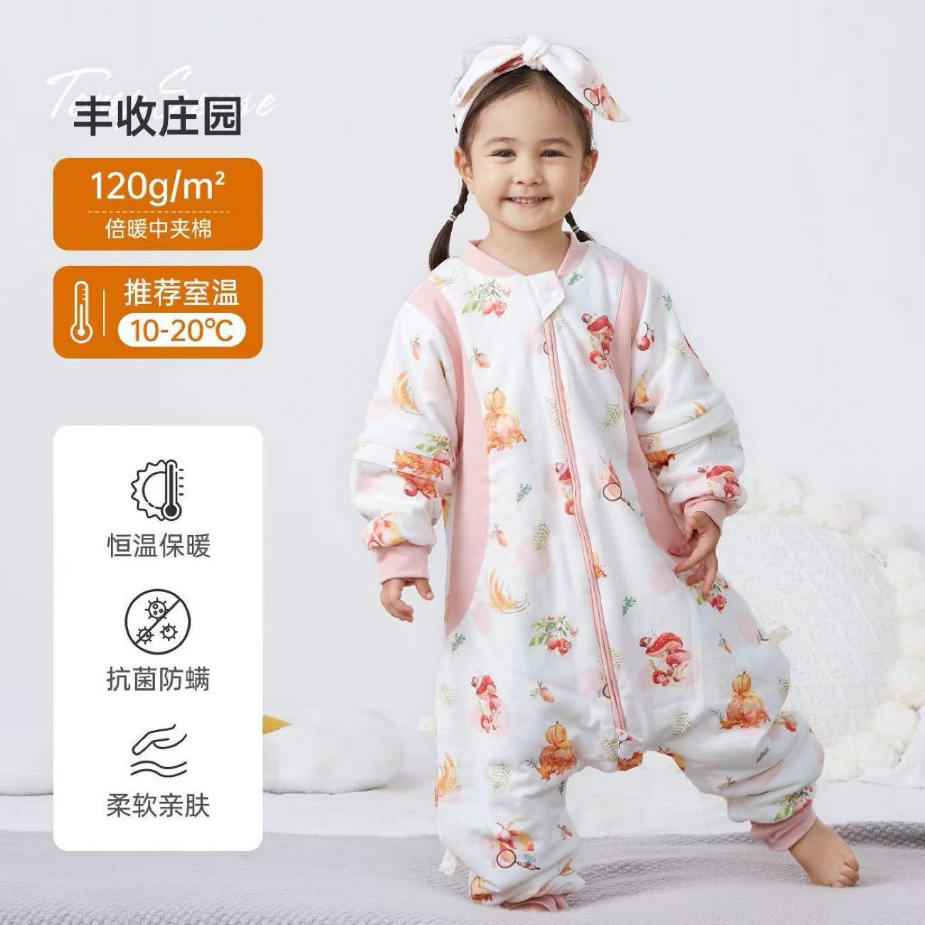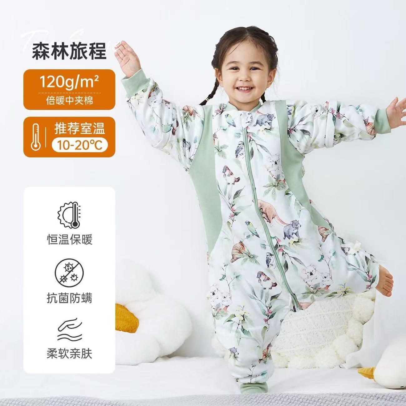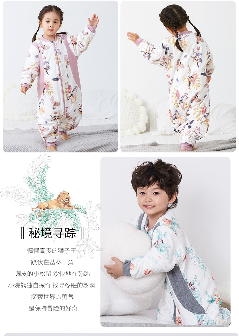 Детский спальный мешок с мягкой подкладкой, зимний утолщенный цельный костюм из чистого хлопка с постоянной температурой, антибактериальные детские пижамы, класс А.