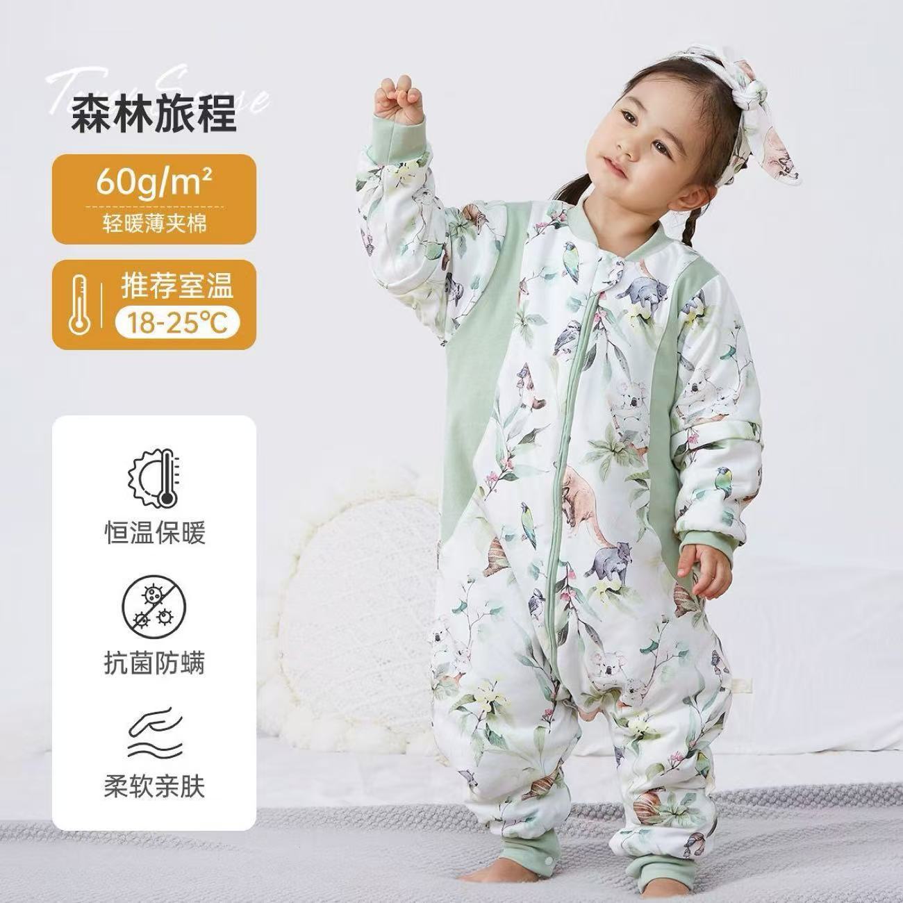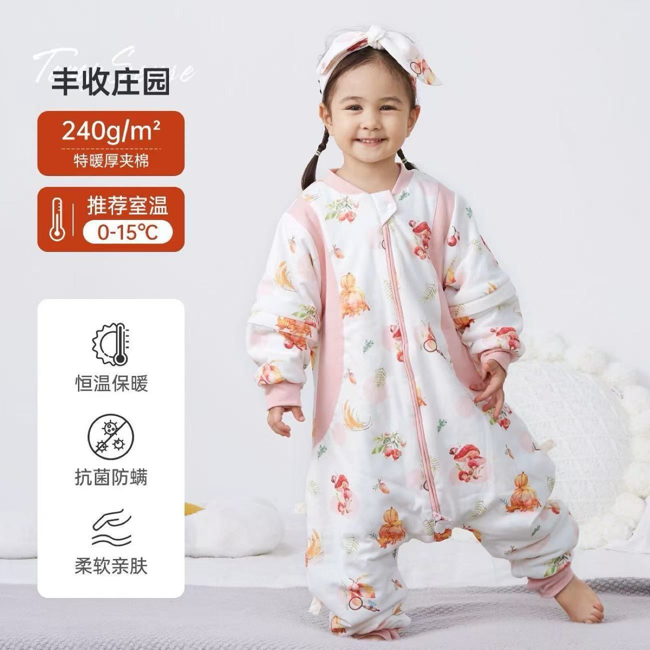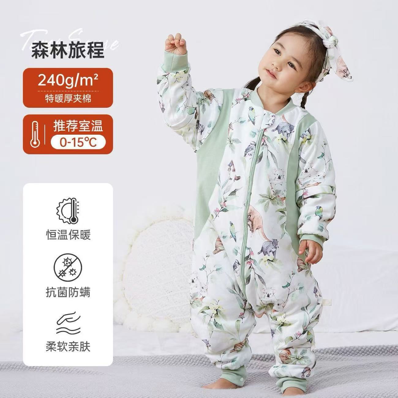 Детский спальный мешок с мягкой подкладкой, зимний утолщенный цельный костюм из чистого хлопка с постоянной температурой, антибактериальные детские пижамы, класс А.