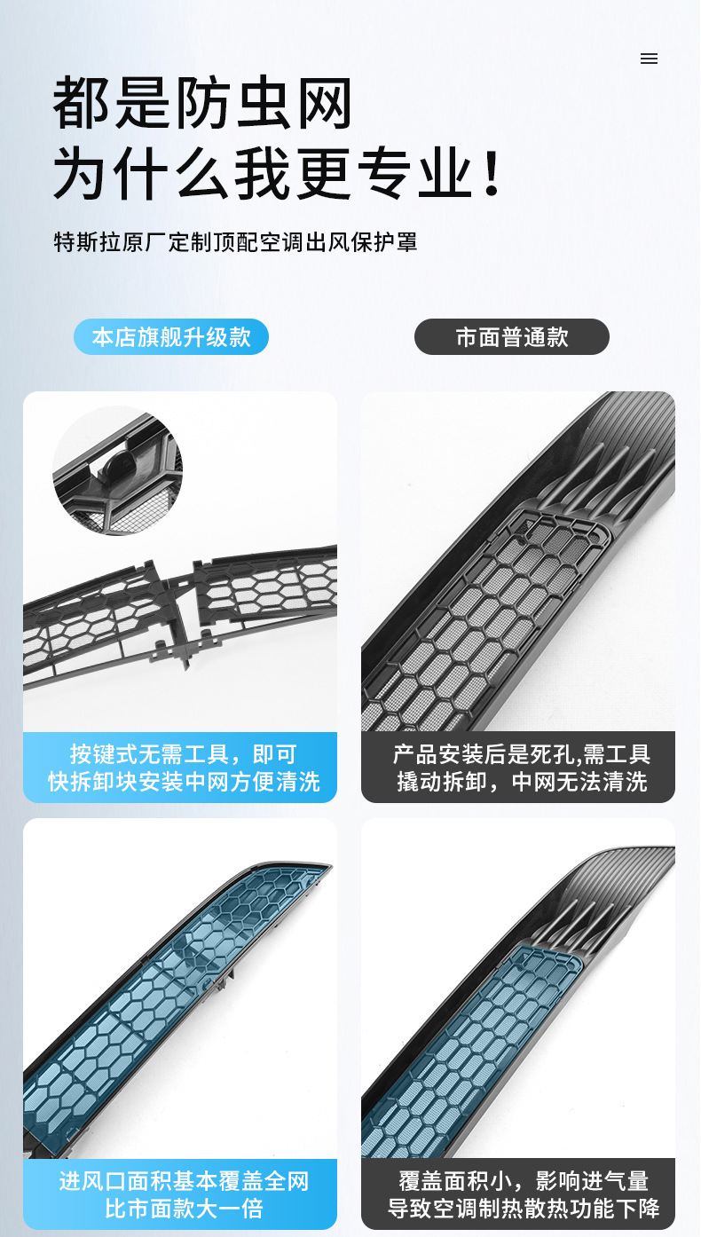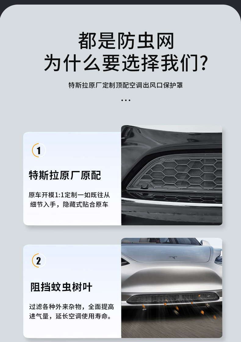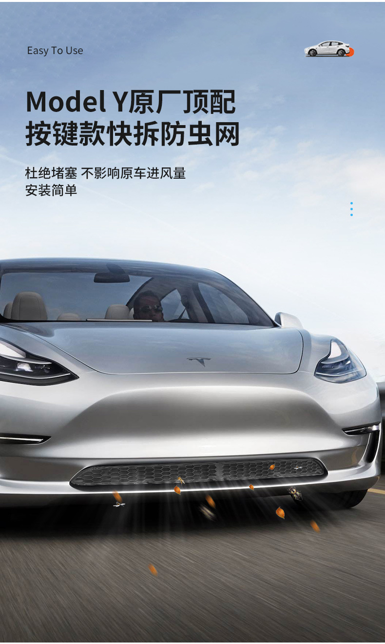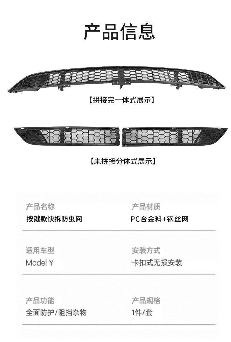 Защитная сетка от насекомых для Tesla Model Y/3 (обновленная версия), интегрированная, съемная центральная сетка, оптовая продажа.