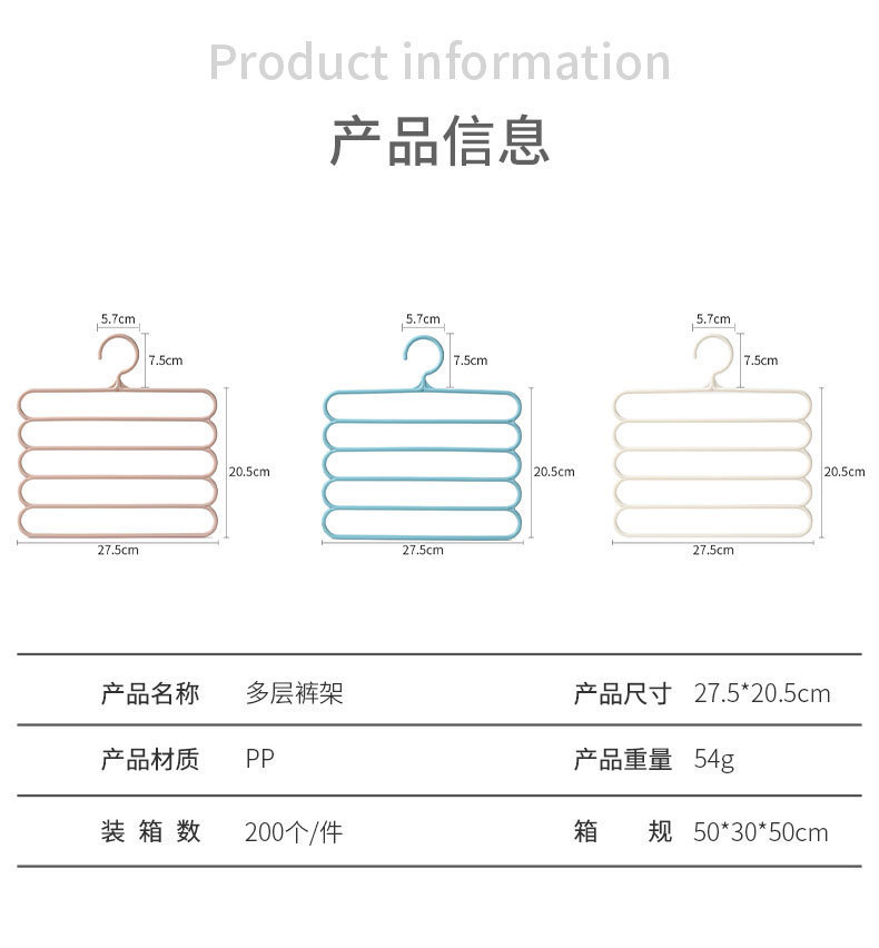 Бытовая многослойная вешалка для брюк 5-слойная вешалка для брюк Бытовое общежитие Подвесные брюки Шарф Нескользящая бесшовная сушилка