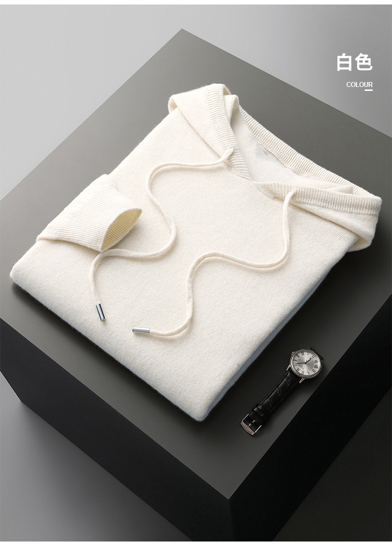 Молодежная Мода Бесшовный весенне-осенний Новый кашемировый свитер мужской свитер с капюшоном сплошной цвет вязаная шерстяная толстовка с капюшоном мужской свитер
