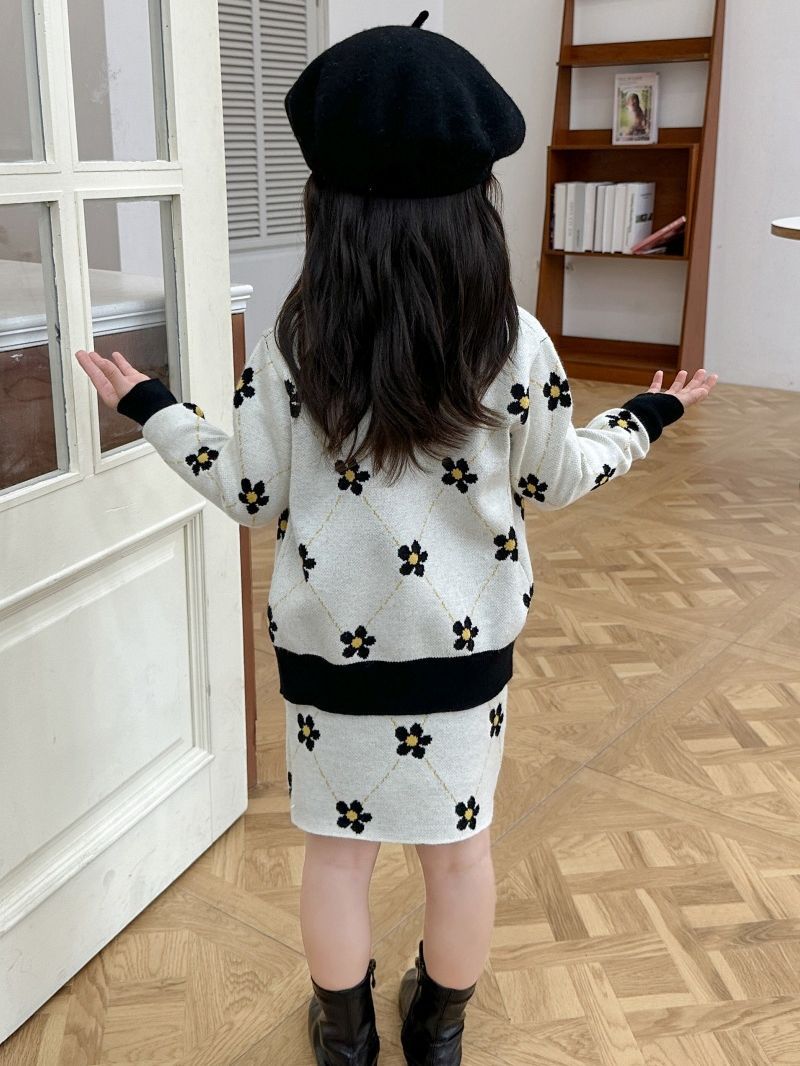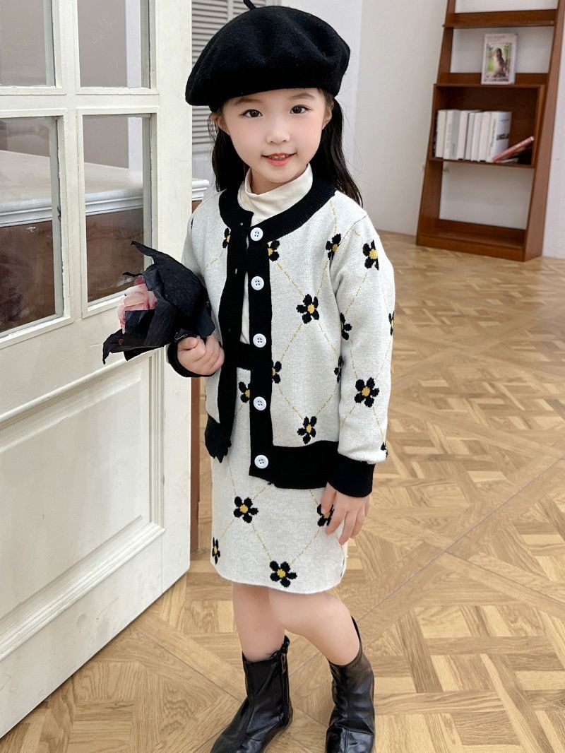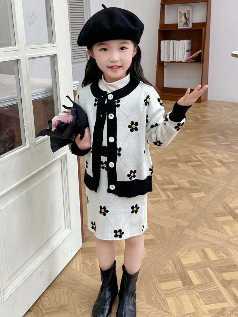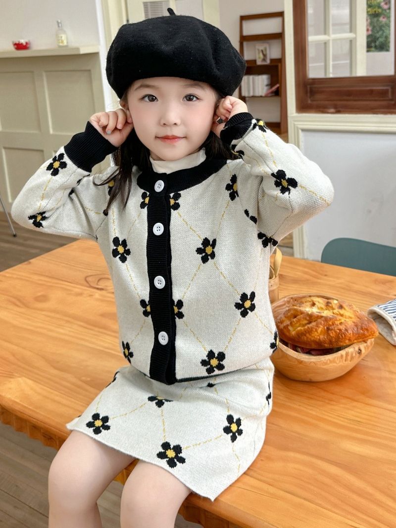 Детский комплект для девочек на весну-осень 2025: вязаный свитер, кардиган в корейском стиле, спортивная куртка, юбка, модная детская одежда для малышей