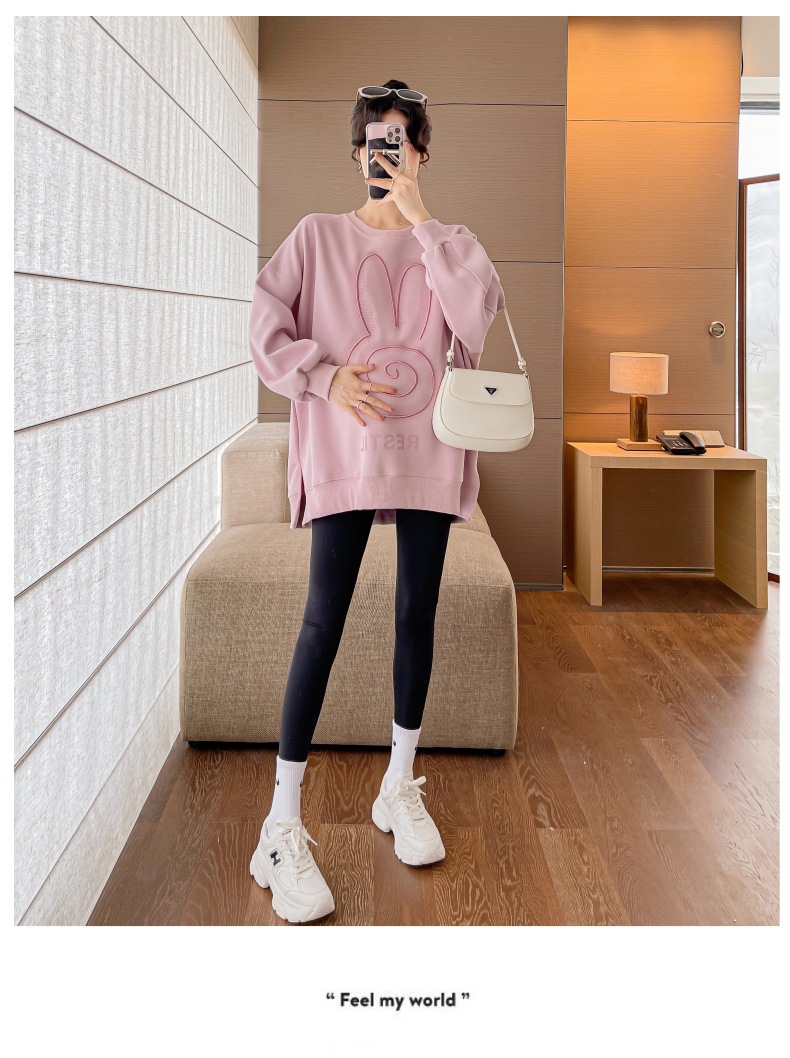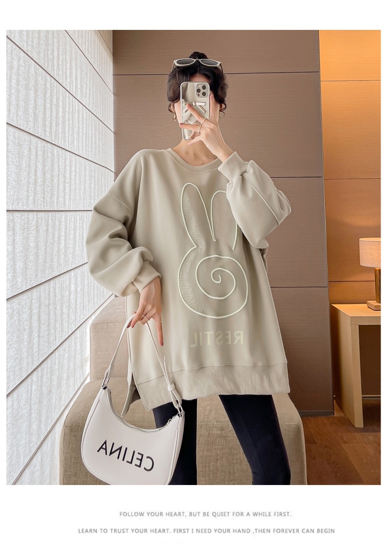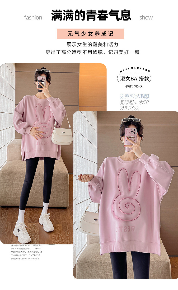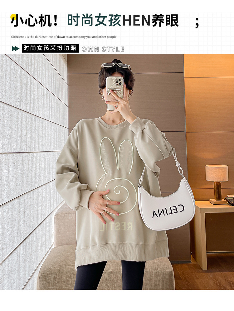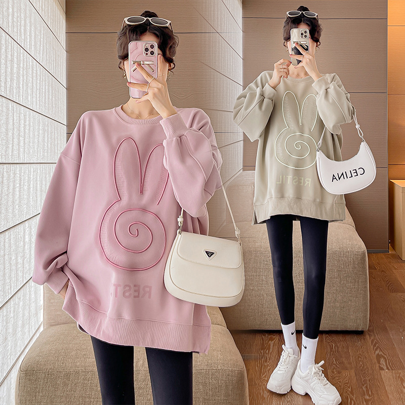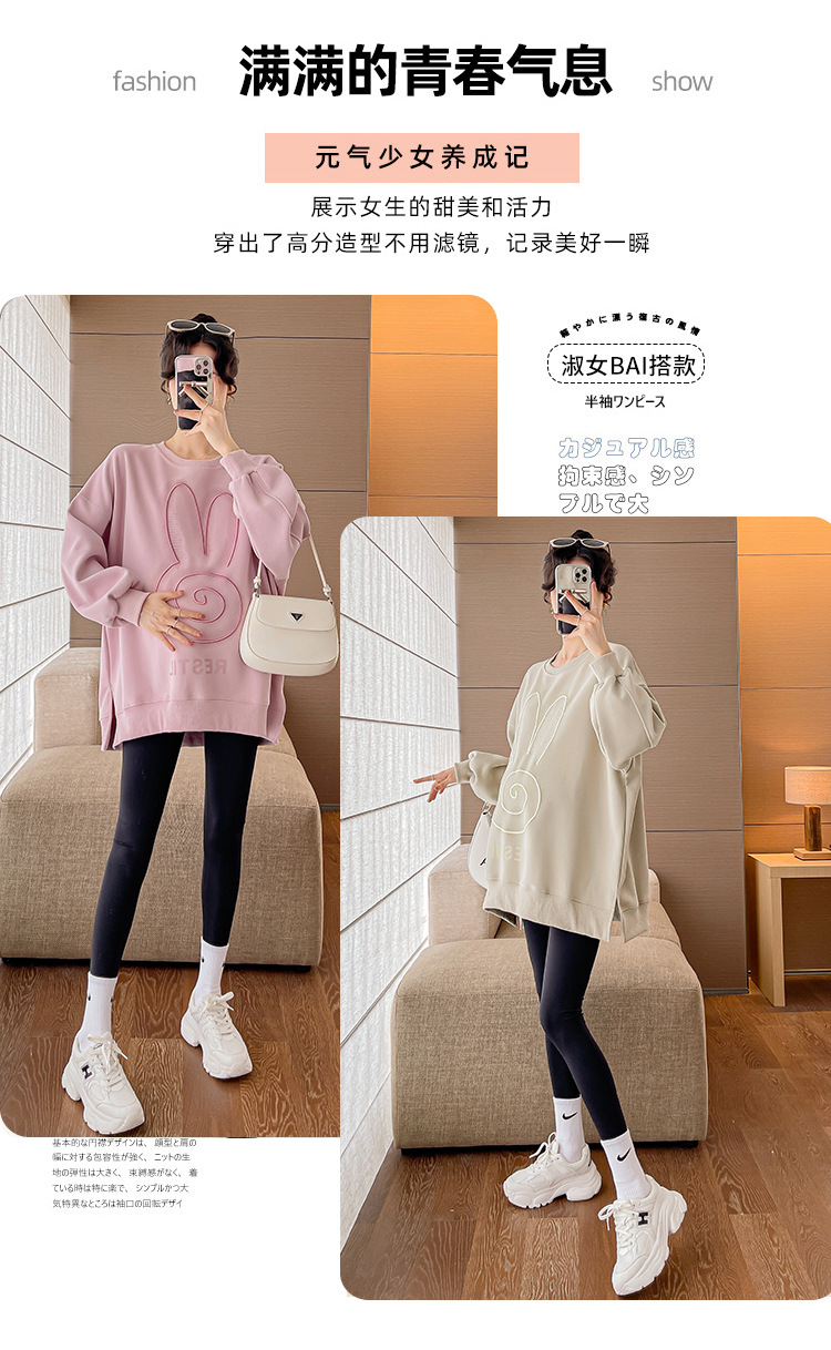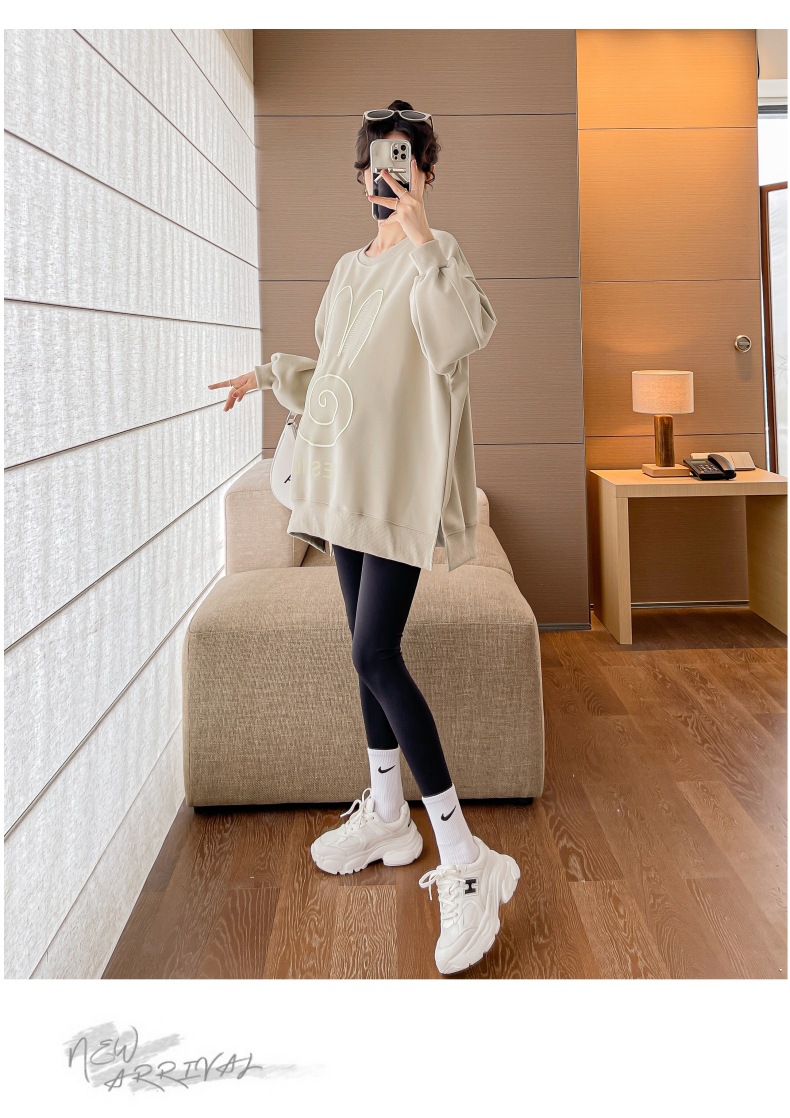 Реальный выстрел в наличии платье для беременных осень вышивка напечатано свободный плюс размер свитер Повседневный пуловер с круглым вырезом Сплит свитер с длинным рукавом