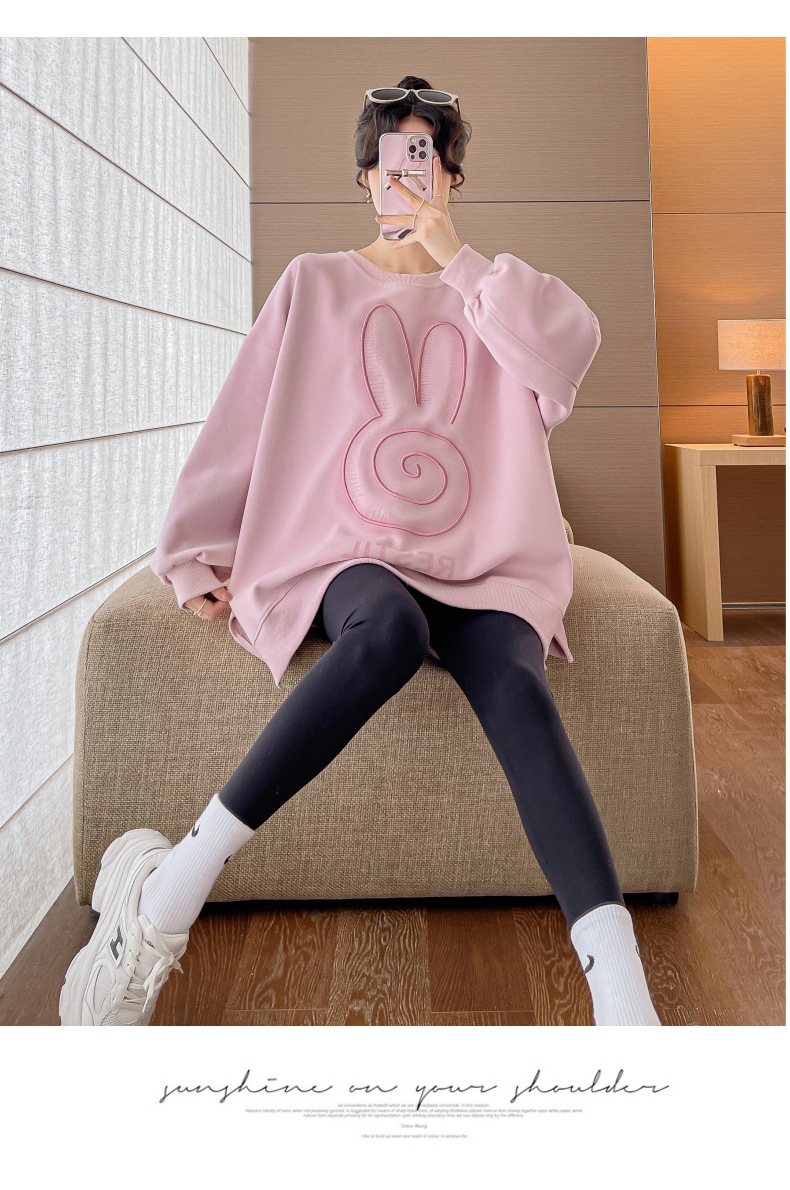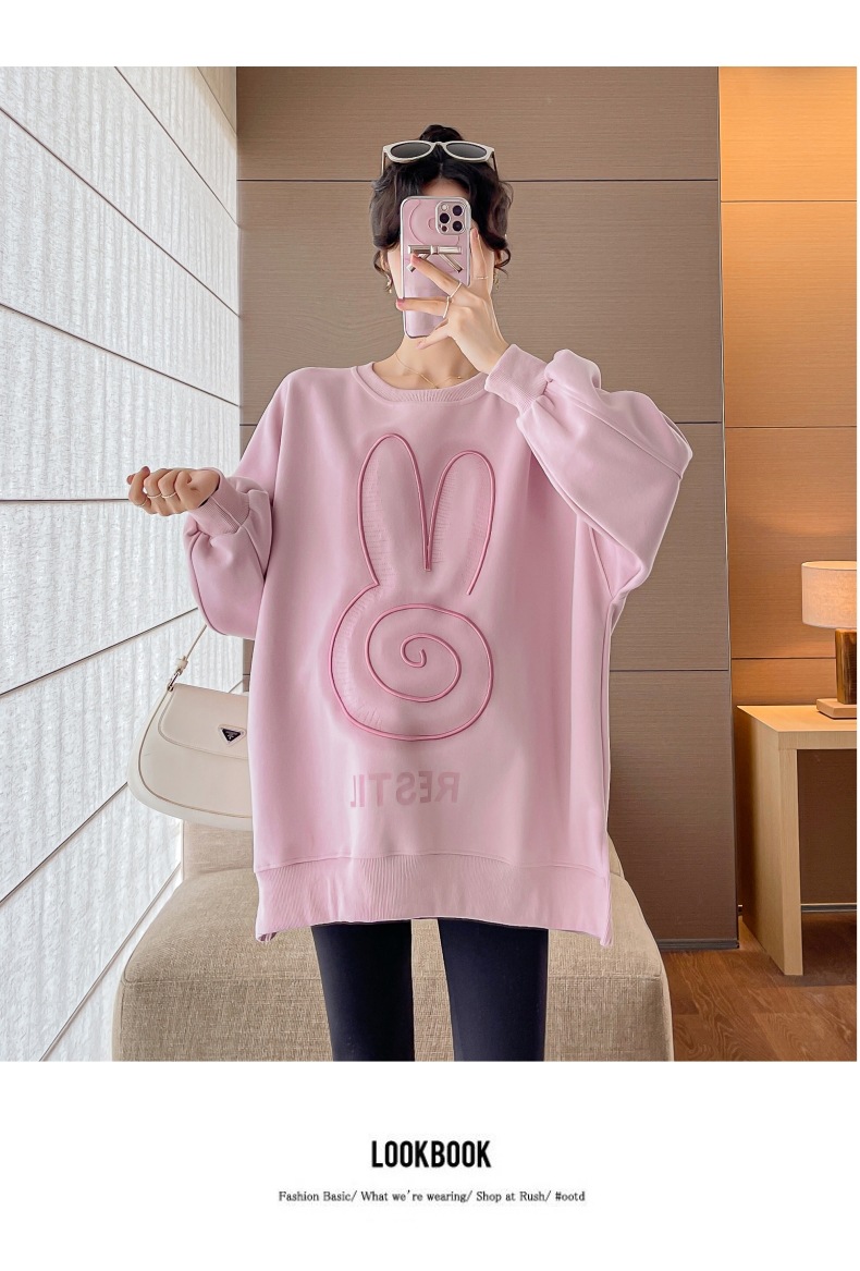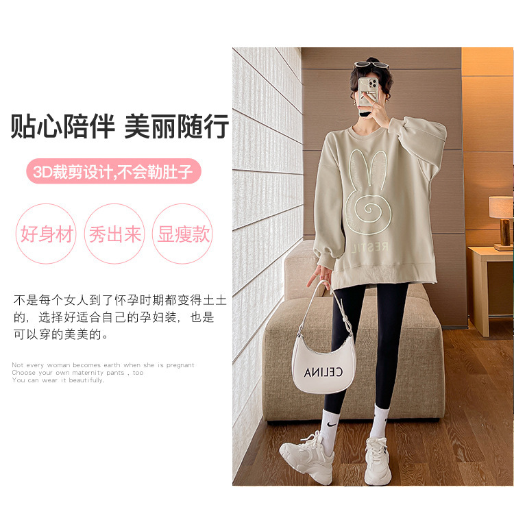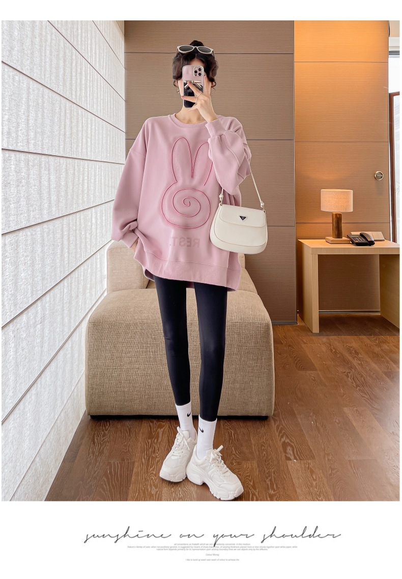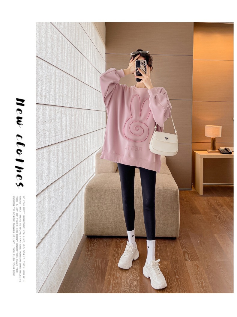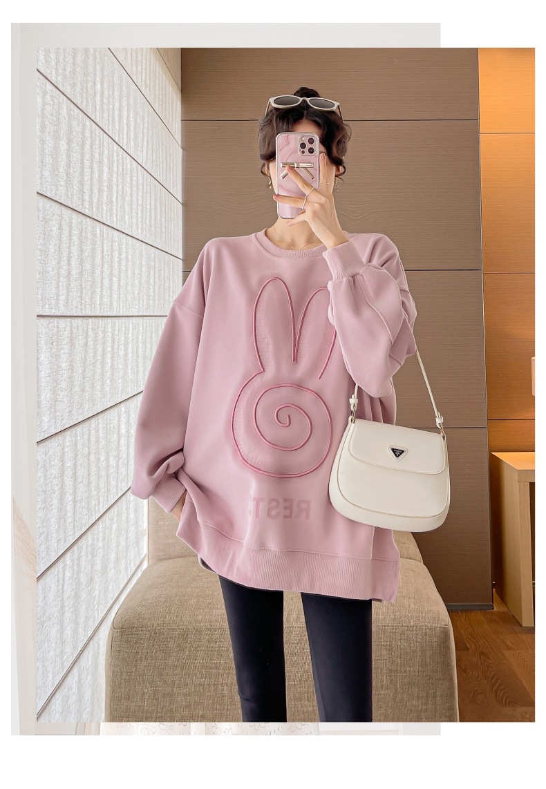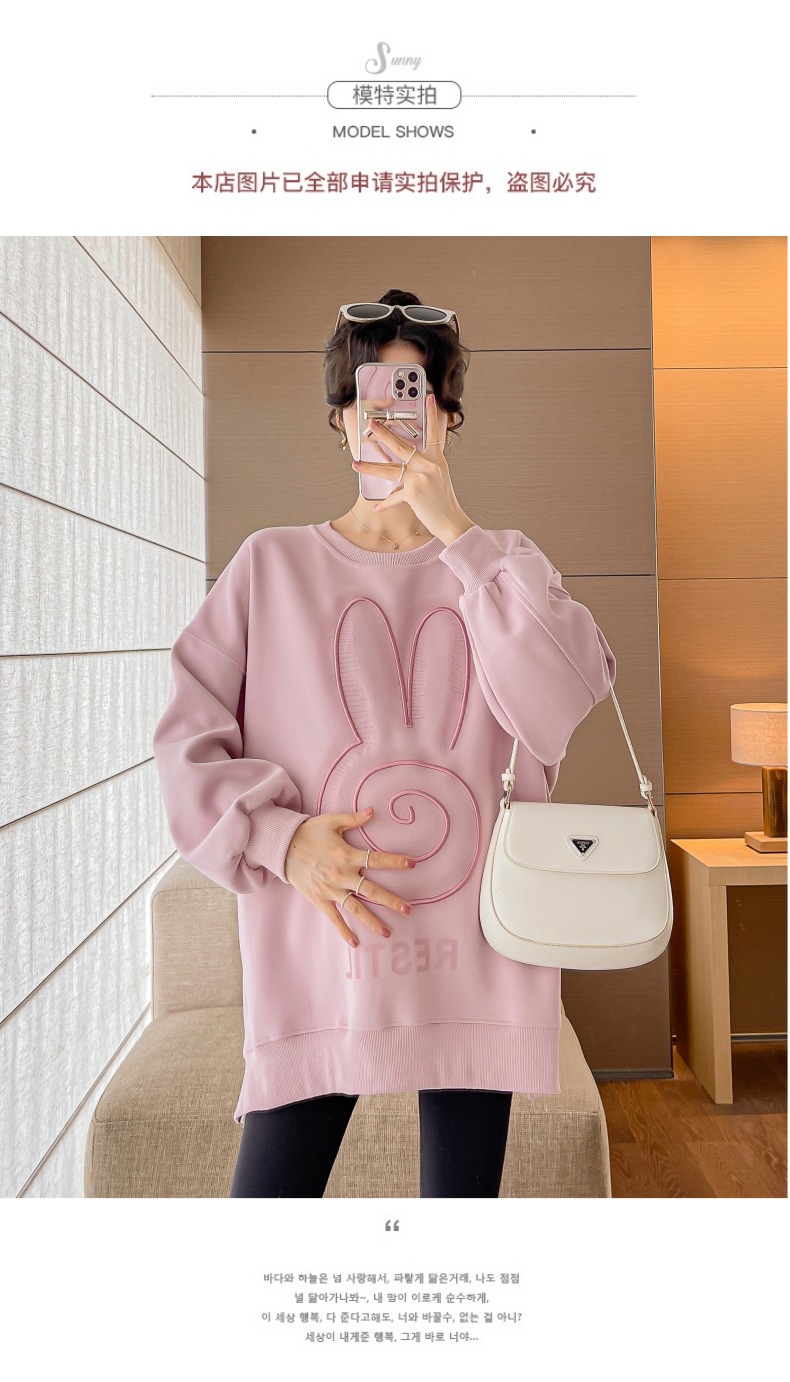Реальный выстрел в наличии платье для беременных осень вышивка напечатано свободный плюс размер свитер Повседневный пуловер с круглым вырезом Сплит свитер с длинным рукавом