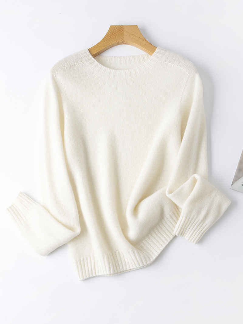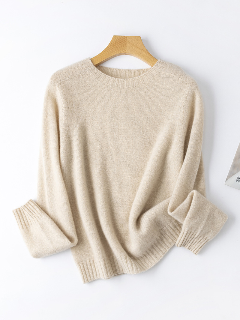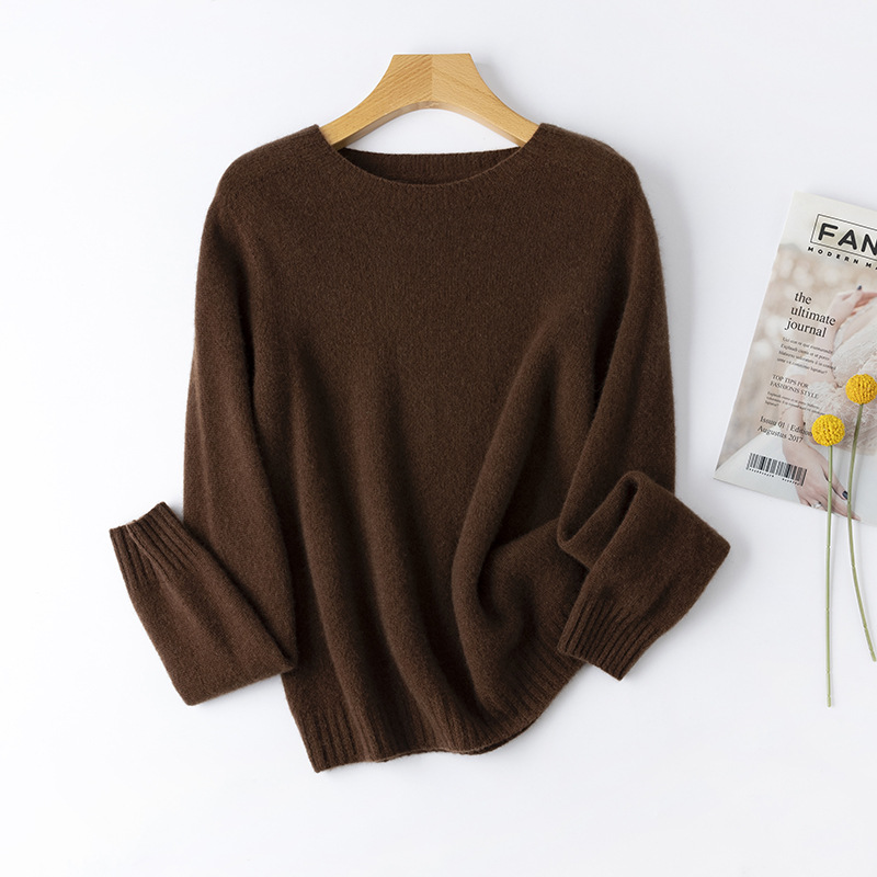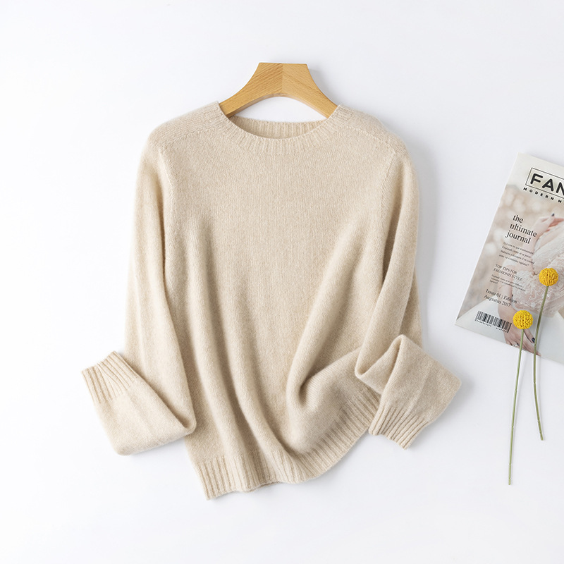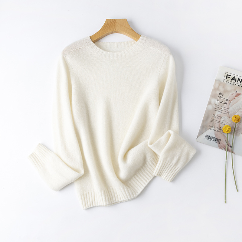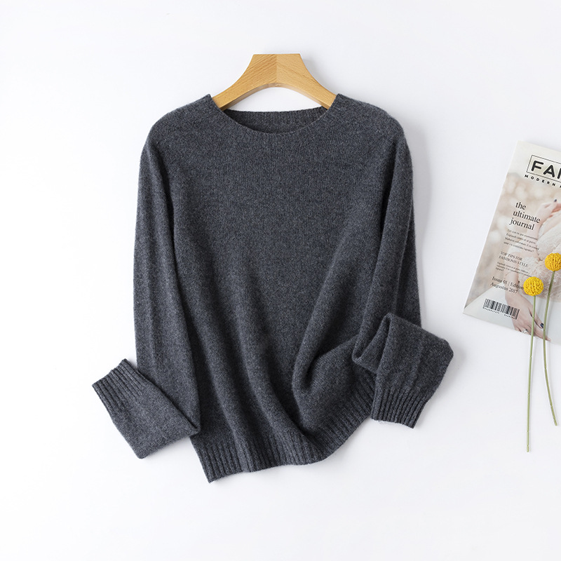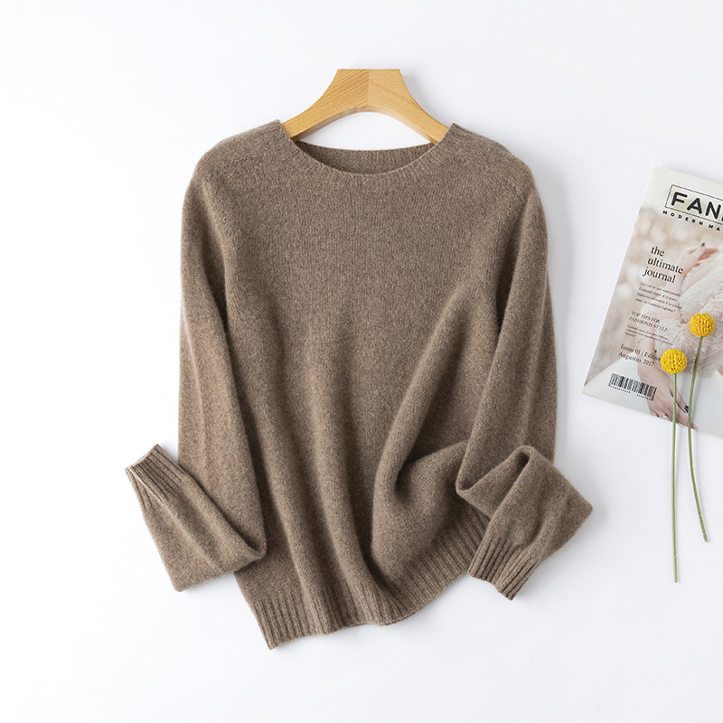 100. Кашемировая бесшовная кашемировая рубашка с круглым вырезом, Женская осенне-зимняя простая теплая трикотажная рубашка с длинным рукавом