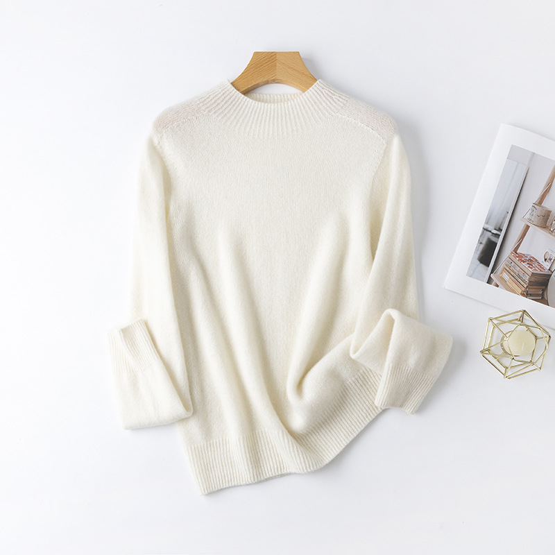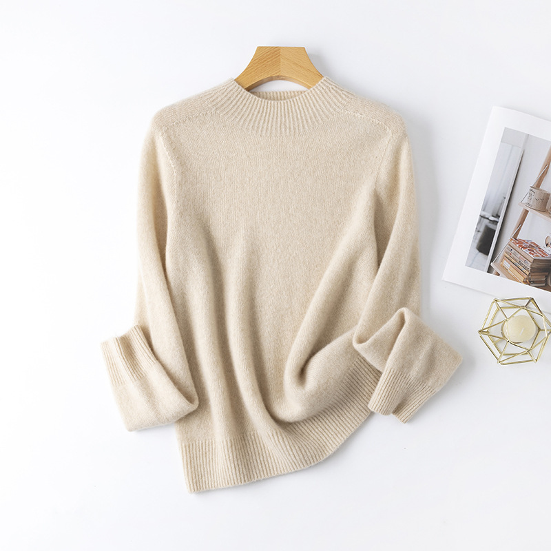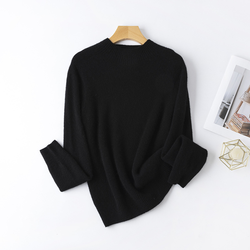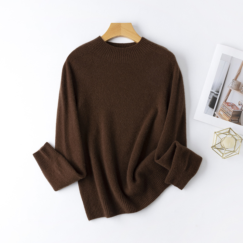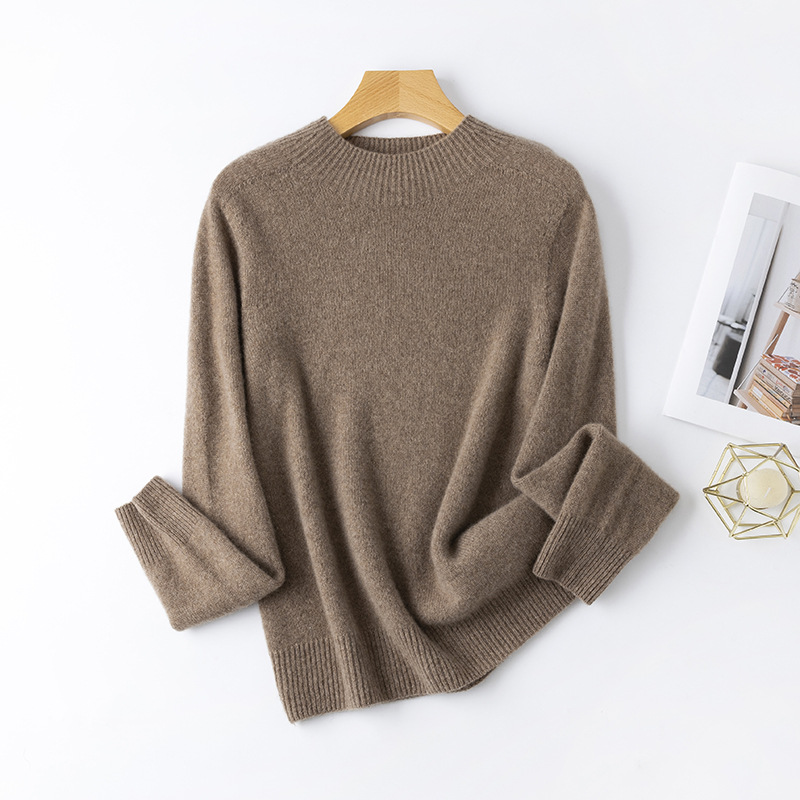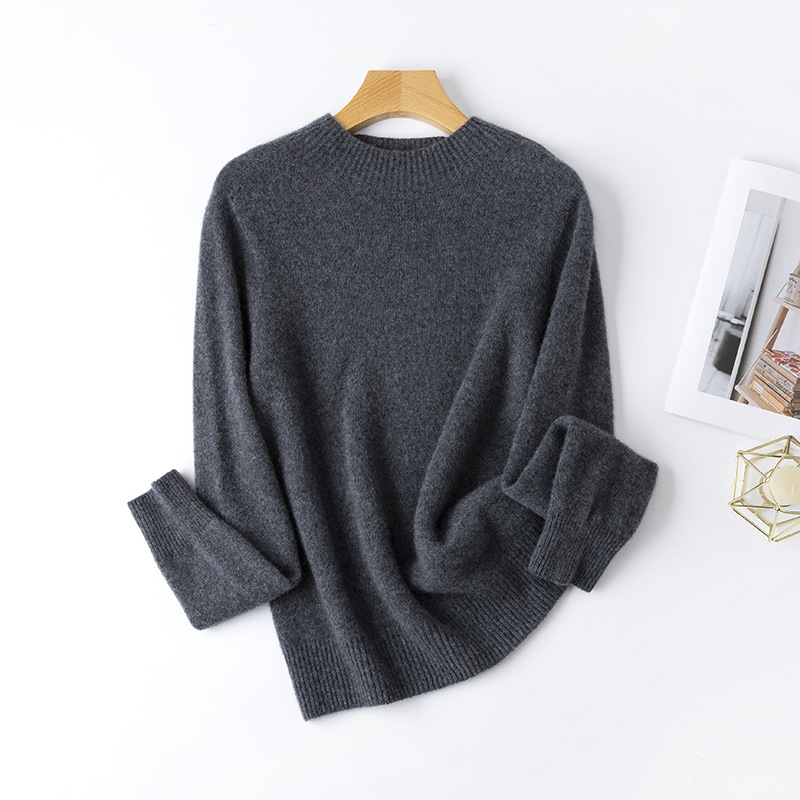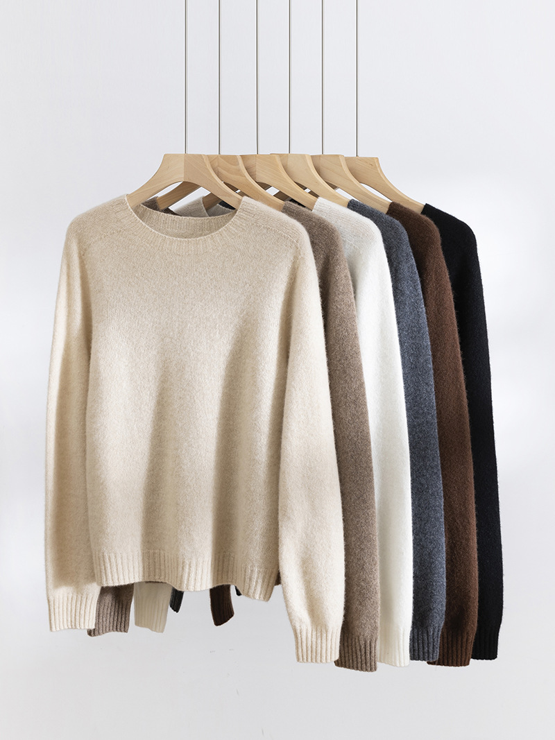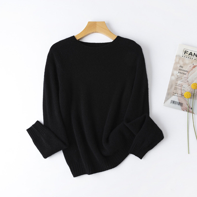 100. Кашемировая бесшовная кашемировая рубашка с круглым вырезом, Женская осенне-зимняя простая теплая трикотажная рубашка с длинным рукавом