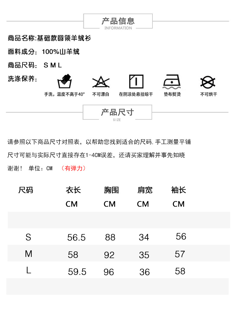 面料材质:100%羊绒
