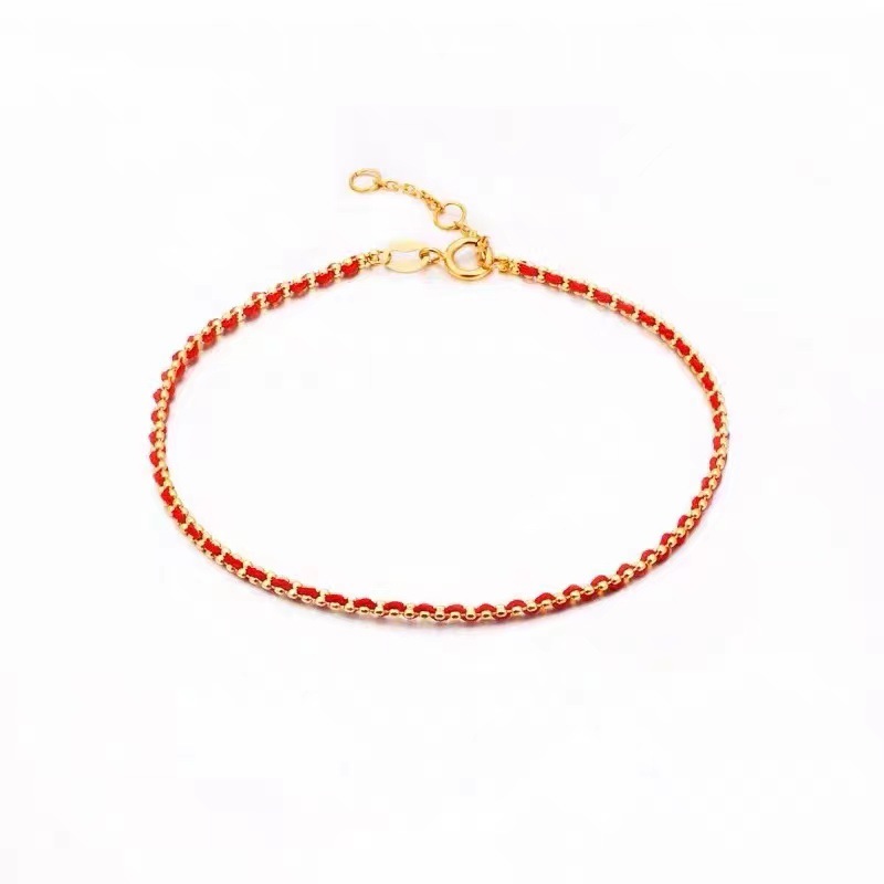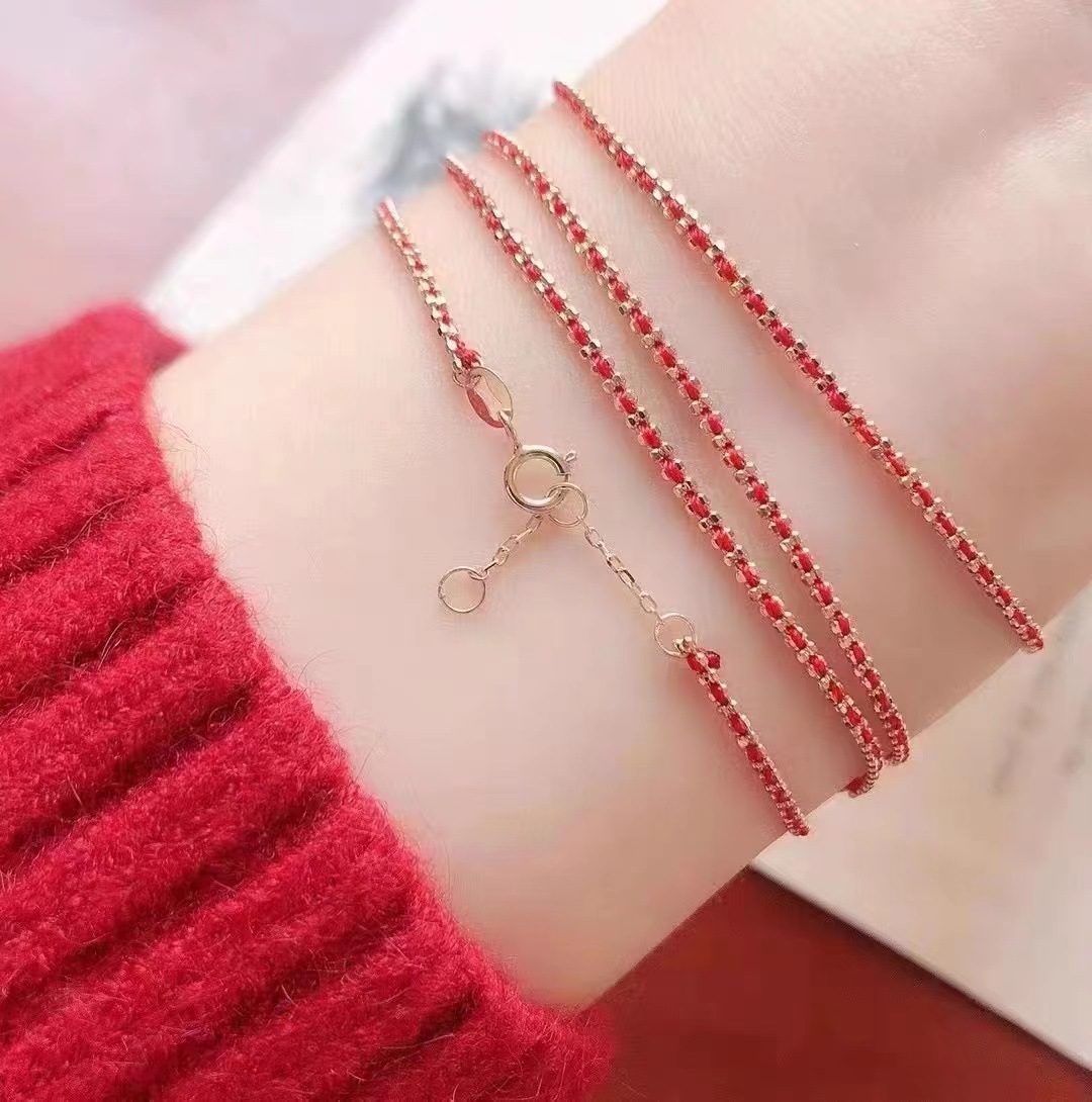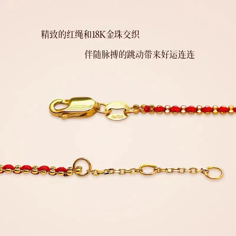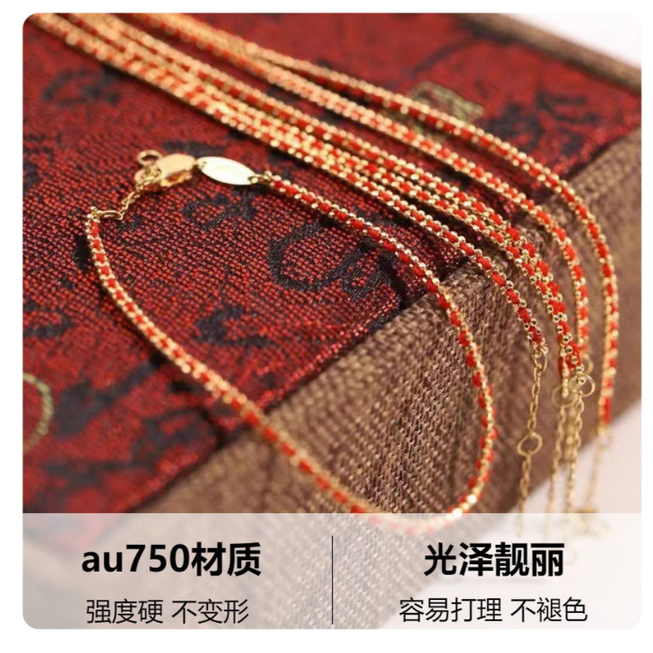 18-каратный золотой браслет из красной веревки Au750 подлинные товары золото французская красная веревка ниша простая Сделай Сам тканая Регулируемая Ручная Веревка
