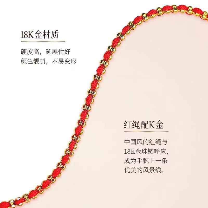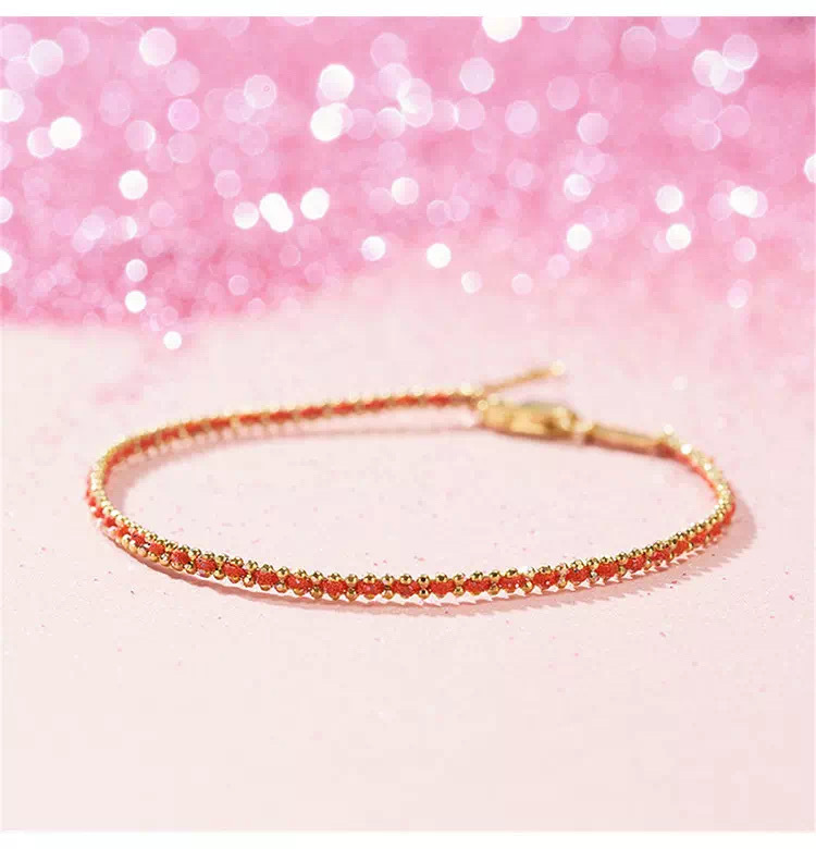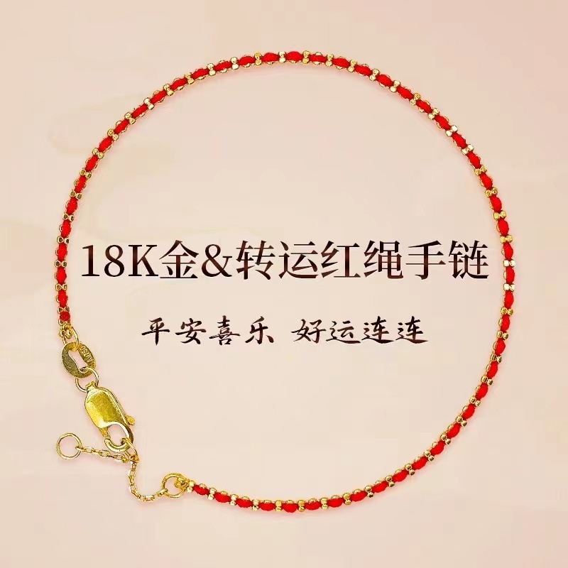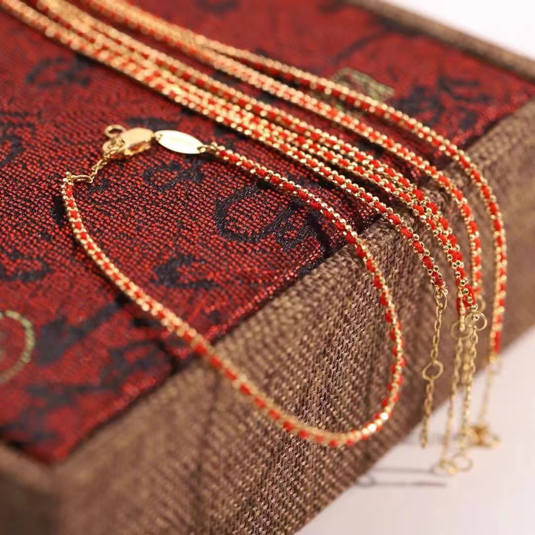 18-каратный золотой браслет из красной веревки Au750 подлинные товары золото французская красная веревка ниша простая Сделай Сам тканая Регулируемая Ручная Веревка