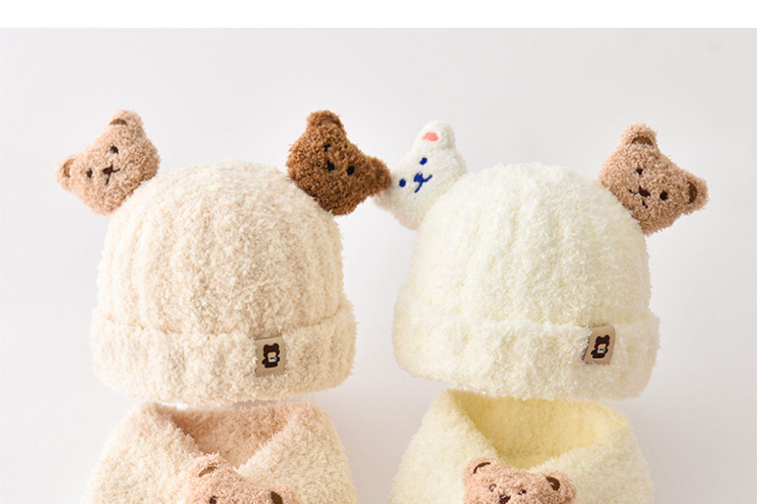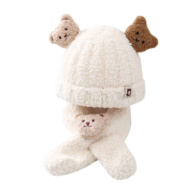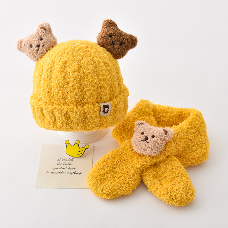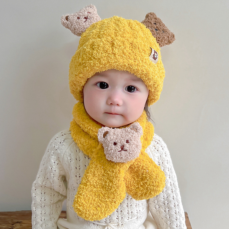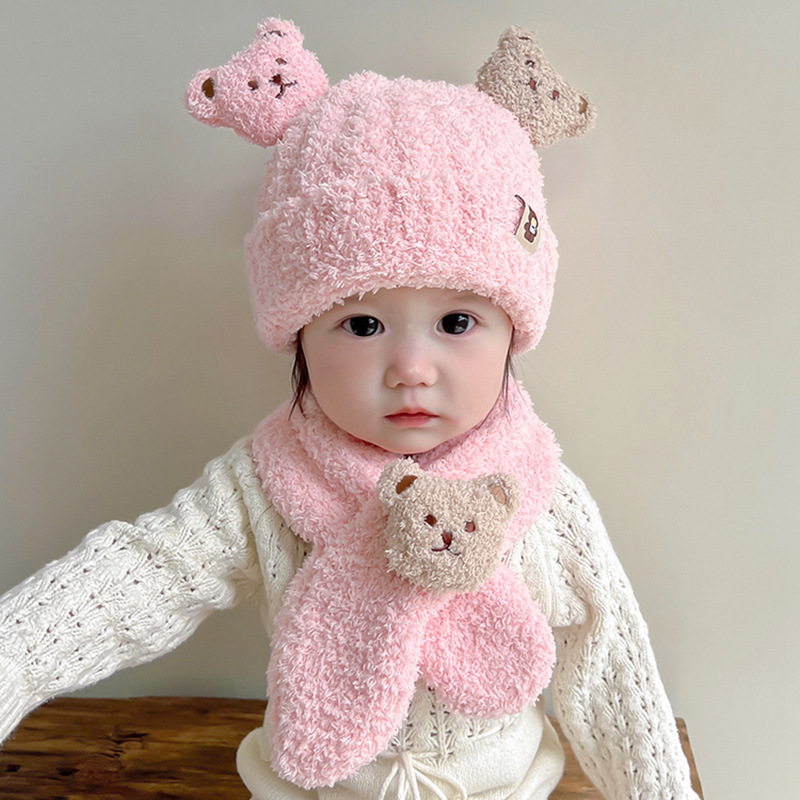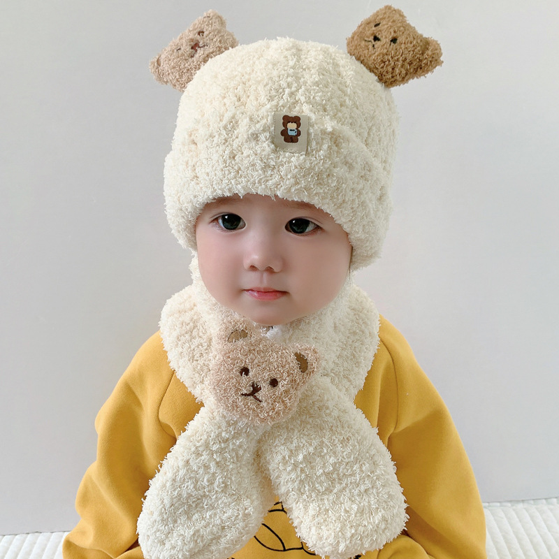 Детская зимняя шапка, милый шарф, комплект из двух предметов, утолщенный теплый уличный ветрозащитный для мальчиков и девочек, супер милый модный