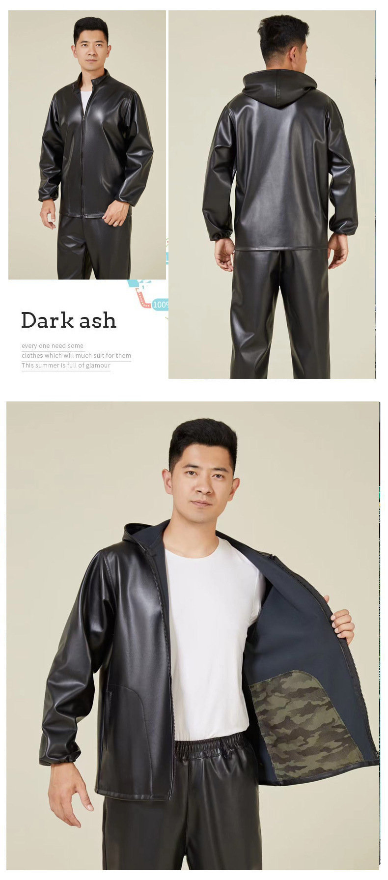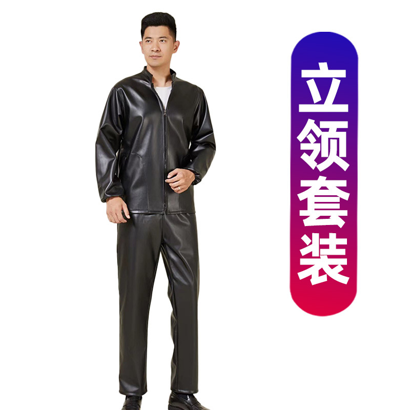Кожаный мужской одинарный кожаный костюм с брюками, мужская Тонкая маслостойкая Водонепроницаемая рабочая одежда, охрана труда
