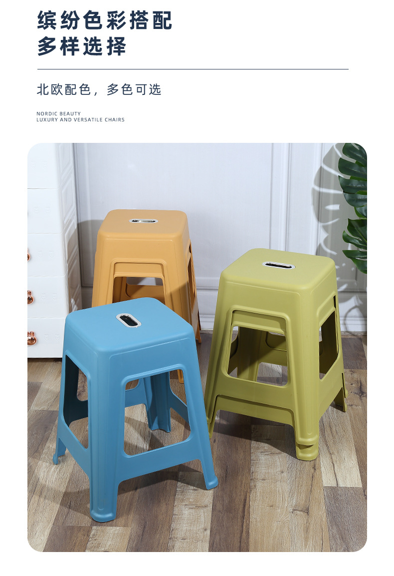 Утолщенный скандинавский пластиковый табурет бытовой взрослый приготовленный клеевой стул гостиная простой квадратный табурет пластиковый табурет высокий табурет оптом