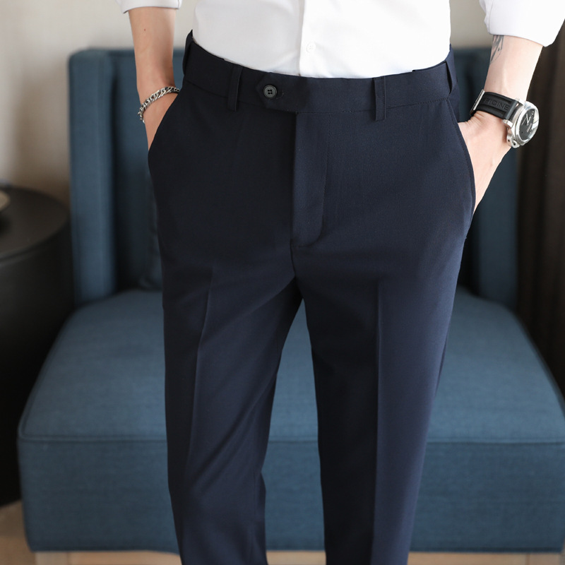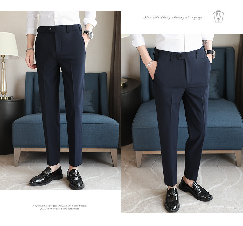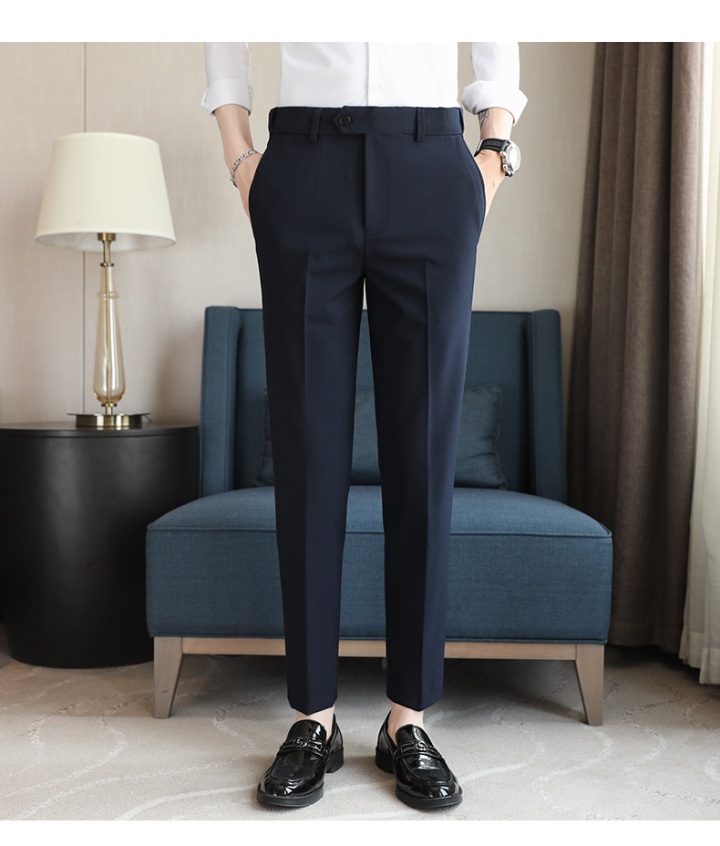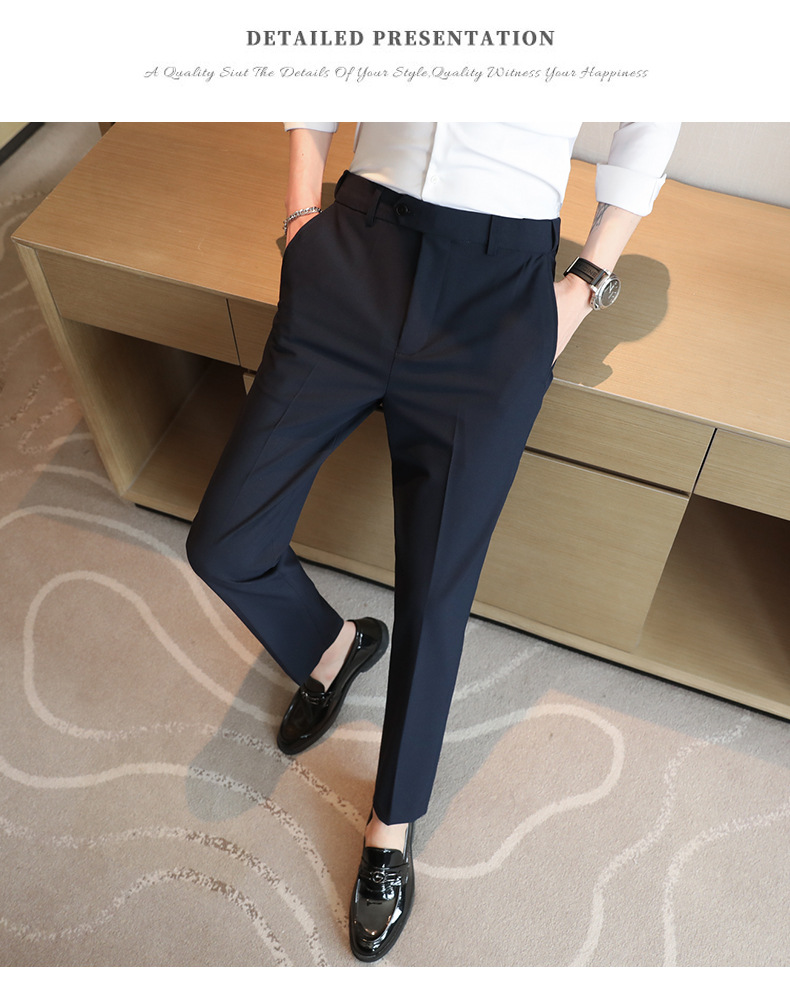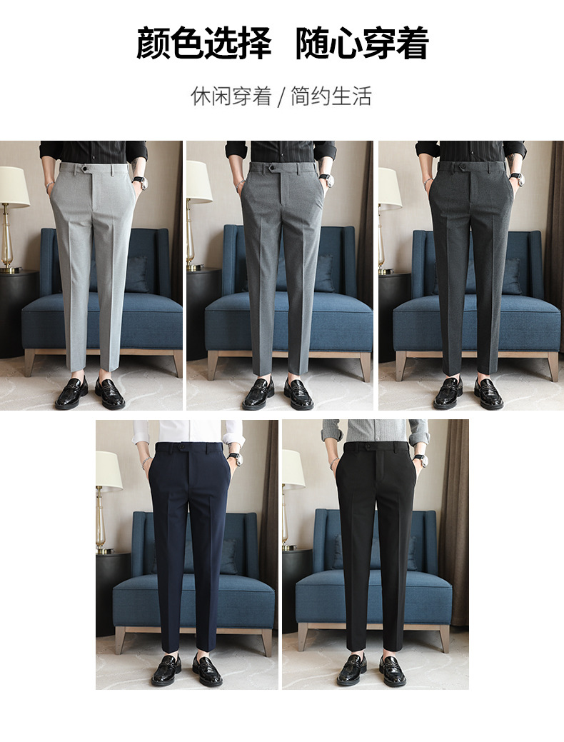 Самые продаваемые мужские костюмные брюки Douyin с экономичной резинкой на талии, узкие прямые повседневные брюки в корейском стиле