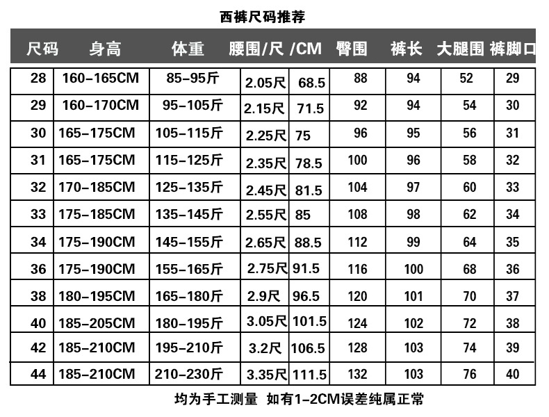 28; 29; 30; 31; 32; 33; 34; 36; 38; 40; 42; 44