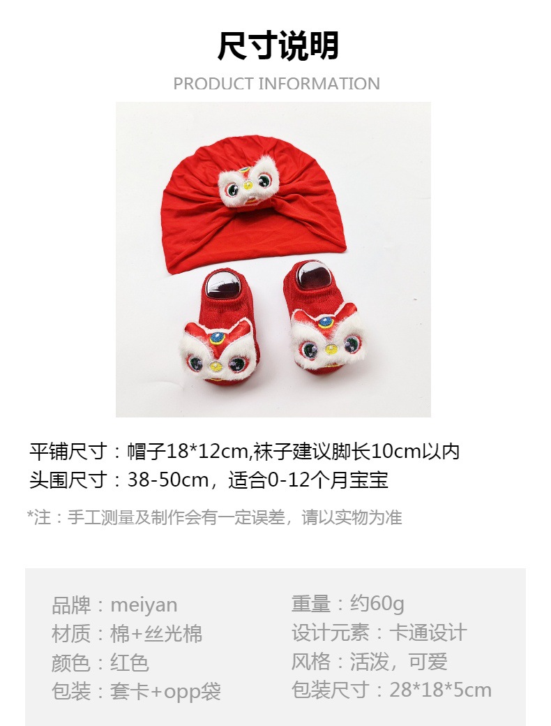 Праздничная шапка для танцев с красным львом, Детские аксессуары для волос, пуловер, кепка, костюм, нескользящие носки с кроликом, комбинированный новогодний костюм
