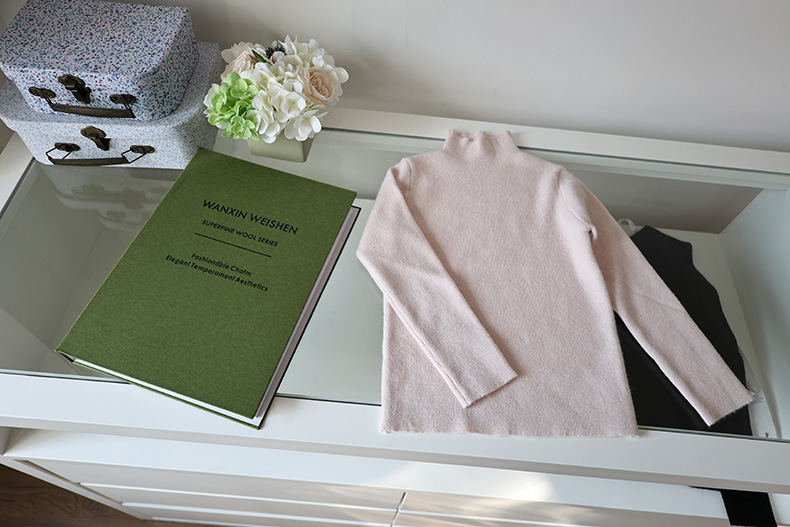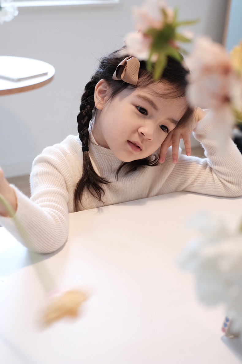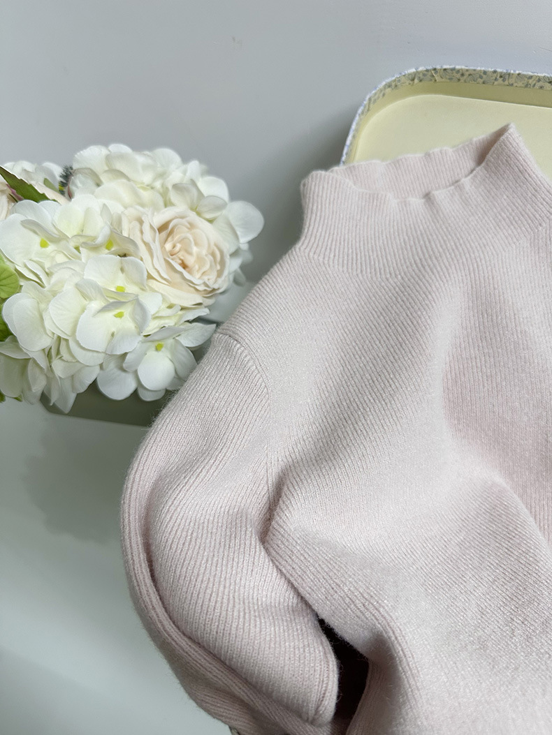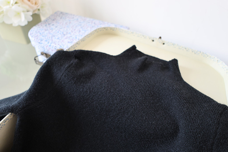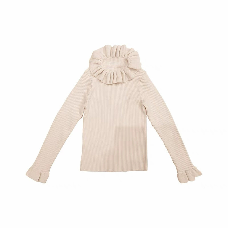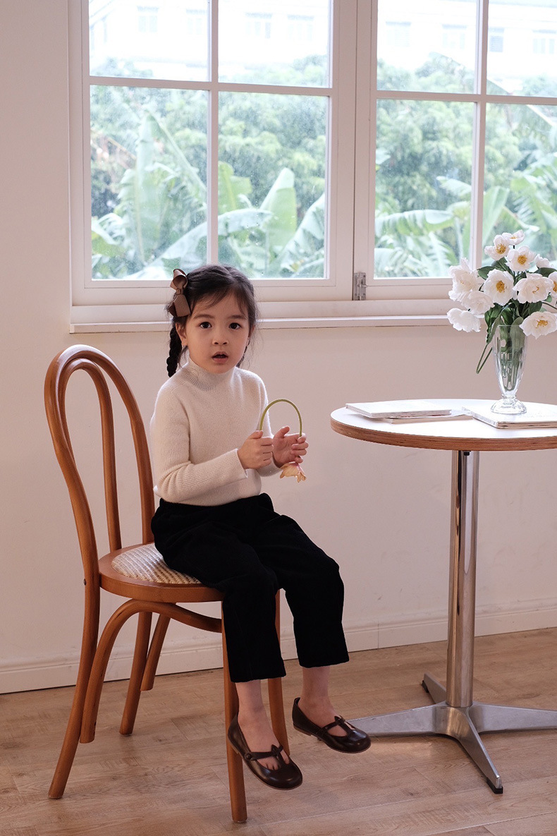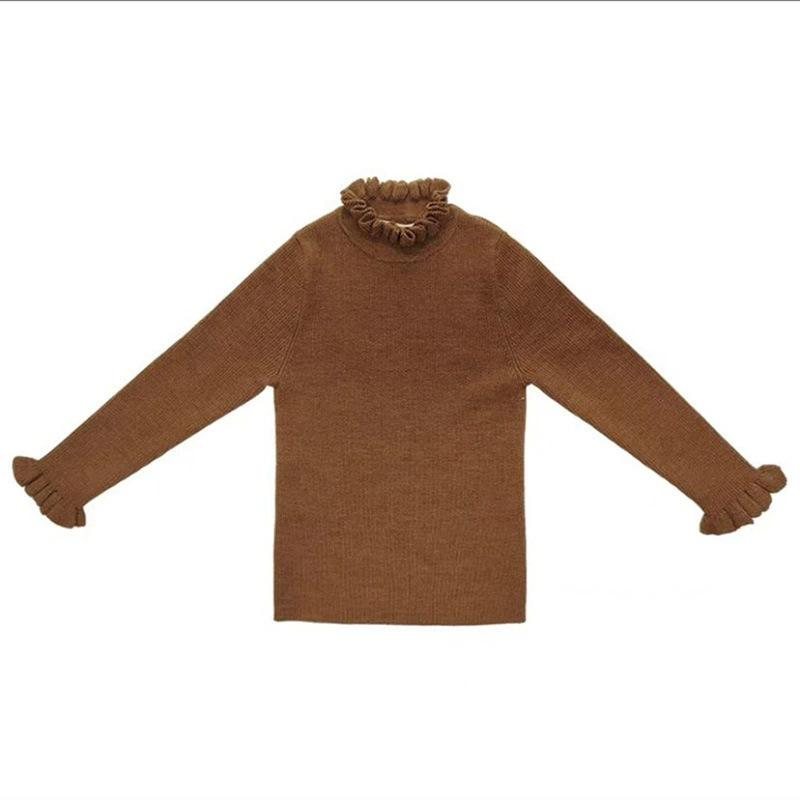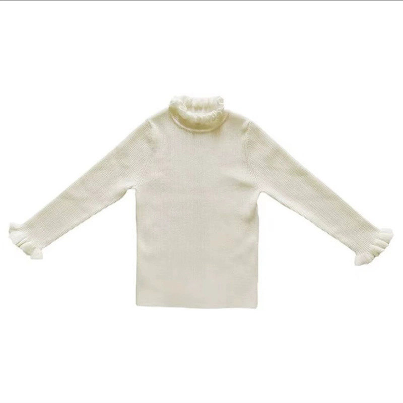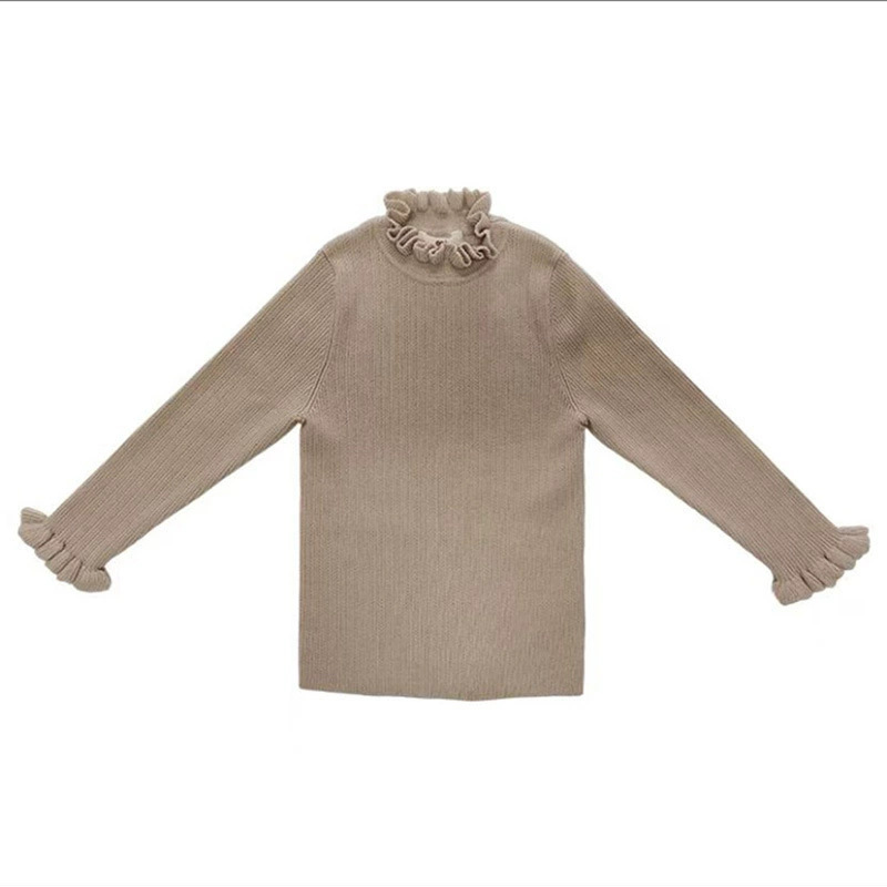 Пуловер со средним воротником и кашемировой текстурой Детский вязаный свитер в тонкую яму для девочек Мягкий свитер Осенне-зимняя Базовая рубашка с длинным рукавом