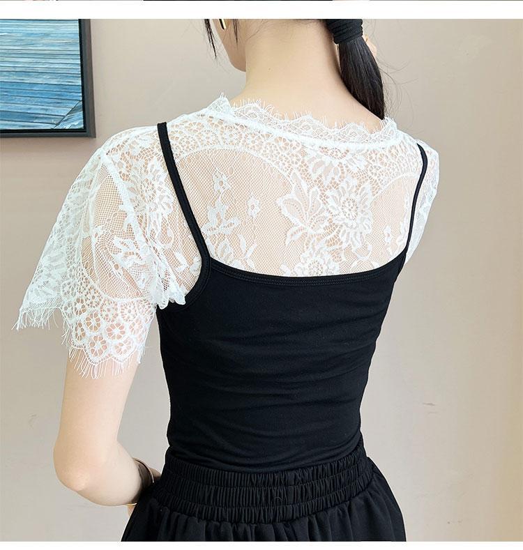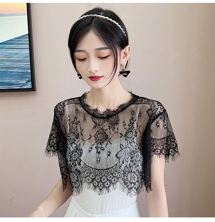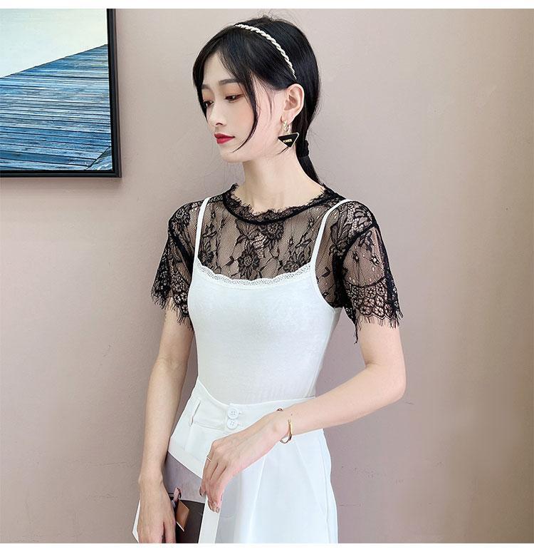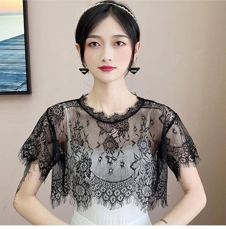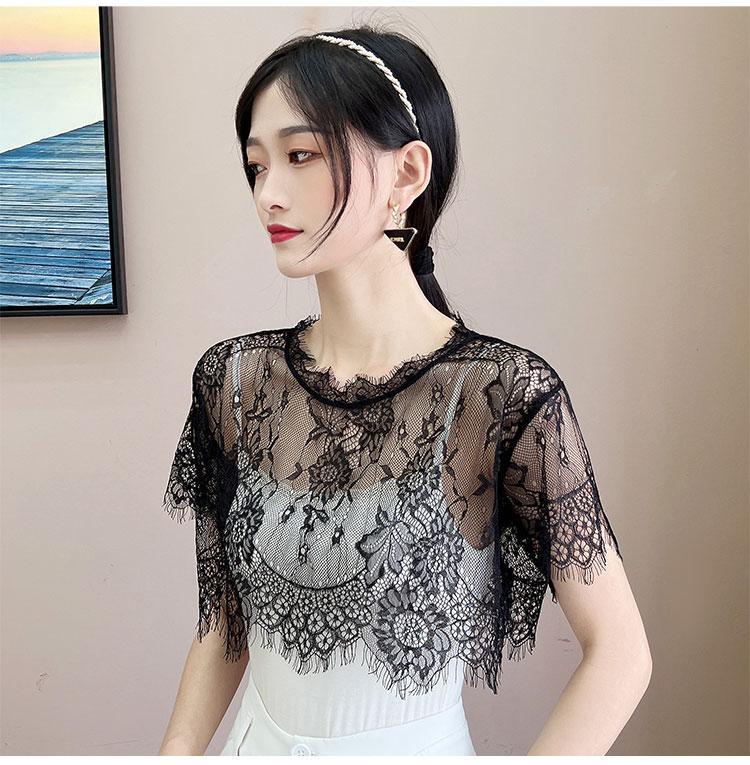 Детский Универсальный искусственный воротник с накладным воротником, многофункциональная Базовая рубашка с внешним ремнем, юбка, летняя новая кружевная сетчатая блузка