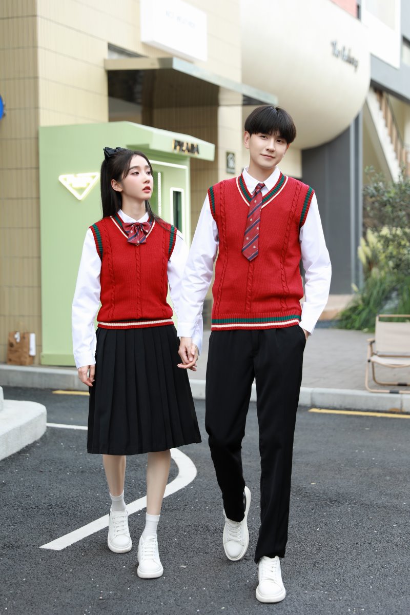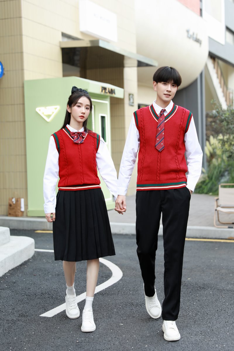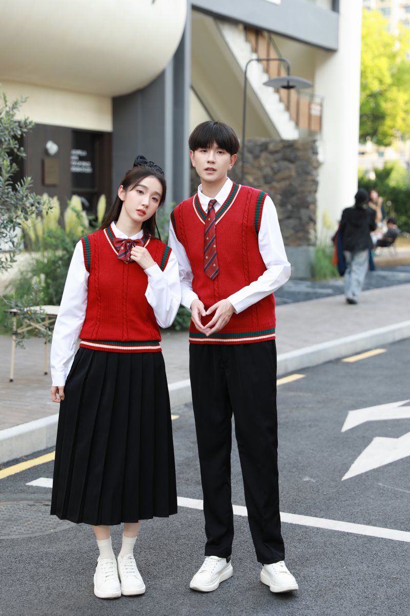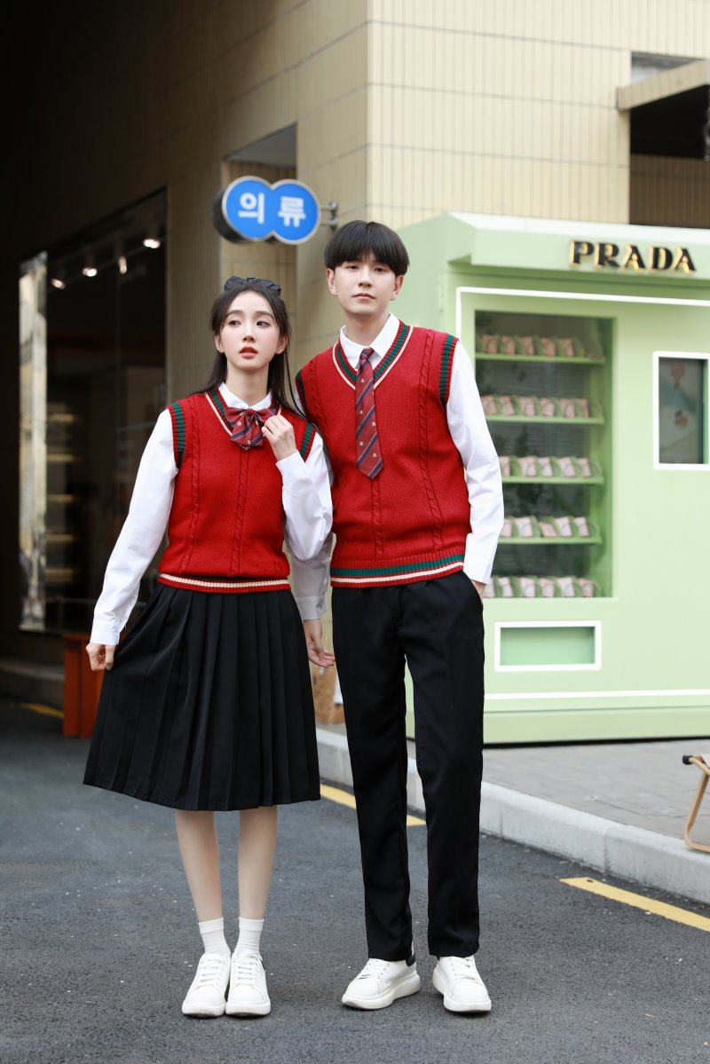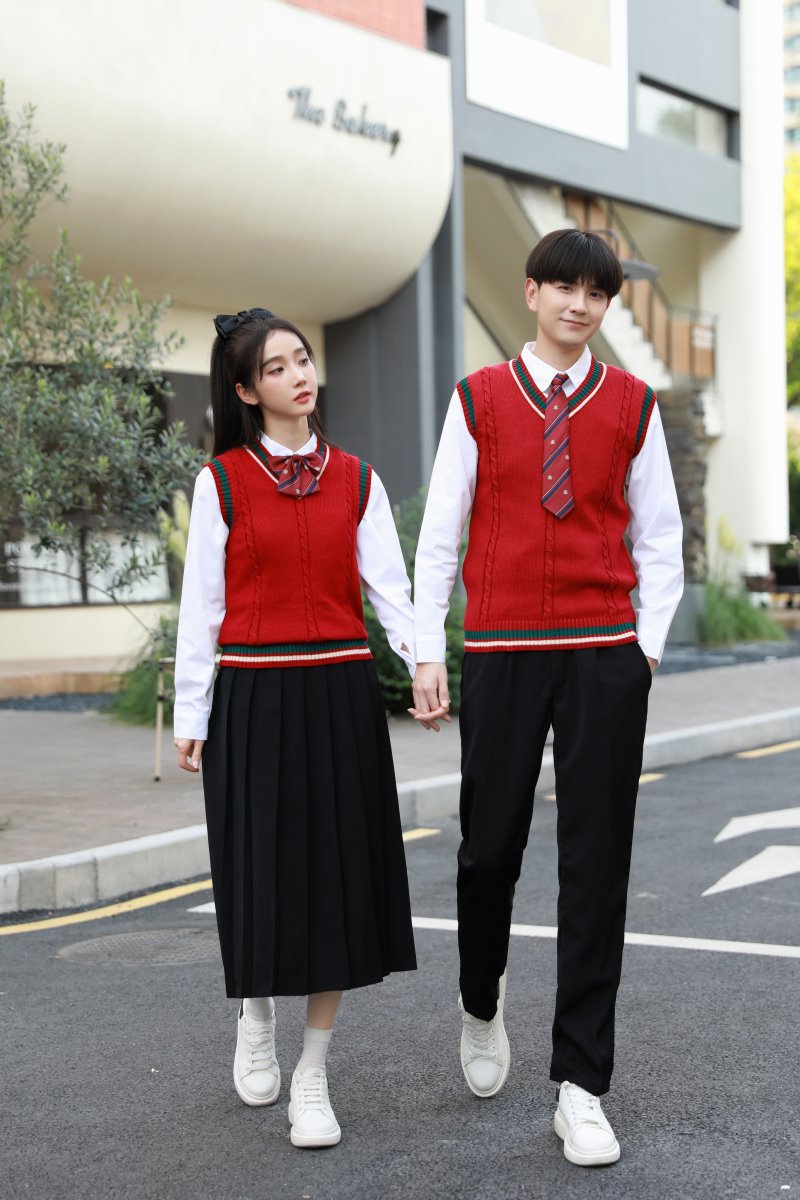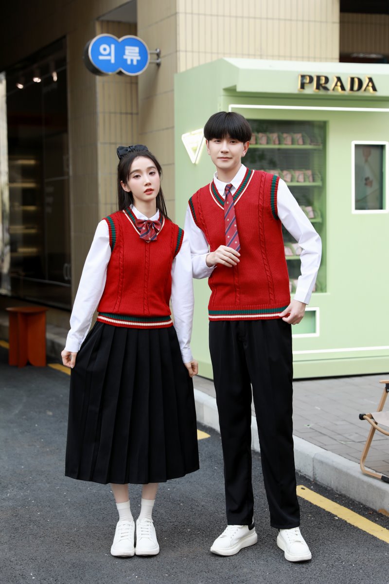 Женский белый длинный рукав + черная юбка + красный жилет + винно-красный галстук-бабочка; Женский белый длинный рукав + черная длинная юбка + красный жилет + винно-красный галстук-бабочка; Женский белый длинный рукав + черная юбка + темно-синий жилет + темно-синий галстук-бабочка; Женский белый длинный рукав + черное платье + темно-синий жилет + темно-синий галстук-бабочка; Мужской белый длинный рукав + черные брюки + красный жилет + винный галстук; Мужской белый длинный рукав + черные брюки + темно-синий жилет + темно-синий галстук; Красный жилет (мужчины и женщины); Темно-синий жилет (мужчины и женщины с)