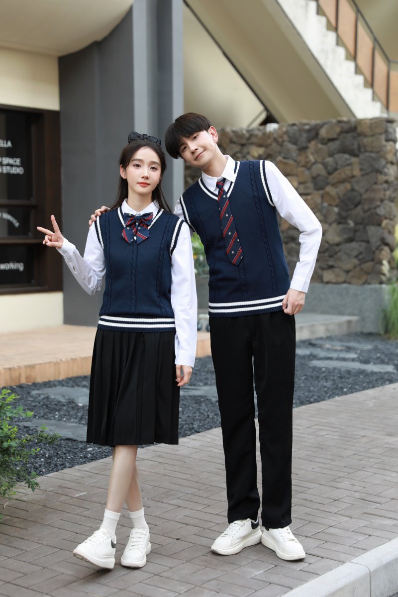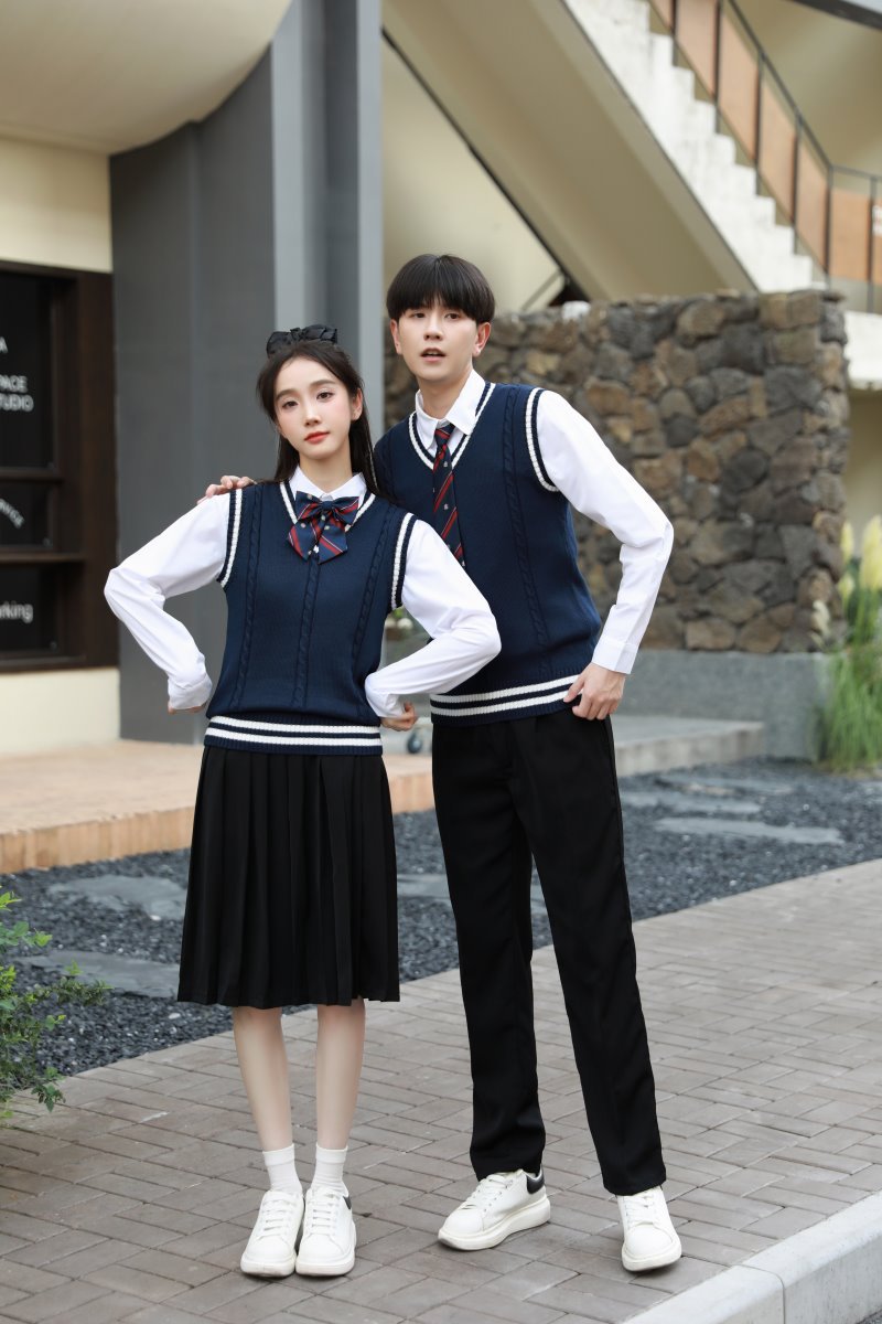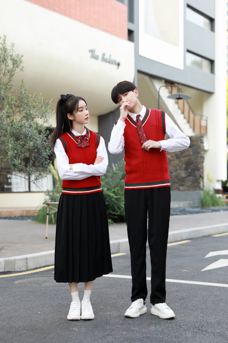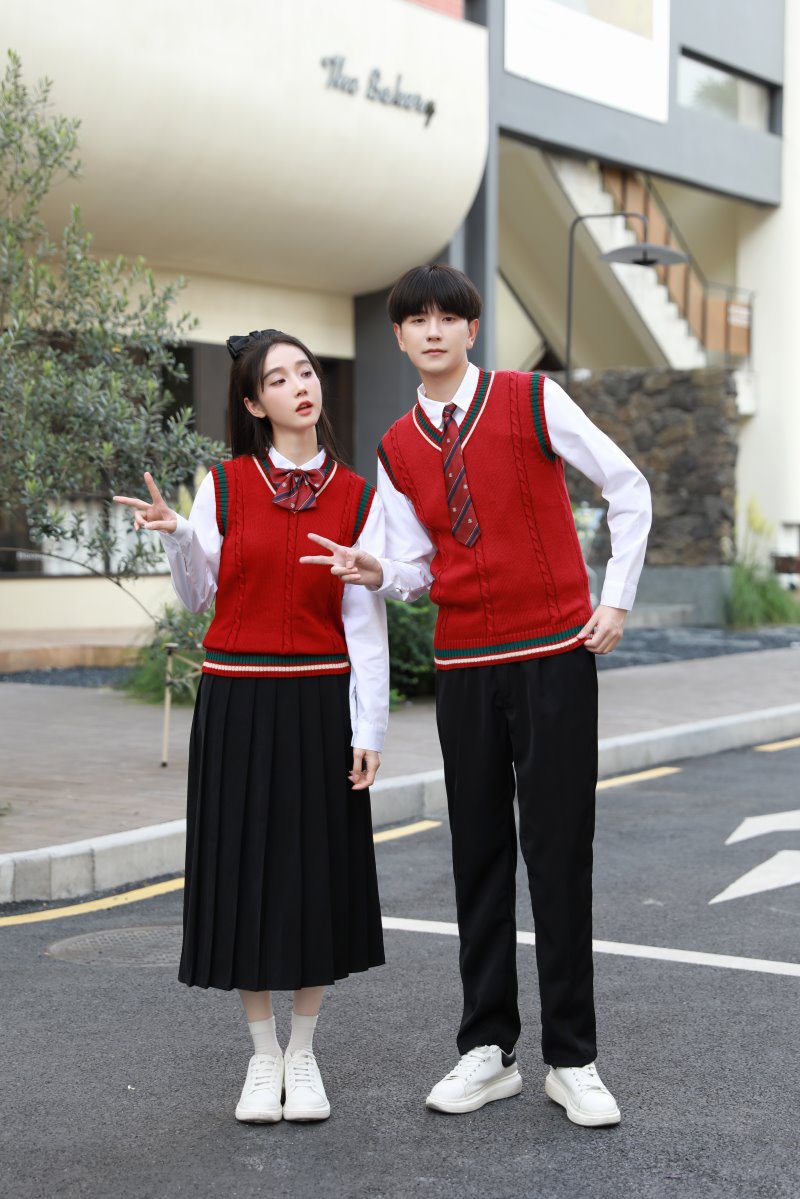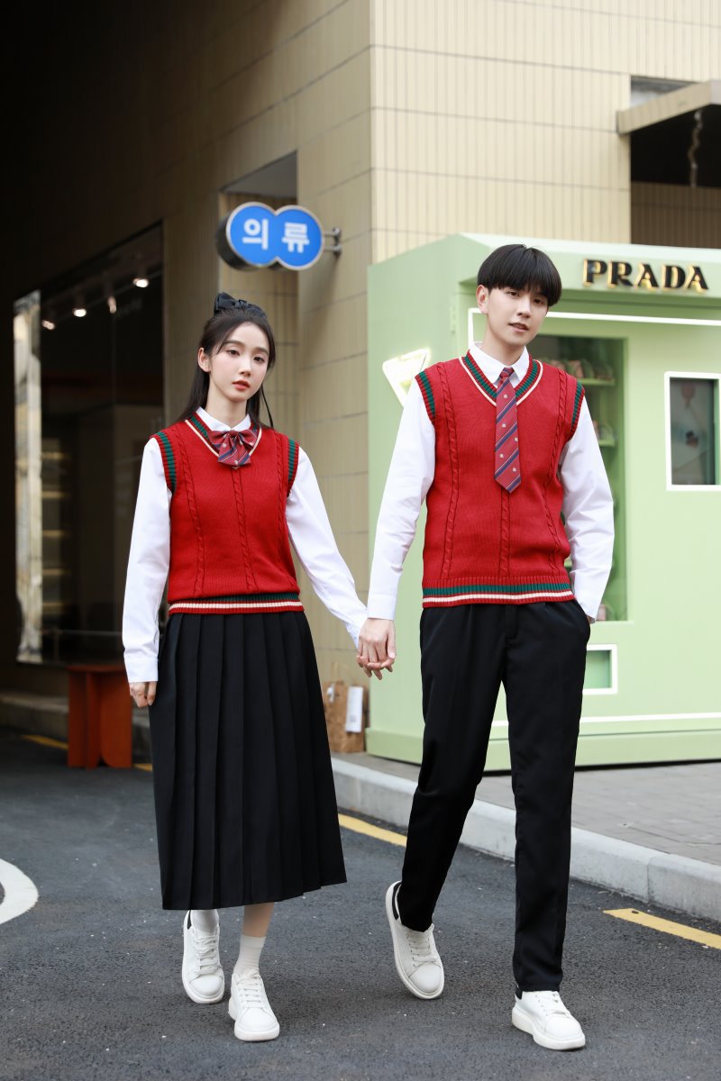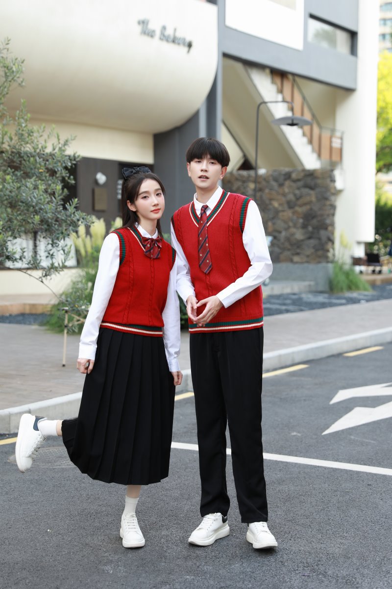 Женский белый длинный рукав + черная юбка + красный жилет + винно-красный галстук-бабочка; Женский белый длинный рукав + черная длинная юбка + красный жилет + винно-красный галстук-бабочка; Женский белый длинный рукав + черная юбка + темно-синий жилет + темно-синий галстук-бабочка; Женский белый длинный рукав + черное платье + темно-синий жилет + темно-синий галстук-бабочка; Мужской белый длинный рукав + черные брюки + красный жилет + винный галстук; Мужской белый длинный рукав + черные брюки + темно-синий жилет + темно-синий галстук; Красный жилет (мужчины и женщины); Темно-синий жилет (мужчины и женщины с)