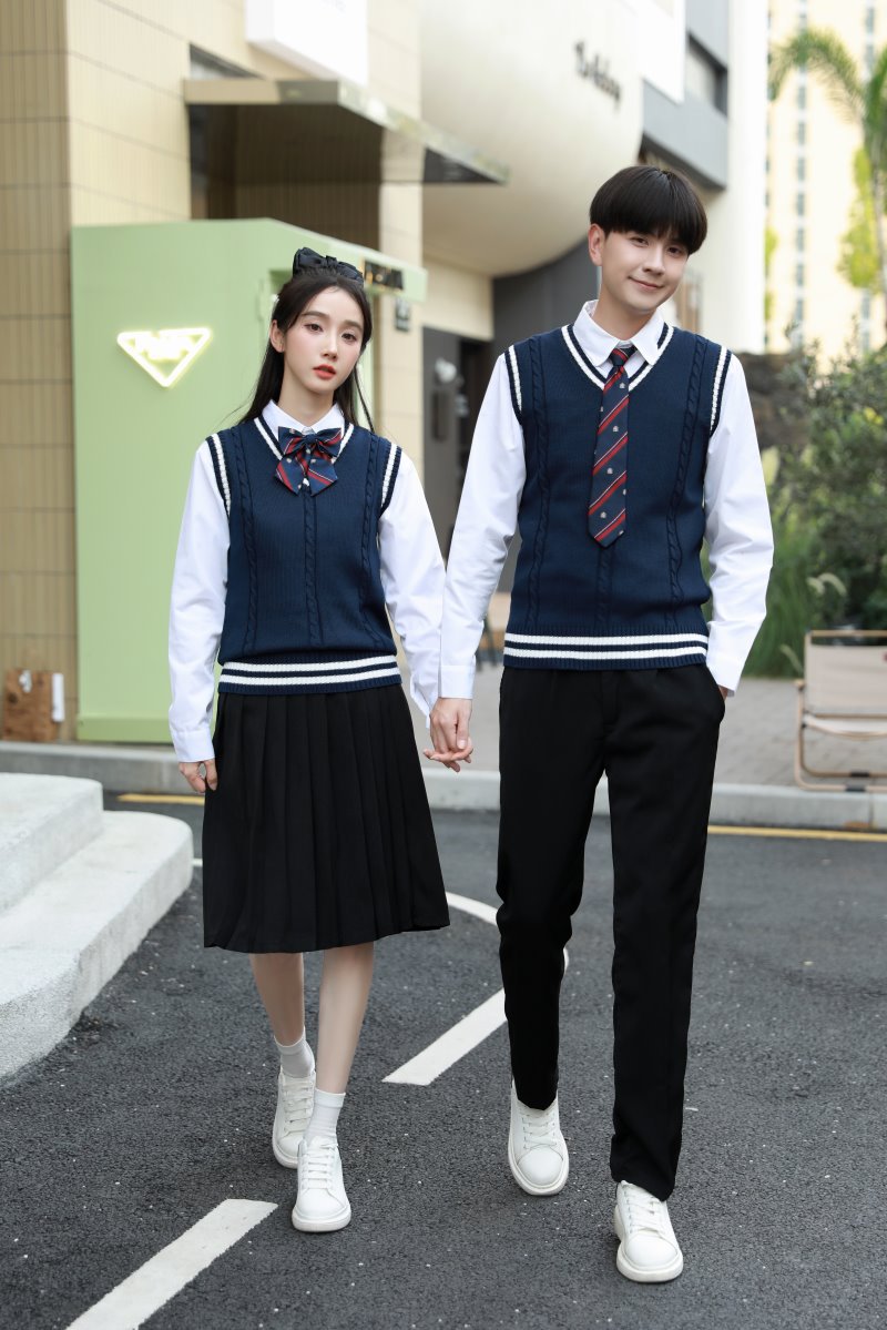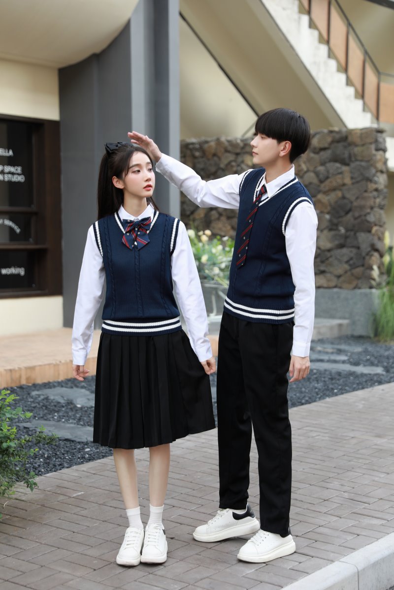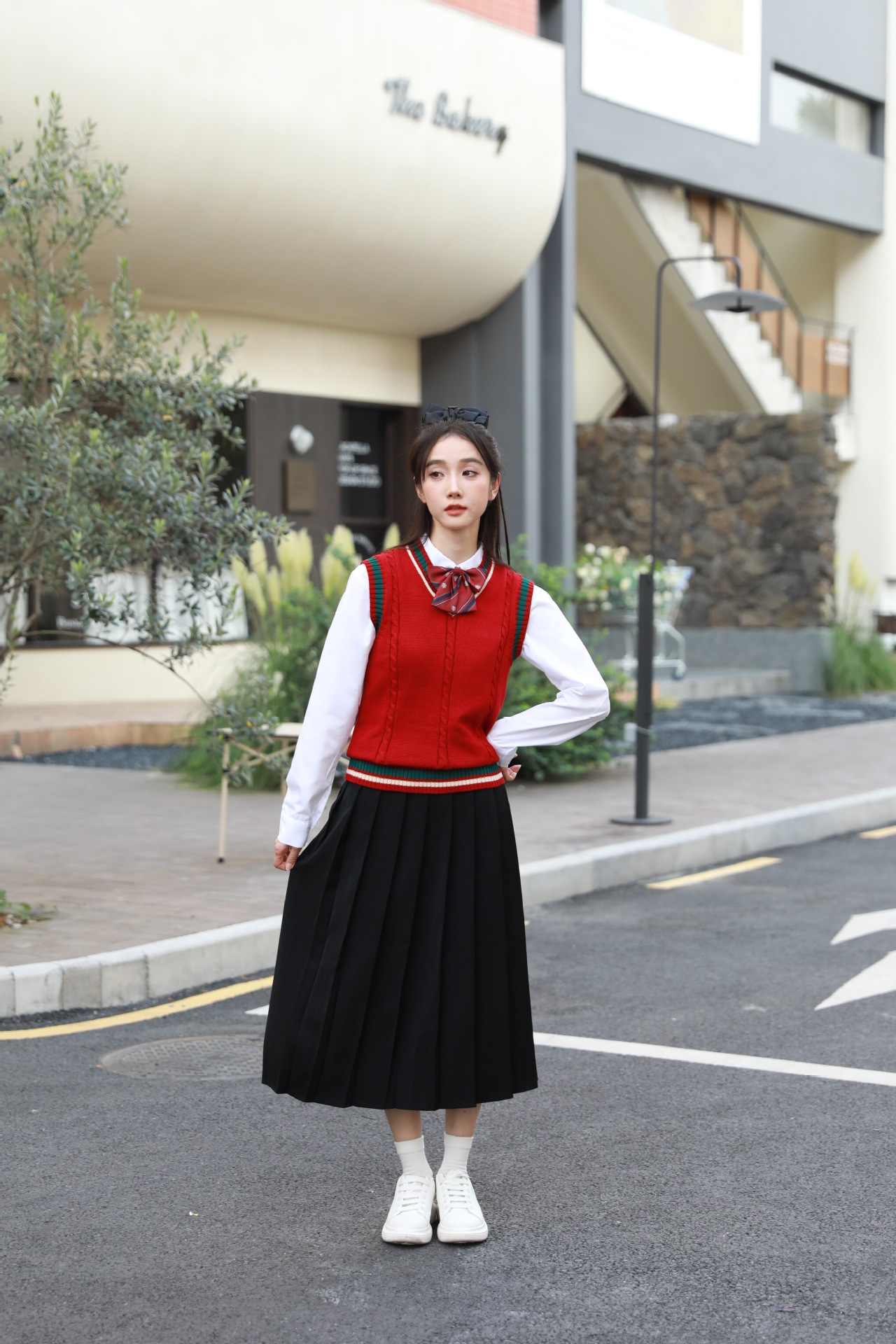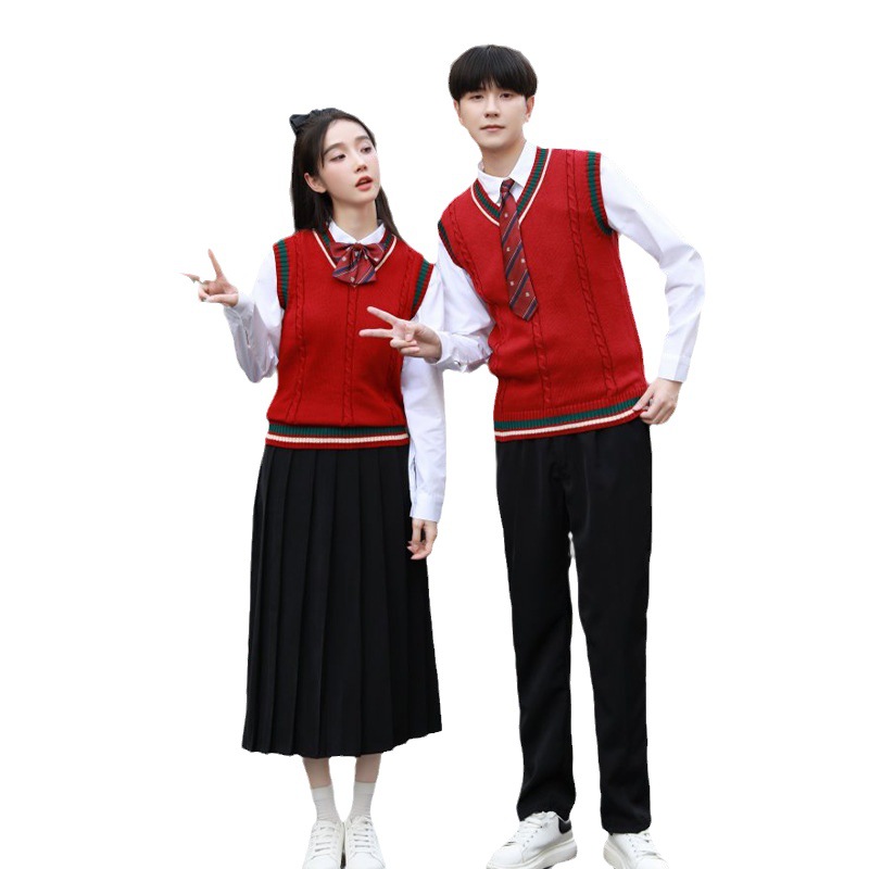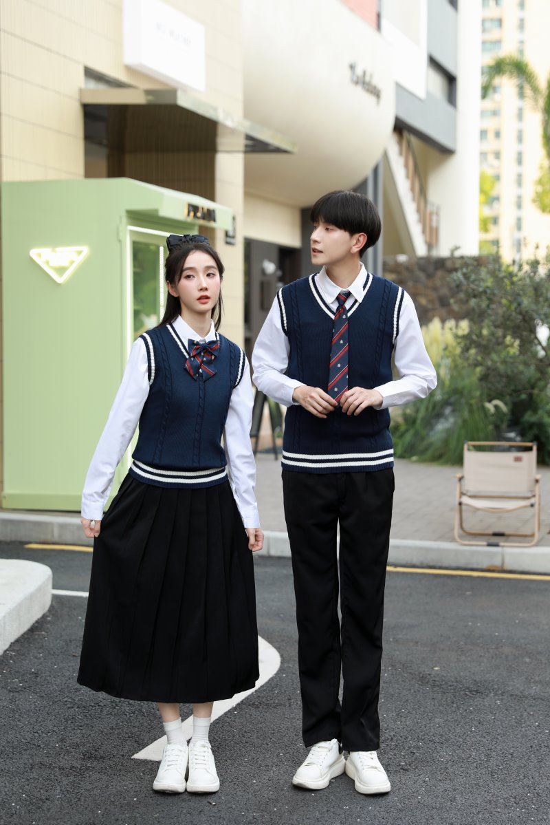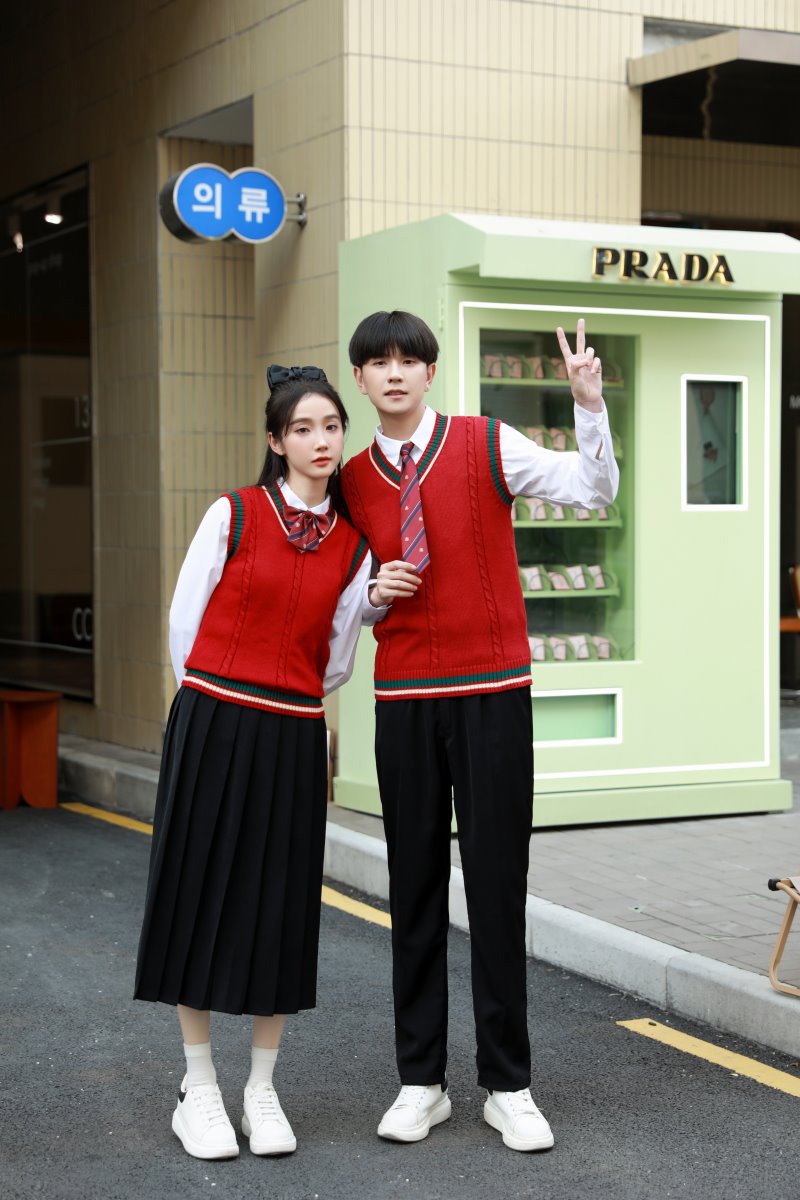 Женский белый длинный рукав + черная юбка + красный жилет + винно-красный галстук-бабочка; Женский белый длинный рукав + черная длинная юбка + красный жилет + винно-красный галстук-бабочка; Женский белый длинный рукав + черная юбка + темно-синий жилет + темно-синий галстук-бабочка; Женский белый длинный рукав + черное платье + темно-синий жилет + темно-синий галстук-бабочка; Мужской белый длинный рукав + черные брюки + красный жилет + винный галстук; Мужской белый длинный рукав + черные брюки + темно-синий жилет + темно-синий галстук; Красный жилет (мужчины и женщины); Темно-синий жилет (мужчины и женщины с)