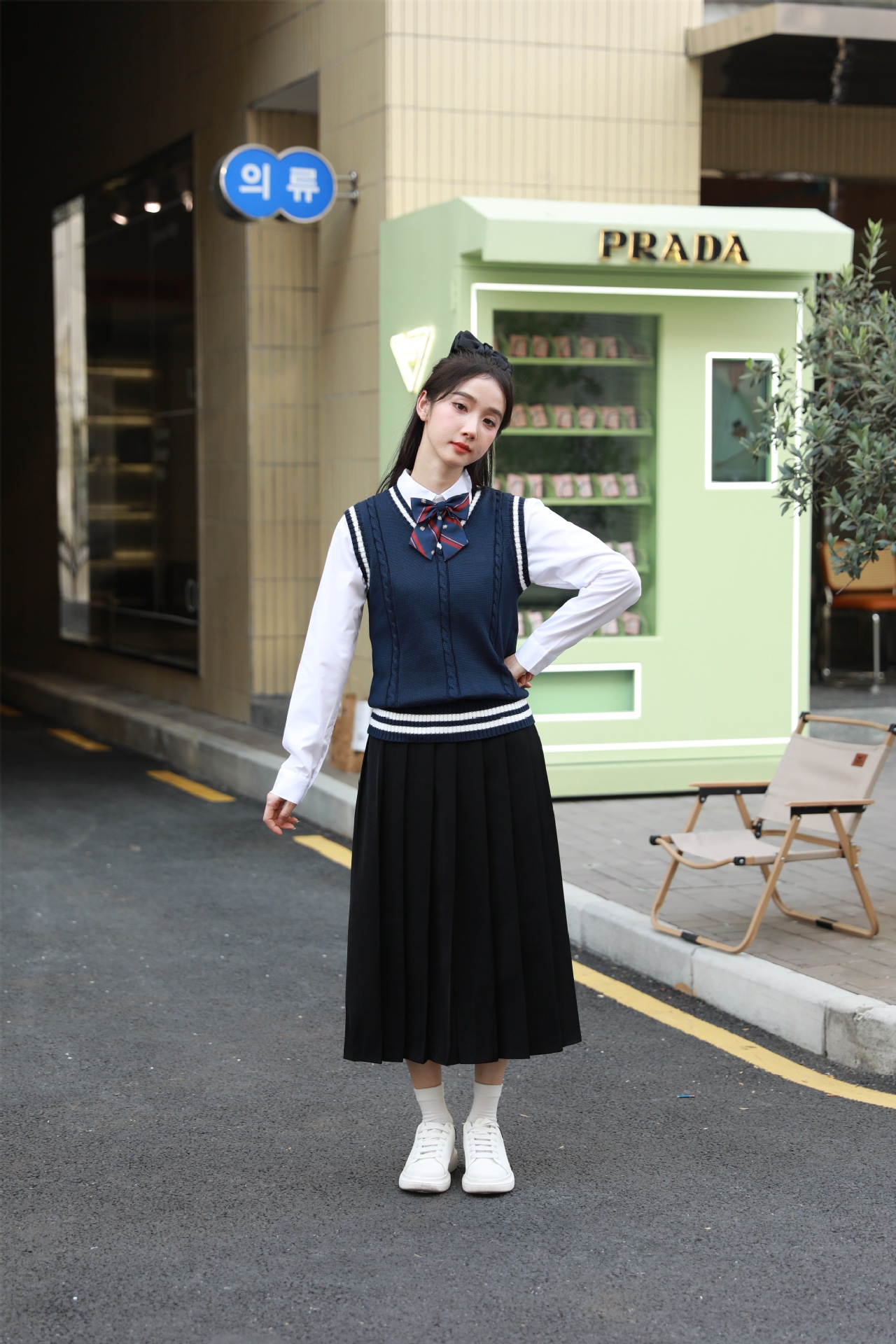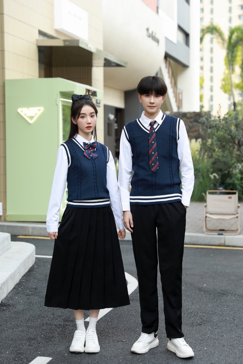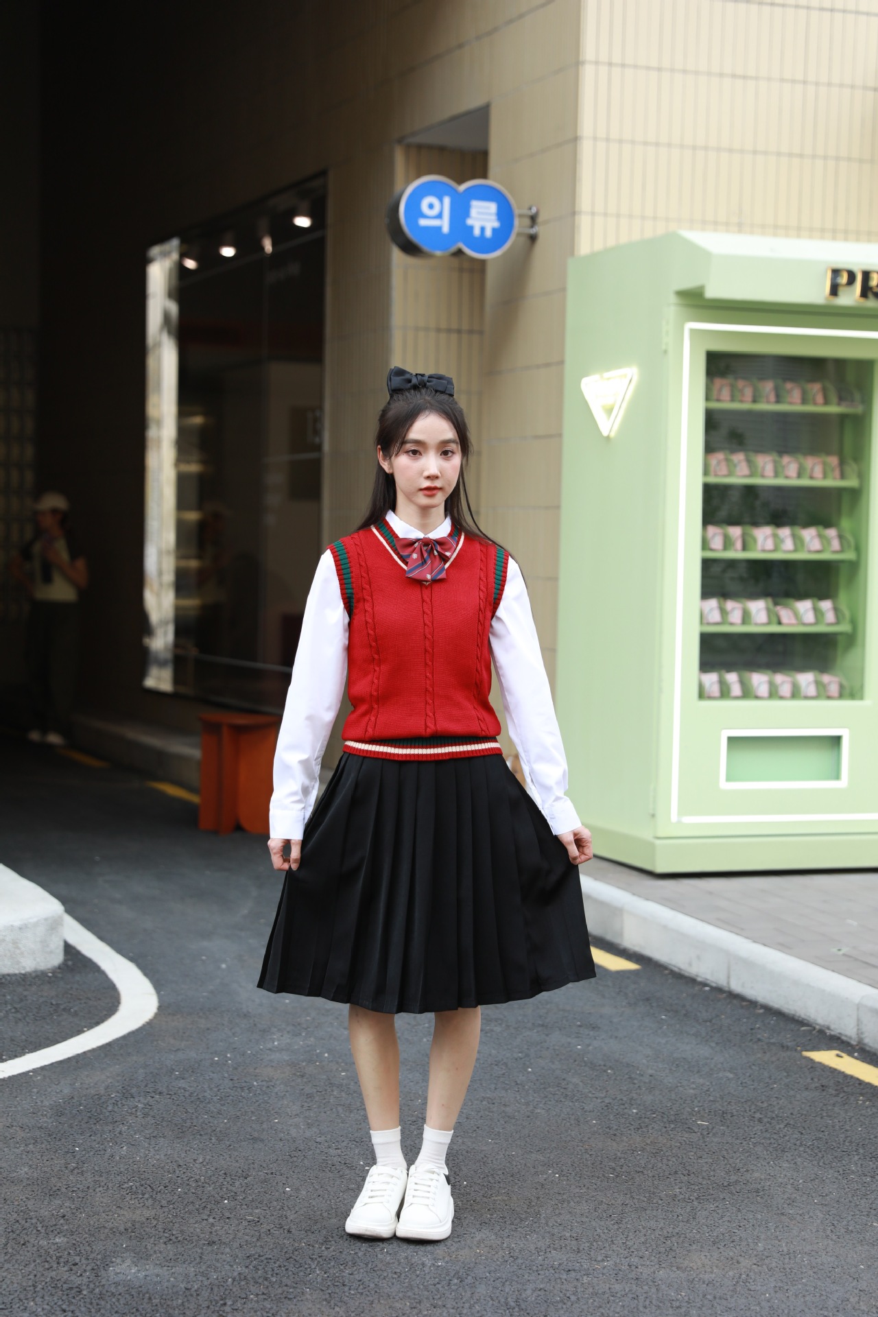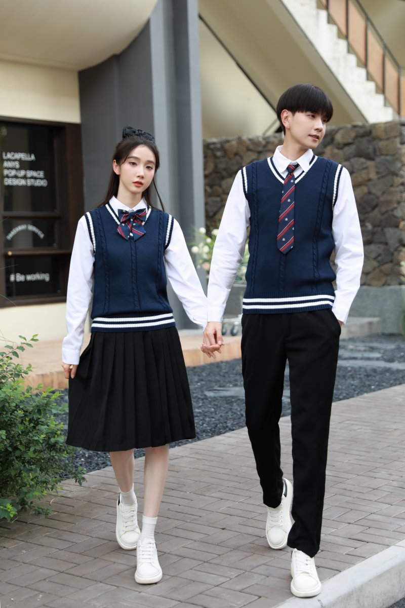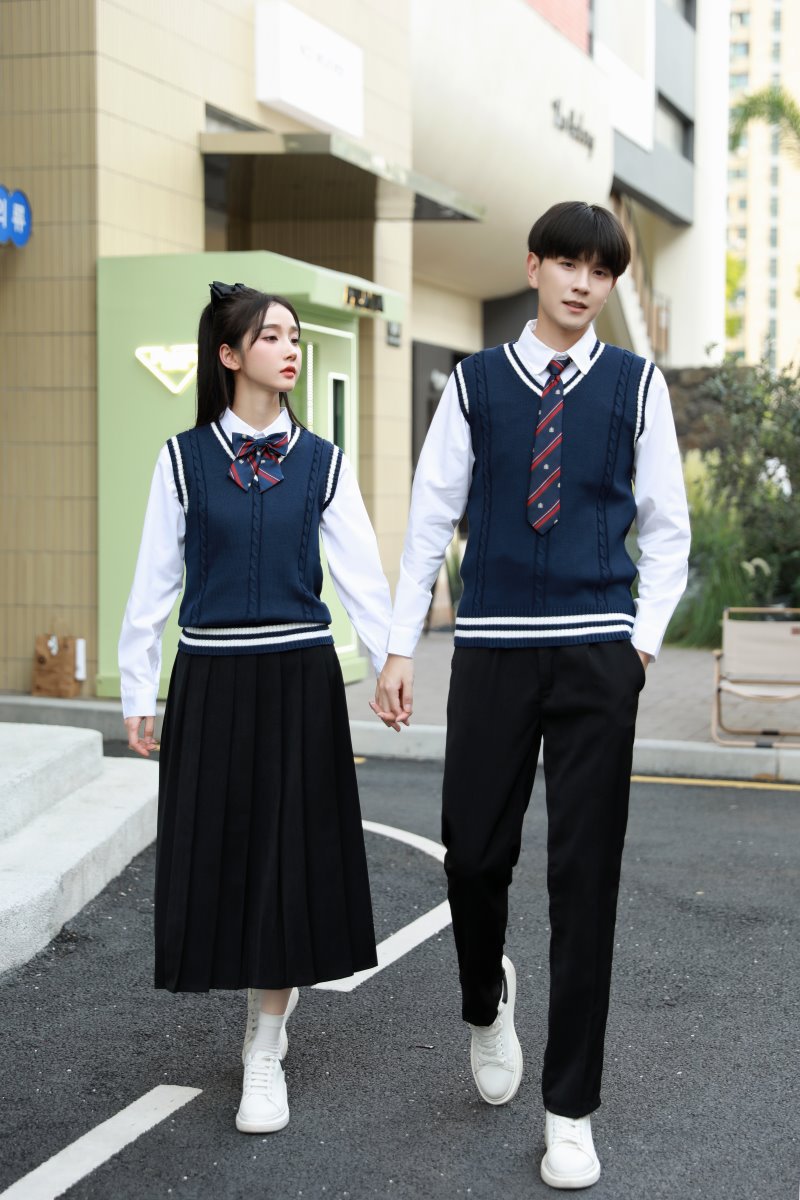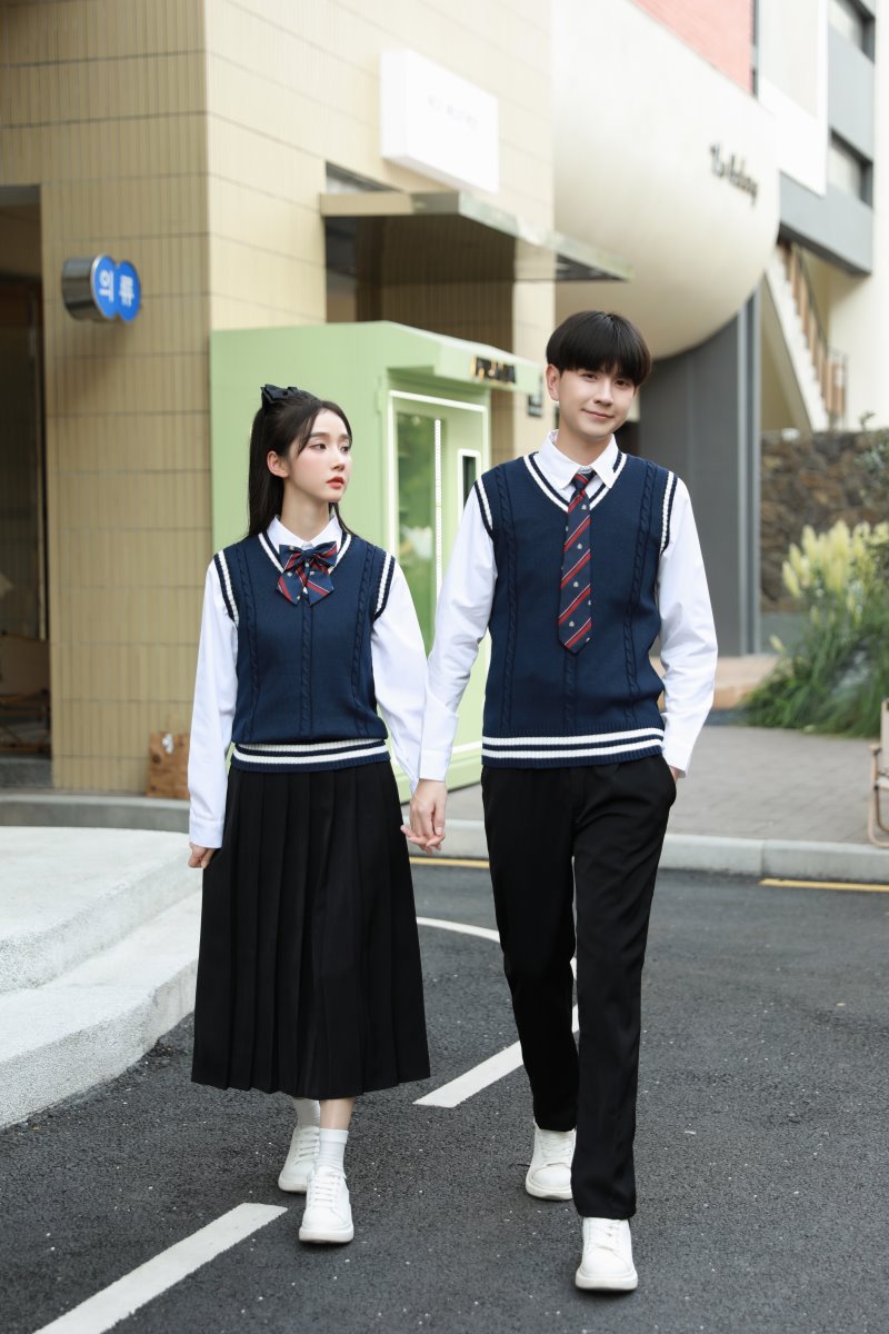 Женский белый длинный рукав + черная юбка + красный жилет + винно-красный галстук-бабочка; Женский белый длинный рукав + черная длинная юбка + красный жилет + винно-красный галстук-бабочка; Женский белый длинный рукав + черная юбка + темно-синий жилет + темно-синий галстук-бабочка; Женский белый длинный рукав + черное платье + темно-синий жилет + темно-синий галстук-бабочка; Мужской белый длинный рукав + черные брюки + красный жилет + винный галстук; Мужской белый длинный рукав + черные брюки + темно-синий жилет + темно-синий галстук; Красный жилет (мужчины и женщины); Темно-синий жилет (мужчины и женщины с)