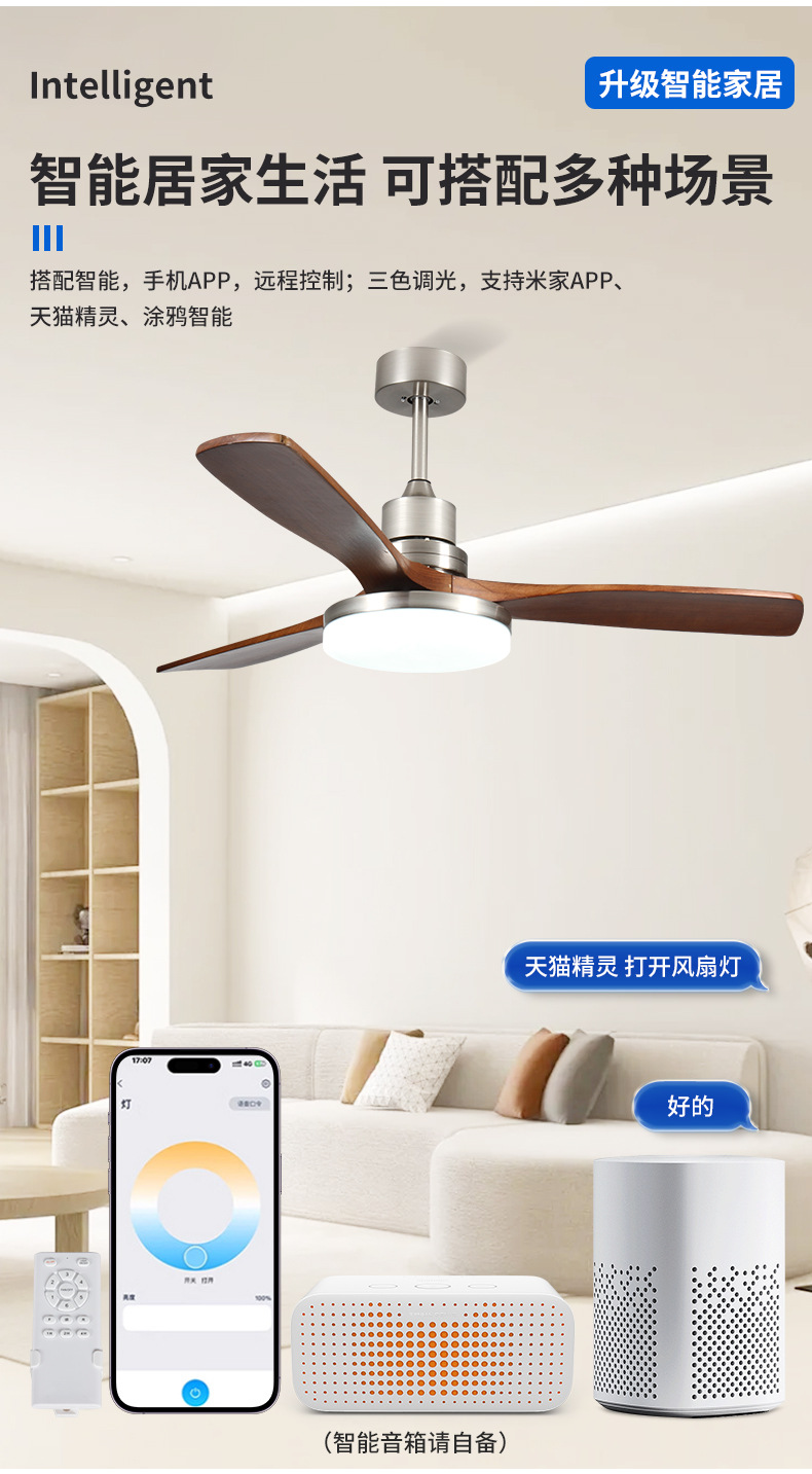 Потолочный вентилятор-светильник в средневековом стиле для гостиной, бесшумный потолочный вентилятор-светильник из массива дерева для ресторана с высокой мощностью, интеллектуальный вентилятор-светильник с дистанционным управлением и регулируемой частотой вращения