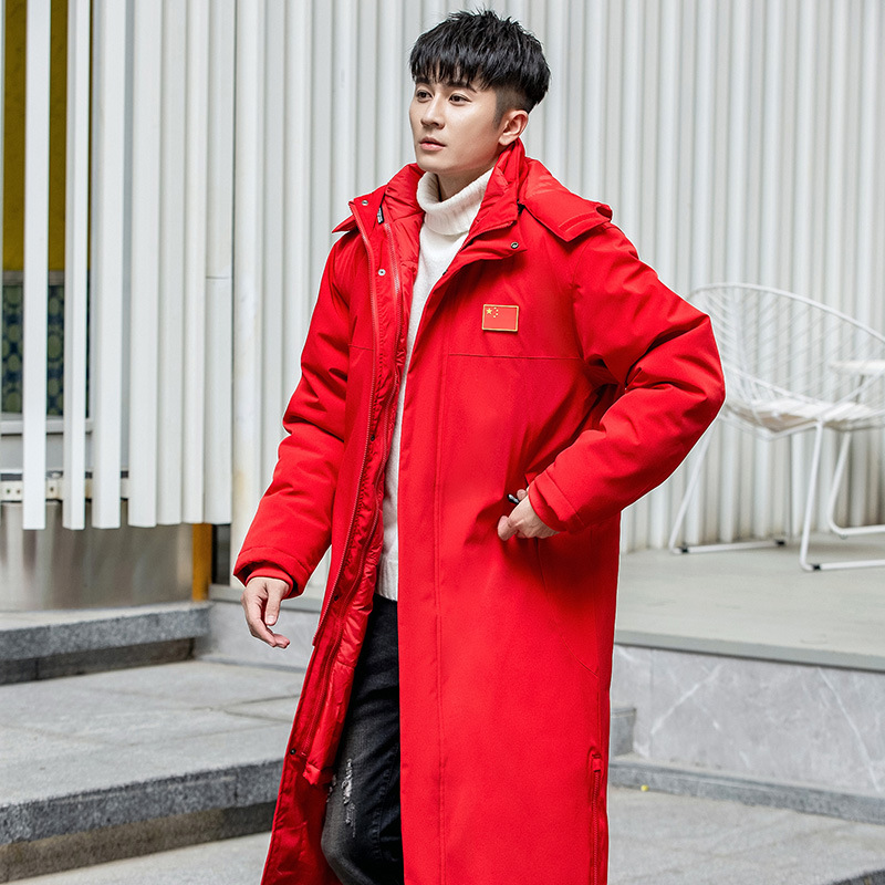 Зимнее китайское командное спортивное пальто, мужское и женское тренировочное пальто средней длины с хлопковой подкладкой, теплое пальто с хлопковой подкладкой для спортивных студентов