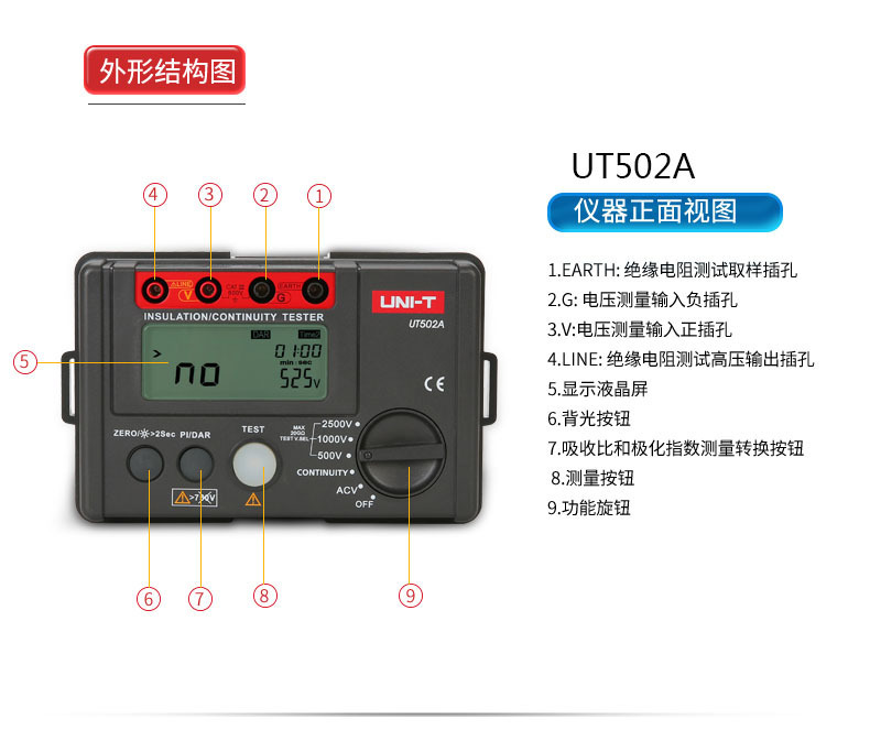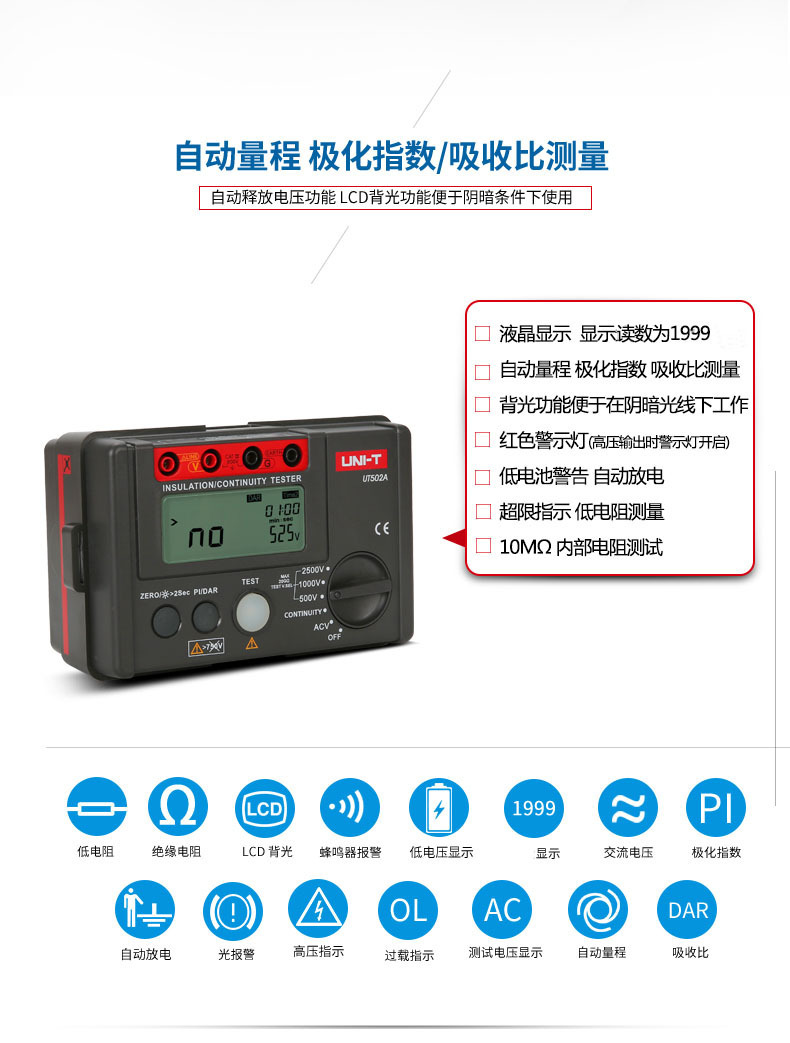 Uleid UT501A/UT502A Тестер сопротивления изоляции Электронный шейкер 500 В Цифровой мегомметр 1000 В