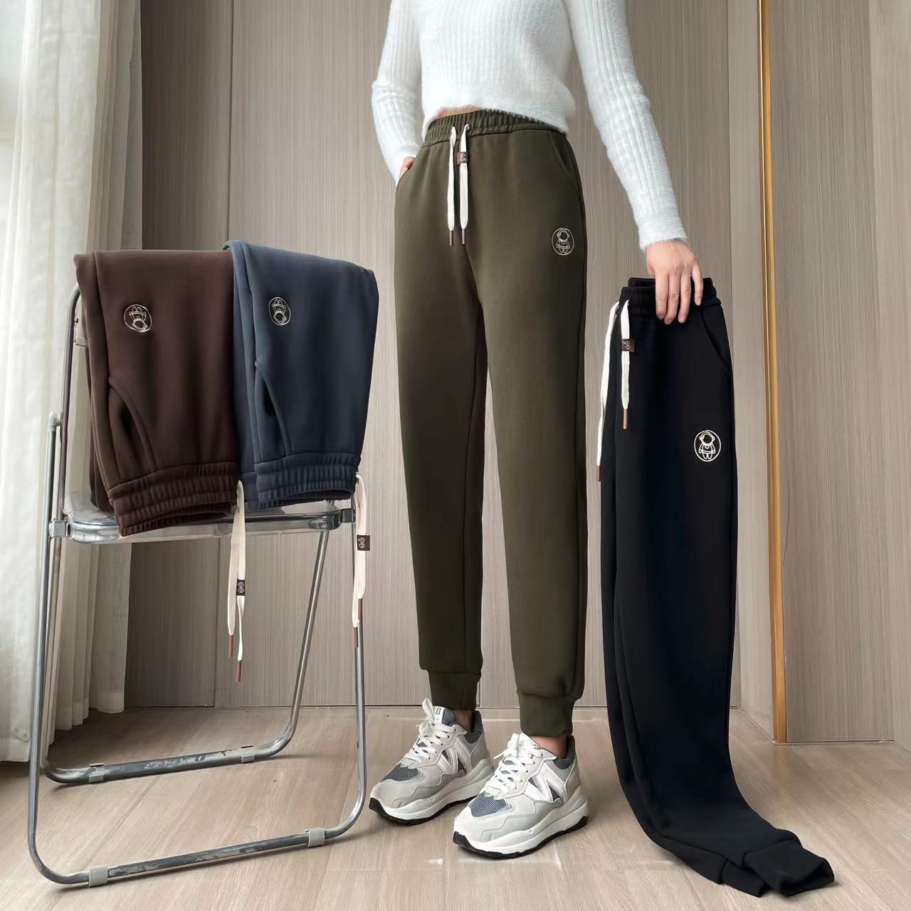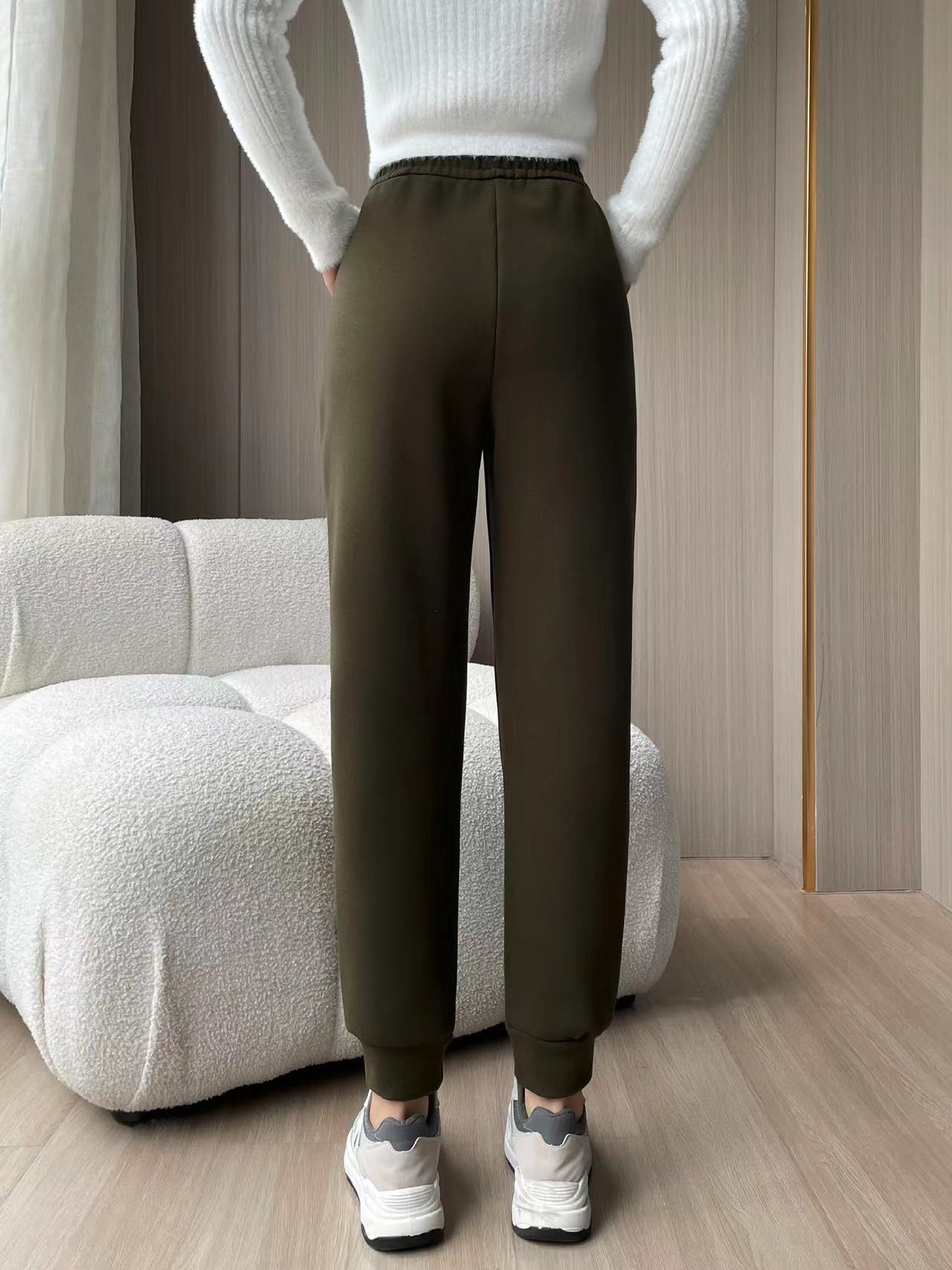 Осенние и зимние женские брюки утолщены с высокой талией, повседневные брюки новые нано-бархатные ветровые штаны