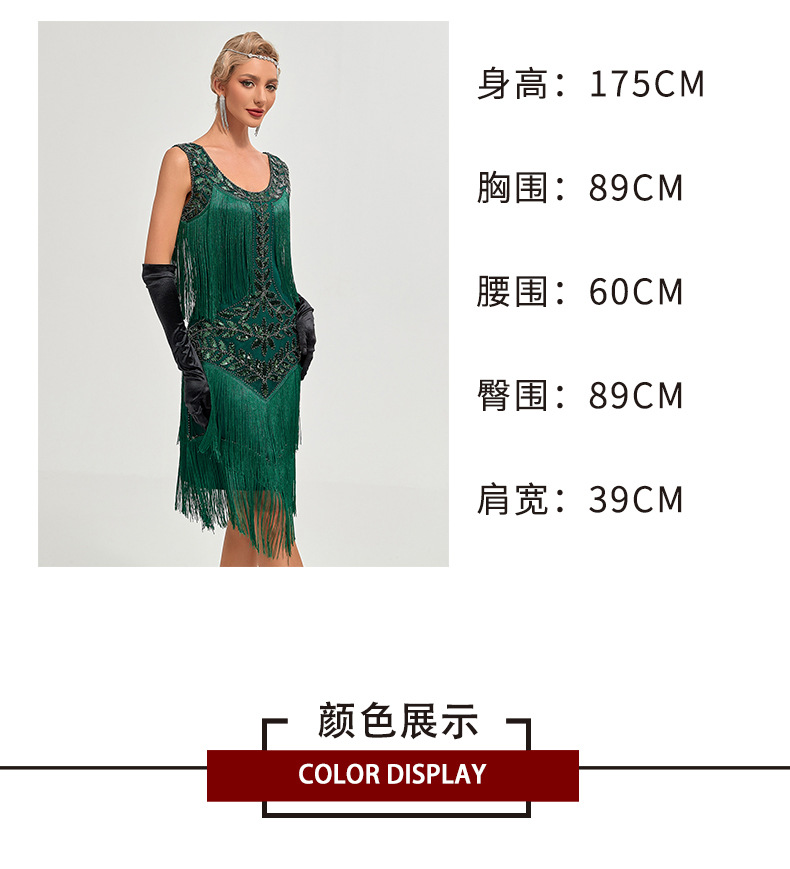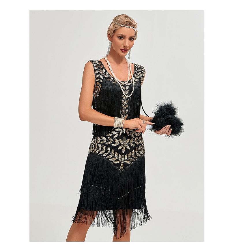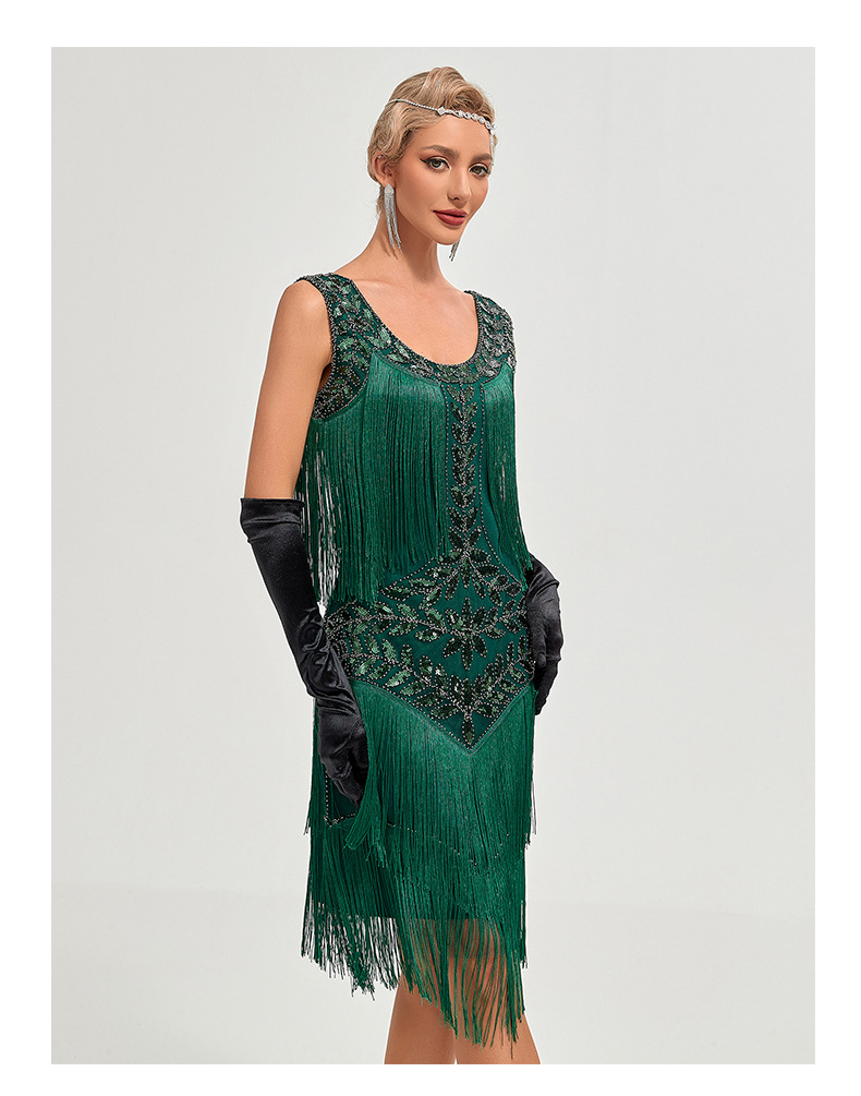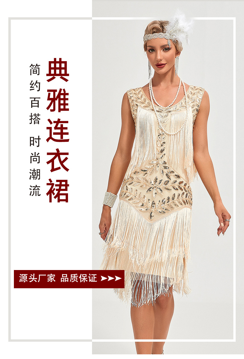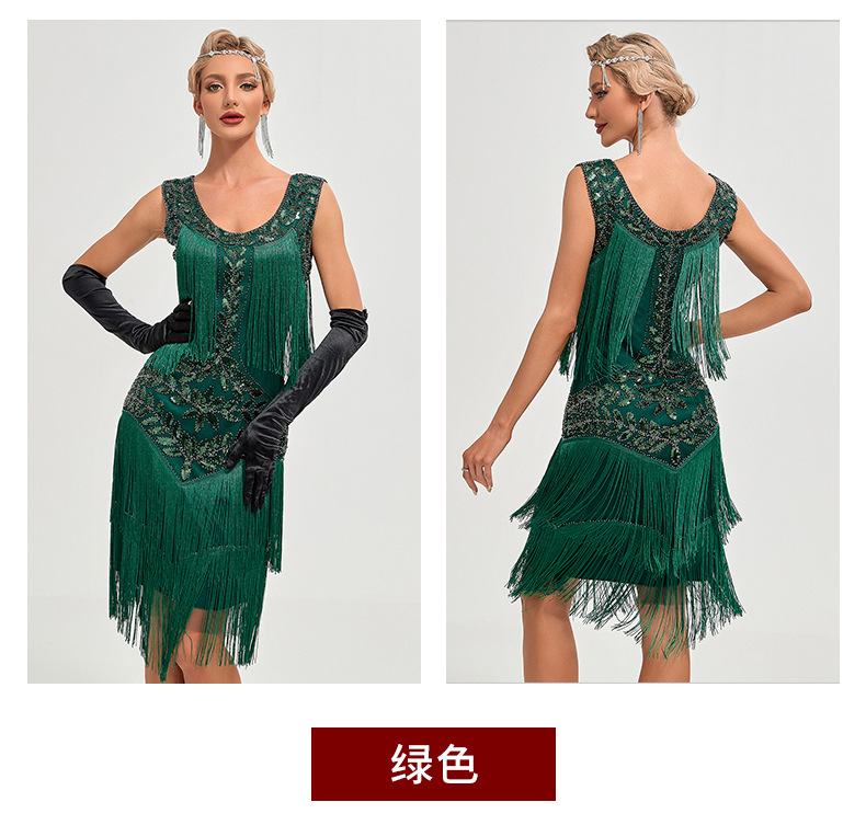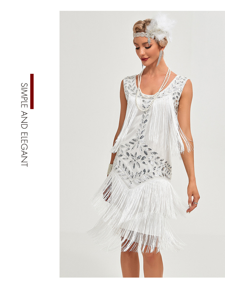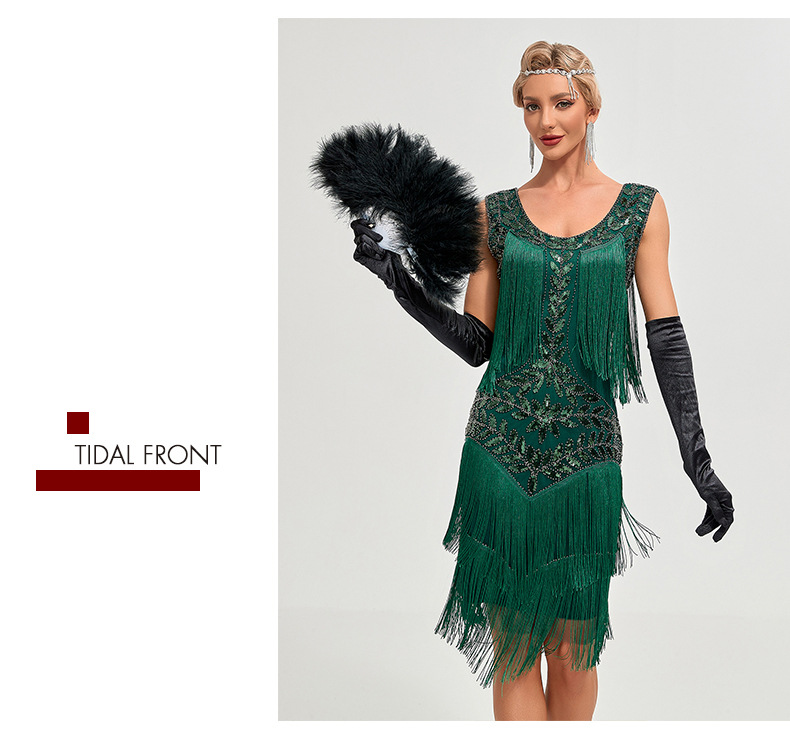Европейское и американское винтажное бальное платье Гэтсби 1920 года, танцевальное платье, круглый вырез, жилет с кисточками и блестками из бисера, платье больших размеров
