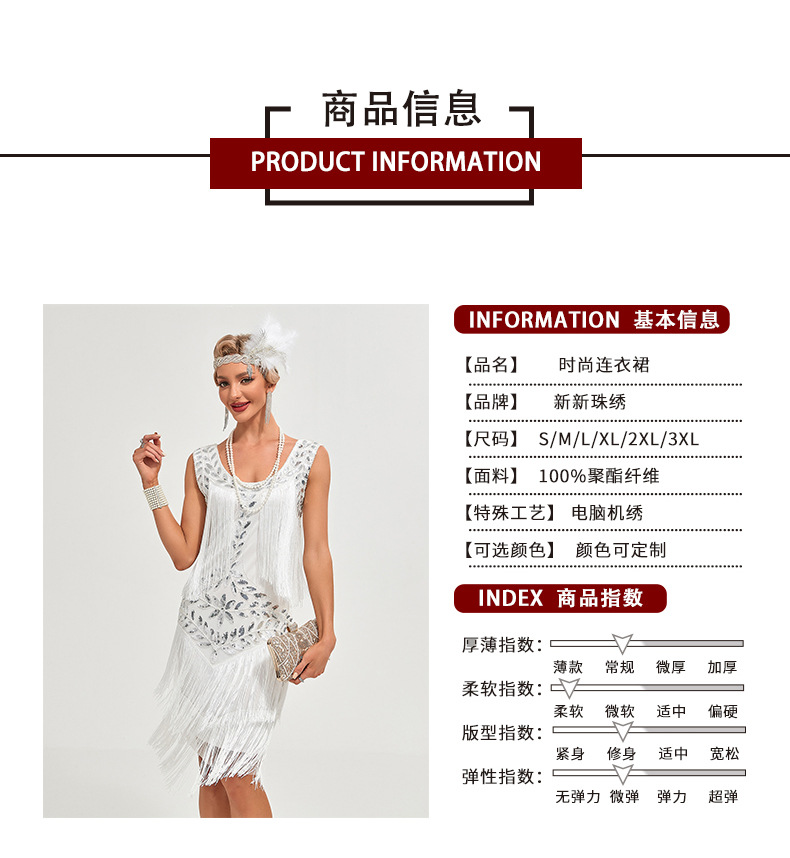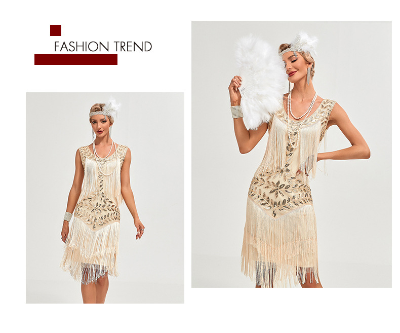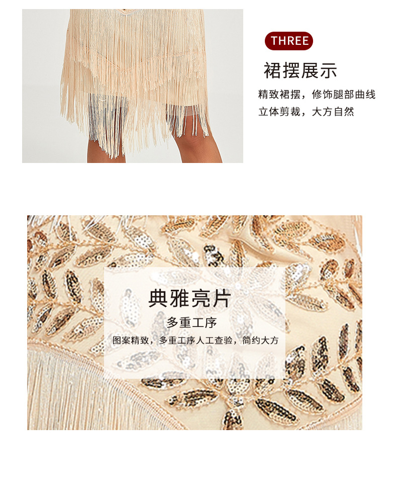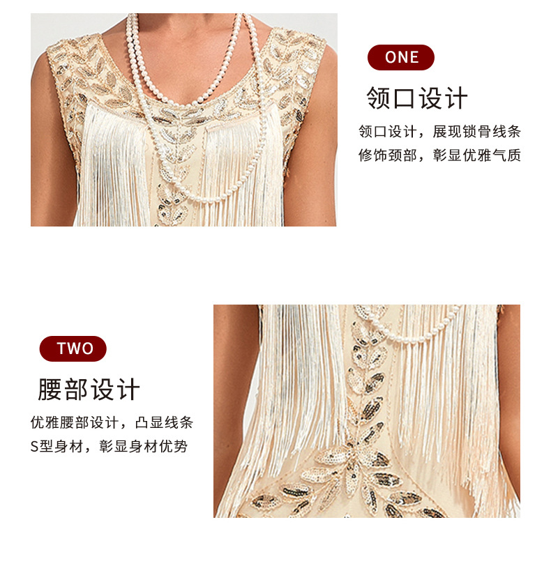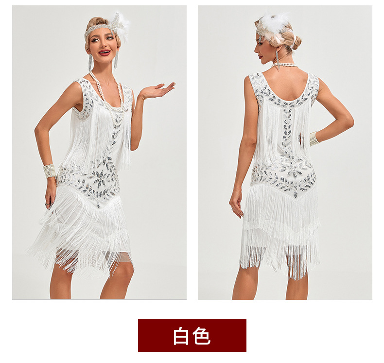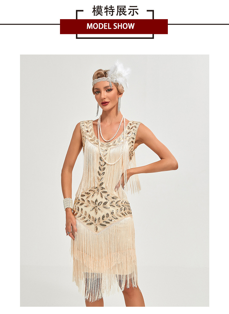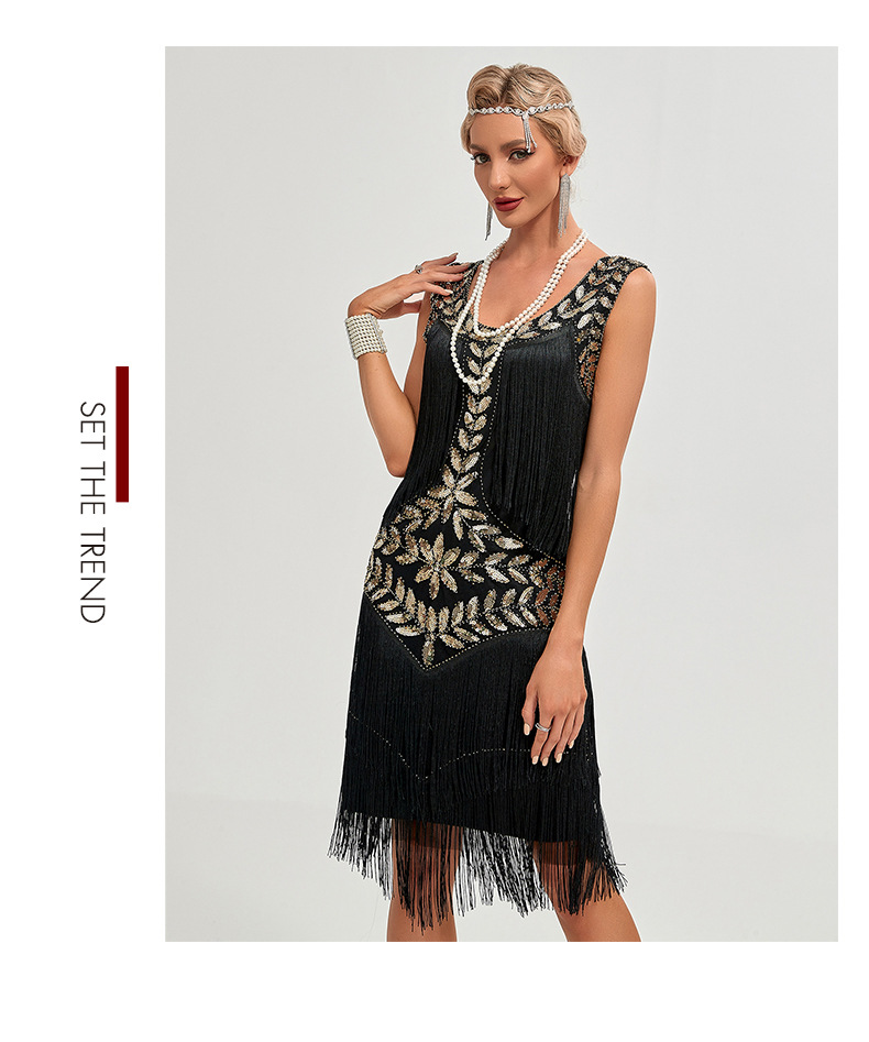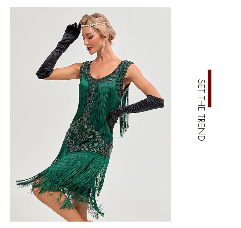 Европейское и американское винтажное бальное платье Гэтсби 1920 года, танцевальное платье, круглый вырез, жилет с кисточками и блестками из бисера, платье больших размеров