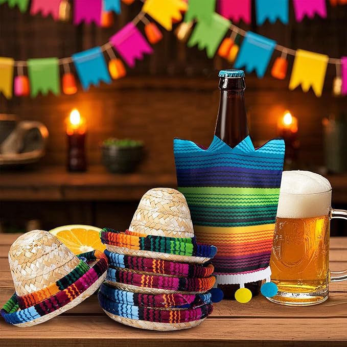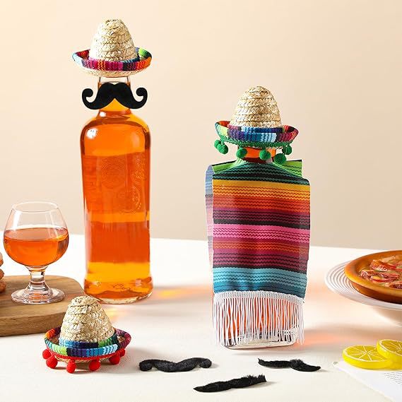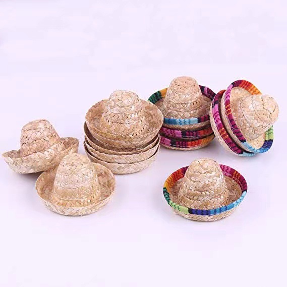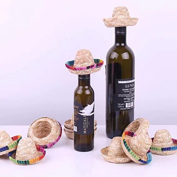 Бутылка вина маленькая Мексиканская соломенная шляпа Мини шляпа для домашних животных украшение для вечеринки маленькая соломенная шляпа винная бутылка шляпа шарф костюм